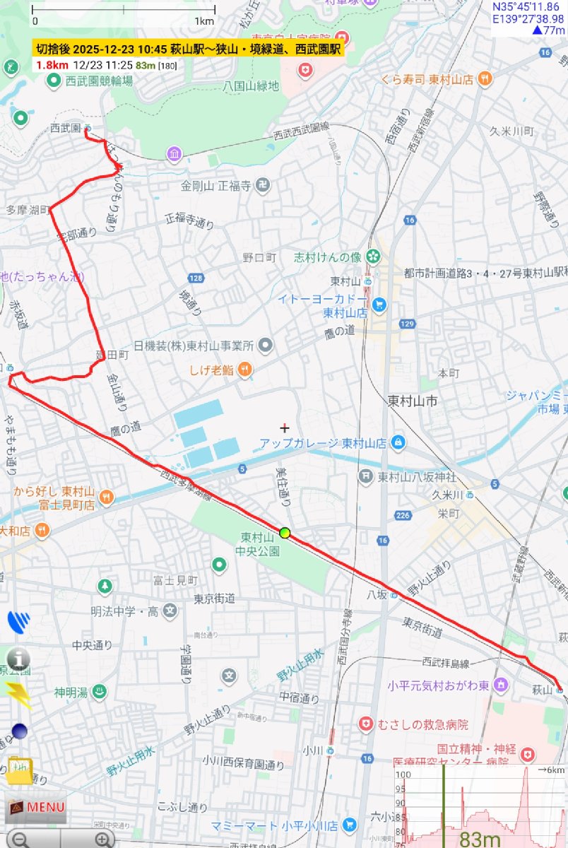 ★2025年12月23日(火) 晴れ、気温(青梅)8.9/-2.1℃、西武鉄道、多摩湖畔「廻田緑道」を歩く!