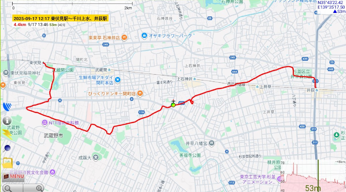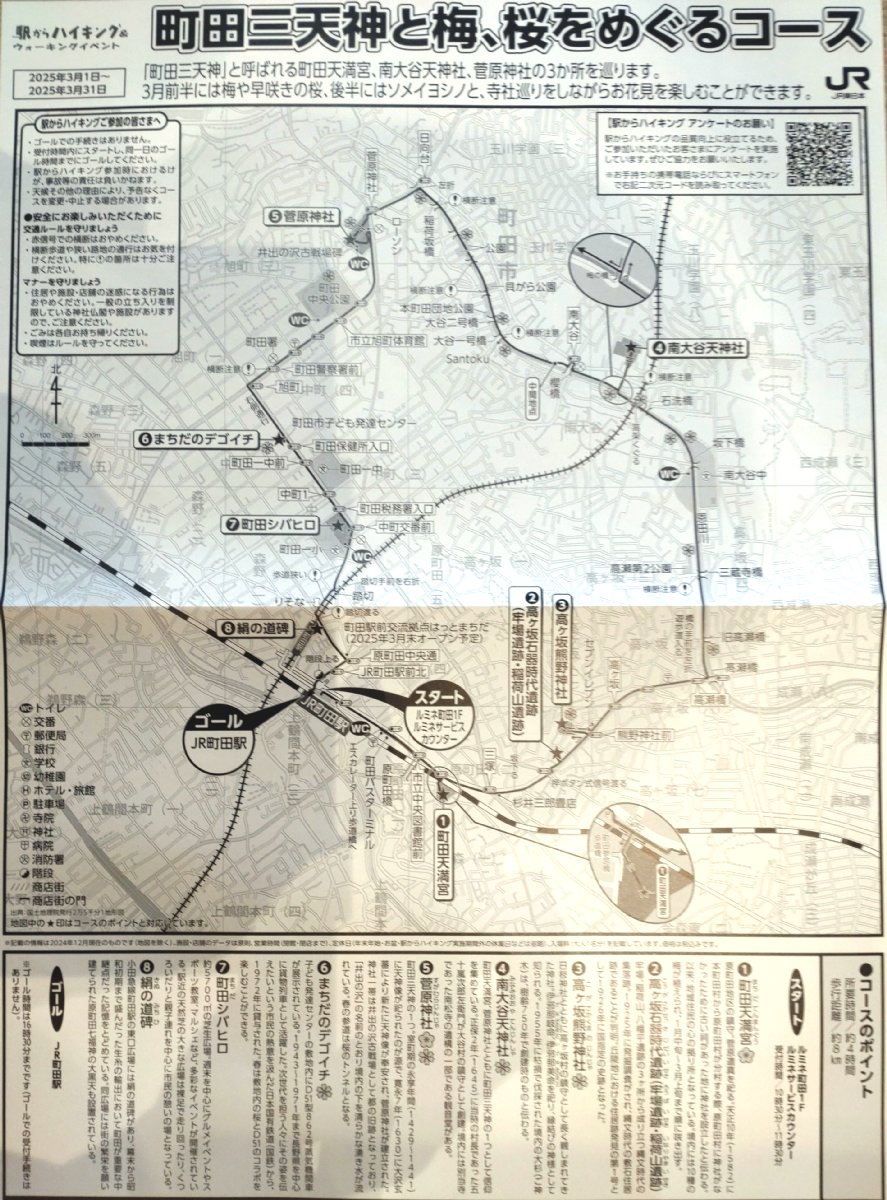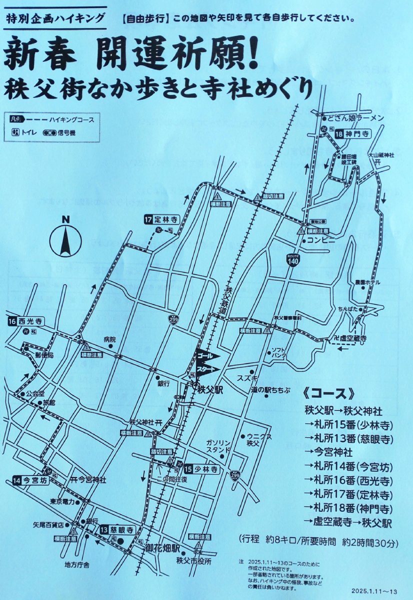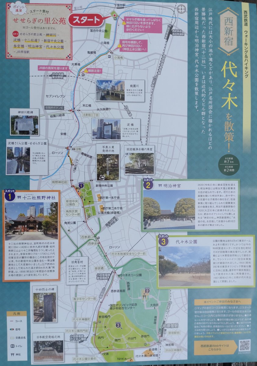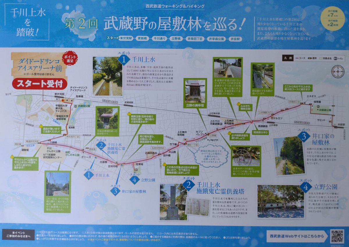 ★2025年09月17日(水) 晴れ、気温(青梅)35.2/23.0℃、西武鉄道、「千川上水を踏破!」武蔵野の屋敷林をめぐる! 猛暑日となった、とてもつらいウォーキングであった。 蒸し暑く汗だくで途中道を間違えるなどして、集中力が散漫ながら歩き切った。 ★2025年09月10日(水) 晴れ/曇り、気温(青梅)32.9/24.2℃、西武鉄道、八国山緑道から荒幡富士へ 佐山丘陵を歩く! 午後から曇りで時々雨、蒸し暑い中でのウォーキング。 ●八国山緑道:狭山丘陵の東端にある八国山のコナラやクヌギの雑木林。 ●荒幡富士:明治32年完成した歴史ある富士塚で、関東では最も大きな富士塚と言われている ★2025年09月03日(水) 晴れ、気温(青梅)36.2/23.9℃、西武鉄道、多摩川沿いの福生南公園、水鳥公園から五鉄通りを歩く! 9月になっても猛暑日が続いている、久しぶり(2ヶ月ぶり)のウォーキング参加。 一番暑い時間帯に歩いたので汗びっしょり、日傘をさしてではあったがこの暑さ(青梅36℃越え)には参った。 ★2025年07月02日(水) 晴れ、気温(青梅)33.2/22.3℃、西武鉄道、「千川上水を踏破!」取水口をめぐる! 今日も夏日2Wほど続いている。6月の平均気温が過去最高を記録、今月も夏日が続いて梅雨明け間近か? 新小金井駅から玉川上水緑道を歩き境水衛所跡(千川上水の取水口)から千川上水(緑道)を歩き東伏見駅がゴール。 ●千川上水:元々は5代将軍綱吉の立ち寄り先である小石川御殿、湯島聖堂、寛永寺、」浅草寺等への給水を目的として作られた ★2025年06月25日(水) 雨/曇り、気温(青梅)29.1/23.1℃、西武鉄道・JR東日本、夏の訪れを感じながら御岳溪谷遊歩道を歩く! 歩き始める直前まで強い雨であったが、御嶽駅を雨上がりで蒸し暑い中スタート。 雨でぬれた遊歩道は歩きにくかったが御岳溪谷を楽しめた。 ★2025年06月18日(水) 晴れ、気温(青梅)34.7/24.4℃、西武鉄道、玉川上水緑道を歩く! 昨日は猛暑日、今日は猛暑日一歩手前の炎天下でのウォーキング、 しかし玉川上水緑道では木陰が多く涼しい風が吹く中でのウォーキングだった。 ★2025年06月11日(水) 雨、気温(青梅)21.5/19.2℃、西武鉄道、智光山公園の花菖蒲鑑賞ピクニックへ! 昨日梅雨入りした、昨年より11日早く平年より3日遅い。 今日は雨の中を智光山公園の花菖蒲鑑賞のウォーキング、智光山公園に着くころから本格的な雨となり 足元がずぶ濡れにながらの花菖蒲鑑賞であった。花菖蒲園には約2,600株もの花が咲きここっていた。 ★2025年05月21日(水)小満 晴れ、気温(青梅)30.5/18.0℃、西武鉄道、玉川上水緑道を歩く! 昨日は真夏日、今日も真夏日で蒸し暑い。 玉川上水緑道は木陰で涼しい風があり比較的歩きやすいウォーキングであった。 ★2025年04月05日(土) 晴れ、気温(青梅)16.2/1.1℃、西武鉄道、西新宿 代々木を散策! 神田川のサクラの花見ウォーキング、北風があり肌寒かったが絶好の花見日和である。 神田川沿いのサクラは満開でおお花見の人出で川沿いの遊歩道は混雑が激しかった。 が、約3?程の満開の神田川沿いのサクラを楽しむことができた。 ★2025年03月18日(火) 晴れ|曇り、気温(青梅)11.7/2.7℃、JR東日本、町田三天神と梅、桜をめぐるコース 町田三天神(町田天満宮、南大谷天神、菅原神社)と梅・桜をめぐるコースであったが、 梅はすでに終わり桜は早咲きがチラホラで時期が悪かった。(コース期間は3/1〜3/31) 恩田川沿いに早咲きのサクラとカワセミ、まちだのデコイチ(D51862)は楽しめた。 ★2025年03月07日(金) 晴れ、気温(青梅)10.6/0.6℃、JR東日本、目黒川がつなぐ歴史・ぶんかの街を歩く 北風が強く吹く中のウォーキングであった。 目黒川沿いのサクラはまだ咲く気配がない、 寒かったので足早に回ったが、旧朝倉家住宅とめぐろ歴史資料館を見学した。 ★2025年01月11日(土) 晴れ、気温(青梅)10.6/-4.2℃、秩父鉄道、新春開運祈願!秩父街なか歩きと自社巡り 今年初めてのウォーキングイベントに参加、秩父鉄道主催の秩父街なか歩きと自社巡りである。 最低気温青梅ー4.2、秩父-6.6℃と1月に入ってからの最低気温の中ではあったが日中は日差しがあり暖かく感じた。 秩父神社の初参拝をスタートに8か所をめぐり、ゴールでは秩父市のマスコットキャラクタの「ポテくまくん」に遭遇。