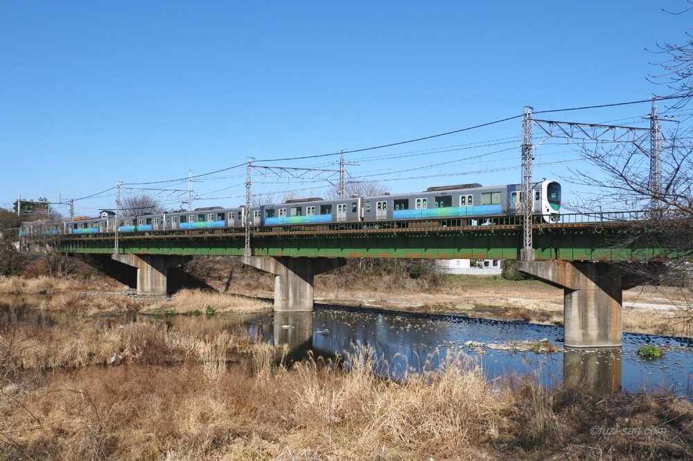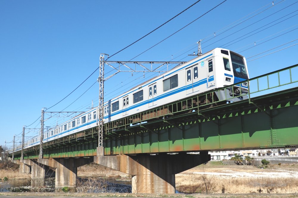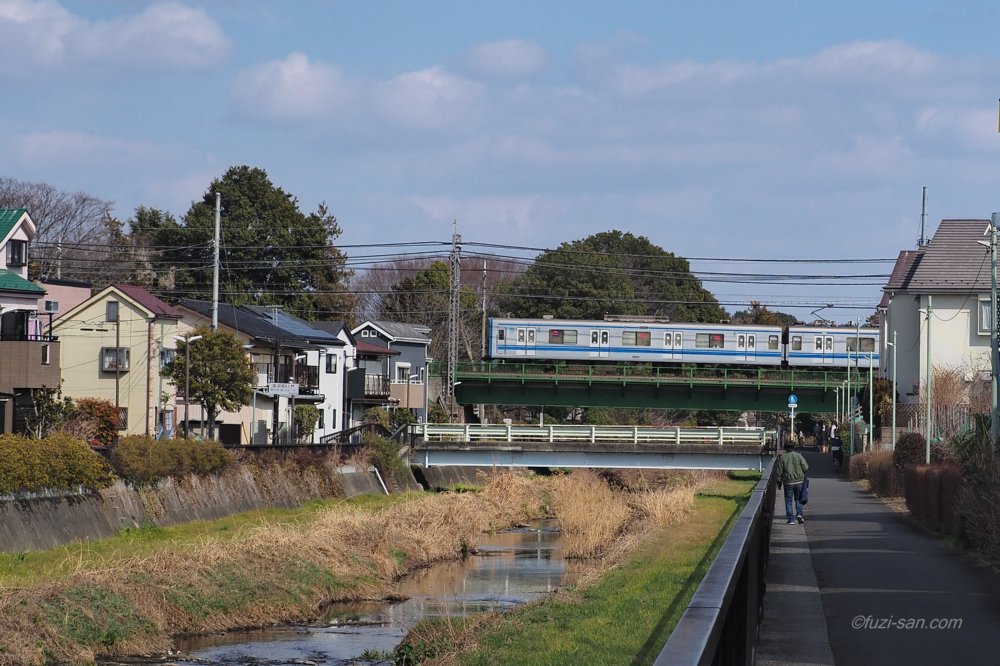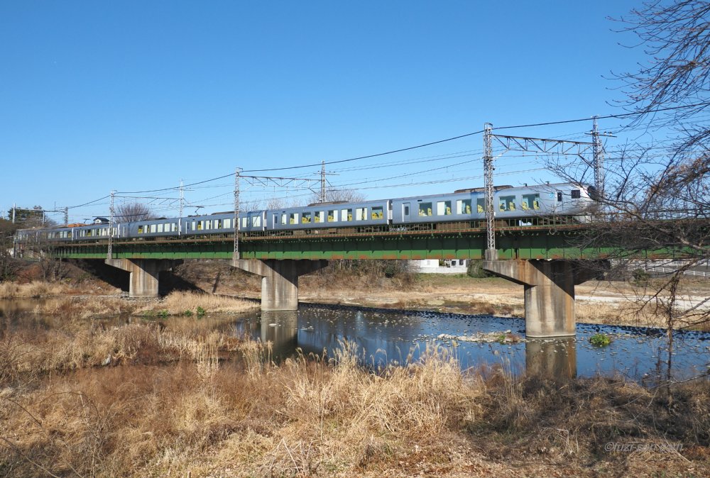 ★2026年2月18日(水)、晴れ、黒目川橋梁を通過する西武池袋線電車