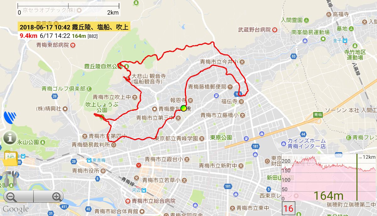 梅雨の一休みで雨が止んでいるので、久しぶりに霞丘陵ハイキングコースをウォーキング、 自宅→笹仁田峠→霞丘陵→塩船観音寺→吹上しょうぶ園→霞川遊歩道→自宅。歩行距離11.7kmL、4時間18分 塩船観音ではアジサイ、吹上しょうぶ園では花菖蒲の鑑賞、帰路は霞川沿いの遊歩道。