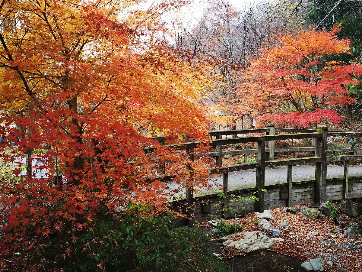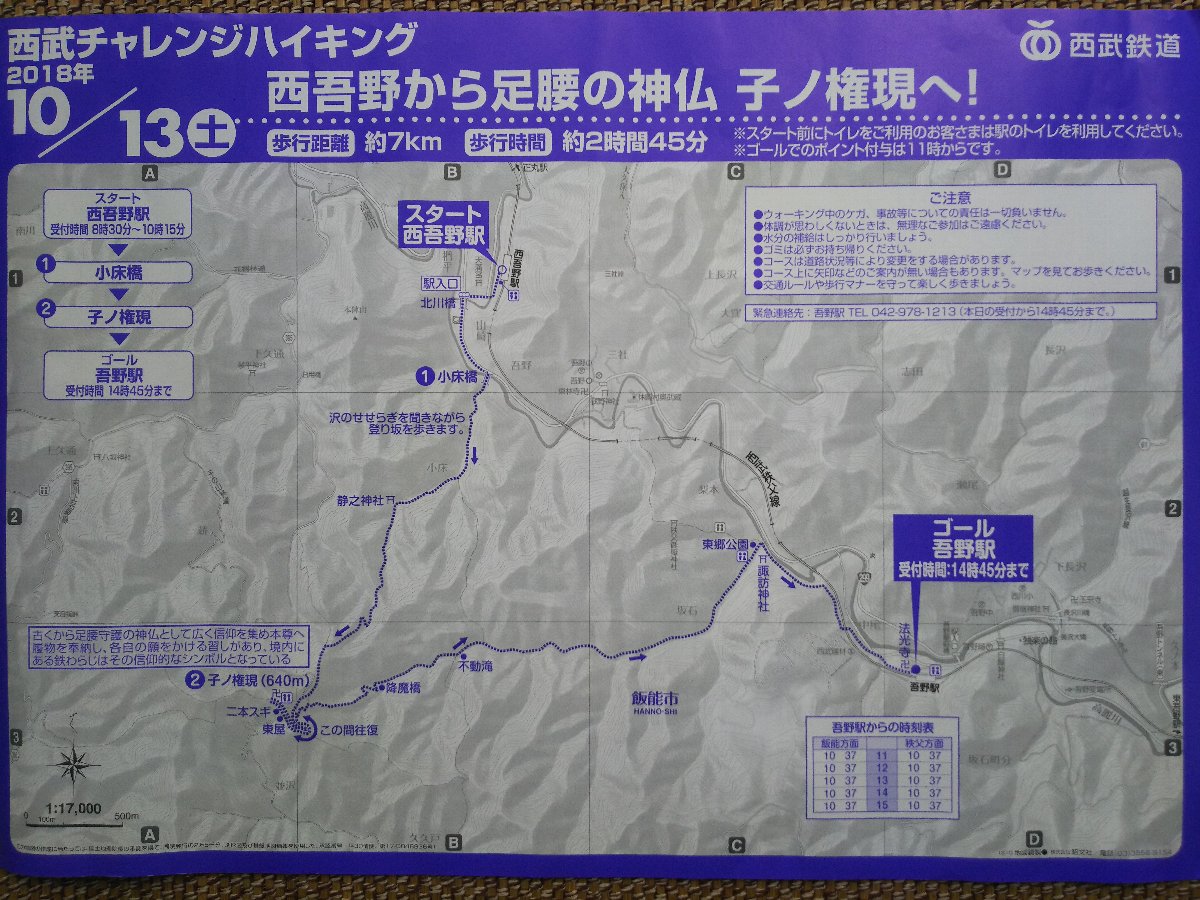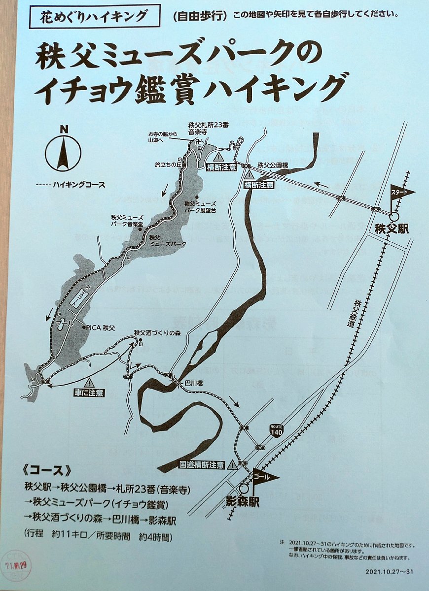 秩父アミューズメントパークのイチョウの黄葉が見頃とのことなので、父鉄・JR共催のハイキングに参加。 葉は落葉が始まっていたが綺麗な黄葉である。まだ木が若くイチョウ並木としてはこれから良くなるだろう。 パーク内には、10月桜が美しいピンク色で咲いており春?と一瞬感じてしまった。 ★2018年10月26日(金)、JR東日本、富士急行、マイナスイオンたっぷり平成の名水百選に選ばれた湧水群と芭蕉のまち都留句碑めぐり 富士山の伏流水が湧き出し、また芭蕉が滞在し句碑が多くある都留市のウォーキングである。 途中、太郎・次郎滝、田原の滝を観瀑、長慶寺ではバイカモ(梅花藻)がまだ咲いているのが見られた。 大月駅前の駐車場に車を置き、久しぶりの富士急行線に乗ってスタートの東桂駅へ、帰路は都留市駅から大月駅。 ★2018年10月23日(火)、JR東日本、都心の自然・文化とアンテナショップめぐり 小雨が降り肌寒い中でのアンテナショップめぐりのウォーキング。 日本橋ふくしま館、いわて銀河プラザ、おいしい山形プラザ、北海道どさんこプラザ有楽町店、秋田ふるさと館、銀座熊本館の6ヶ所でお酒・肴・食材などゲット。 ★2018年10月13日(土)、西武鉄道、西吾野から足腰の神仏 子の権現へ! 足腰守護の神仏として知られる子の権現へのハイキング(西吾野駅→子の権現→吾野駅)、紅葉には1か月早い。 子の権現は絶景スポットとしても有名で、晴れていれば奥多摩の山々や都内(新宿高層ビル群、スカイツリー、池袋サンシャインなど)が一望できる。 ★子の権現:天台宗の古刹。紀州で子の年、子の月、子の日、子の刻に生まれたので子の聖と呼ばれた上人が開創した寺。 ★2018年09月20日(木)、西武鉄道、高麗 巾着田曼殊沙華鑑賞フリー散策 昨日(9/19)から10/4まで行らている日高市巾着田の曼殊沙華まつりである。 巾着田には五百万本の曼殊沙華が群生しており秋の彼岸ごろに見頃を迎え、 赤いじゅうたんを敷き詰めたように咲き渡り、中には白色の曼殊沙華も咲いていた。 ★2018年09月14日(金)、JR東日本、親水と文化の御岳渓谷散策 雨上がりの御岳渓谷の散策ハイキング。 雨上がりで一部足元が悪いところがあったのでショートカットしたが、雨で増水した渓谷と渓谷にかかっている橋を眺め・渡りながらの短時間ハイク。 写真は渓谷にかかっている橋である。 ★2018年08月31日(金)、秩父鉄道、JR東日本、長瀞七蔵寺めぐりハイキング 今回は長瀞七草寺の真性寺(女郎花)、多宝寺(桔梗)、法善寺(藤袴)、道光寺(尾花)の4寺を巡るハイキング。 とても蒸し暑く気温32℃と厳しい行程であった。それぞれ寺の花は見頃で訪れる人も多かった。 ★2018年04月27日(金)、秩父鉄道、JR東日本、よりい寺社巡りと緋色の金尾山ハイキング 金尾山は昔からツツジの自生地で有名、GWがいつも見頃であるが今年はすでに終わりに近かった。 コース途中の善導寺本堂の天井には百人一首かるた絵が描かれており見事であった。 帰りに西武秩父駅にある「祭りの湯」で汗を流す。 ★2018年03月27日(火)、西武鉄道、春野陽ざしを浴びて歩こう「けやきとさくら並木」 5月の陽気でとても暑いウォーキングであった。 清瀬市柳瀬川沿いの桜は満開で昼食とともにお花見を楽しめた。 ★2018年03月18日(日)、JR東日本、早春の吉野梅郷〜再生中の「青梅・梅の里」とオープンガーデン巡り〜 2014年にウメ輪紋ウイルスというウメの病気のため「梅の里」の梅全部を伐採、2016年度に再植樹許可が出て昨年2017年から再植樹が進められている再生中の「梅の里」を訪れた。元の姿 に戻るには10年以上が必要ではないか。 関連記事 : 伐採前(2014年3月19日) 伐採後(2015年3月7日) コース途中の即清寺のオープンガーデンでは早くもカタクリが満開であった。 ★2018年03月16日(金)、越生町、越生梅林コース 昨年の4月から越生の月例ハイキングに今日で皆勤した。 越生梅林では梅まつり中であったが最近の陽気が4,5月並みが続いたので、やや見頃のピークを過ぎているみたいであった。 ★2018年03月06日(火)、西武鉄道、春の公園散歩!!(都立城北中央公園コース) 日差しは強いが北東の風が強く肌寒い朝であったがウォーキングにはよい気候であった。 ★2018年03月03日(土)、秩父鉄道、JR東日本、宝登山百花園と長瀞火祭りを訪ねる 長瀞宝登山の梅まつり(2/24〜3/11)ハイキングであったが、今年は例年より遅れており紅梅が一部見頃以外はこれからであった。しかし、例年ならばロウバイが終わっているはずなのにちょうど見頃であった。 ★2018年02月27日(火)、西武鉄道、初春の天覧山から多峯主山を歩く! 飯能駅→天覧山→多峯主山→飯能河原→飯能駅のコース、超低山ハイクである。 天覧山:195m、多峯主山:271m ★2018年02月18日(日)、越生町、文学散歩コース 日差しは暖かったが風が強く少々疲れた一日だった。 越生梅林では前日の17日から「越生梅林梅まつり」が開催されていたが、梅の開花は進んでおらず紅梅の早咲きが開花が少し見られた程度で梅林の見ごろは3月初めころ