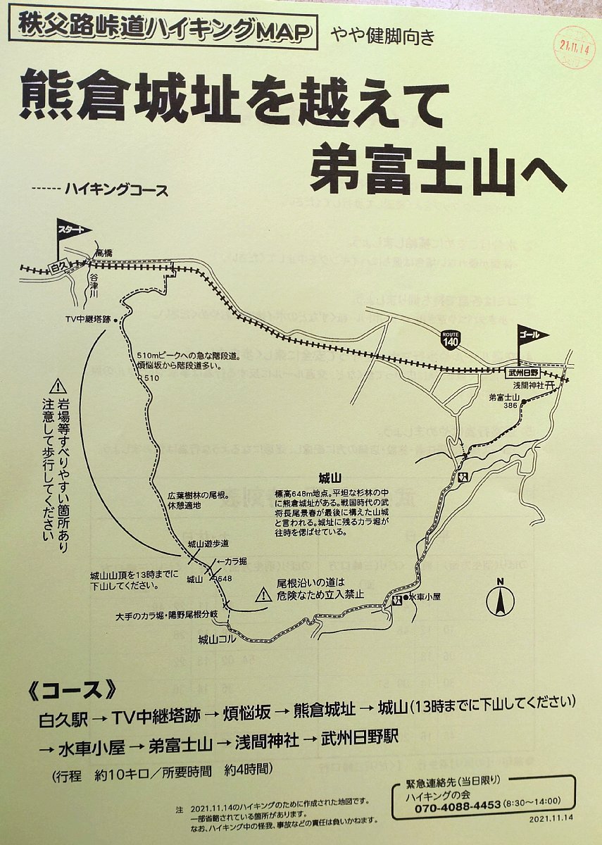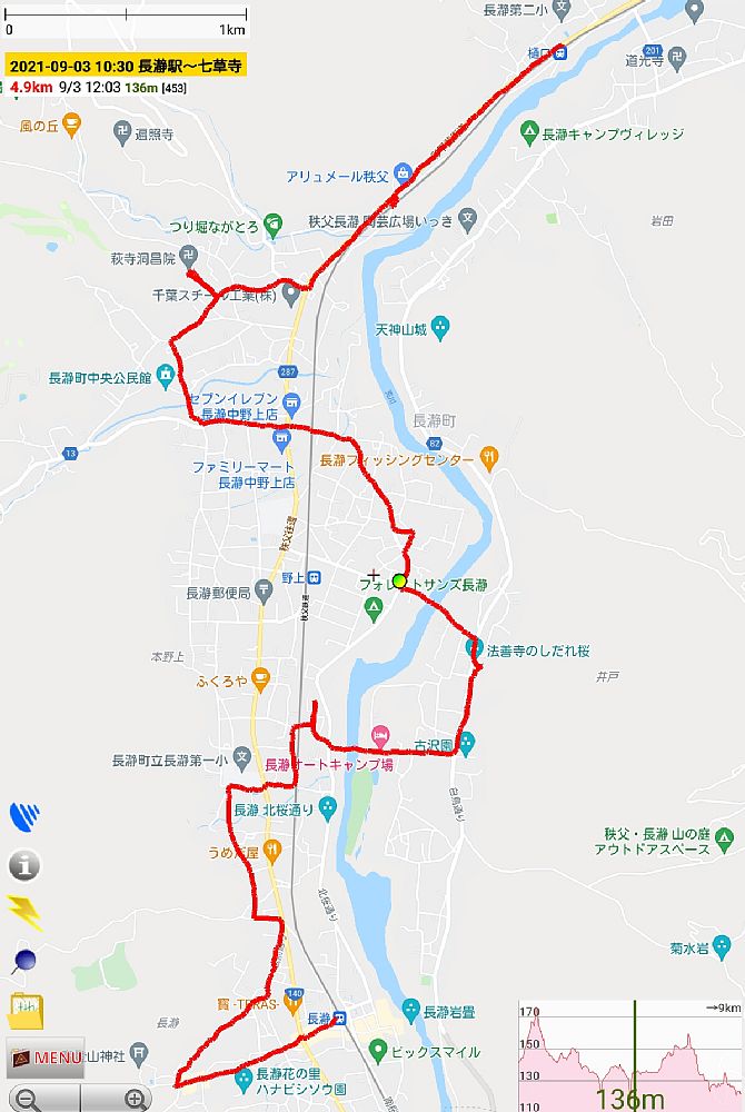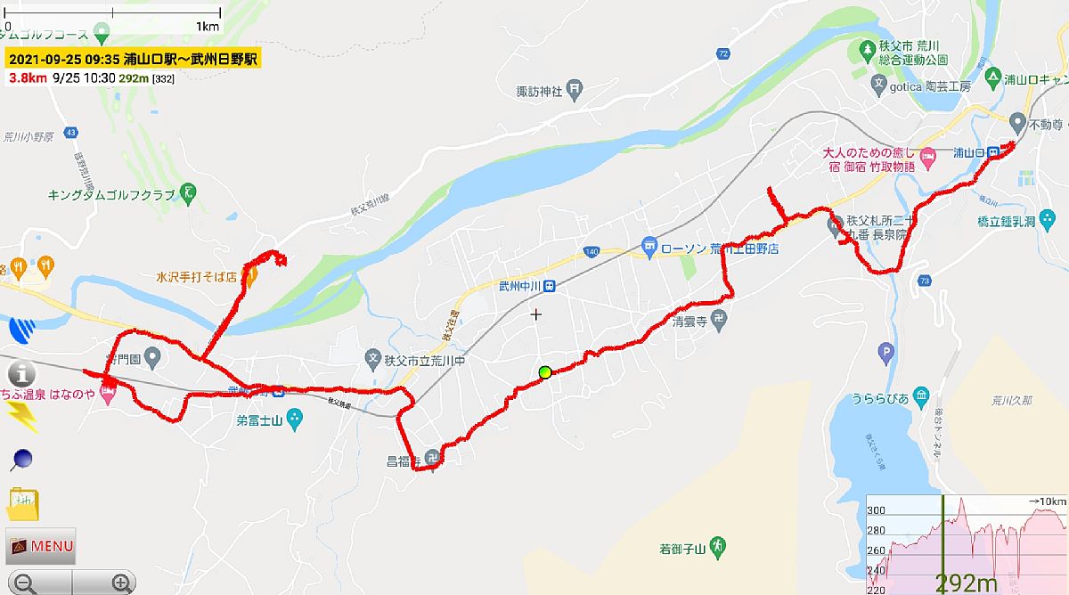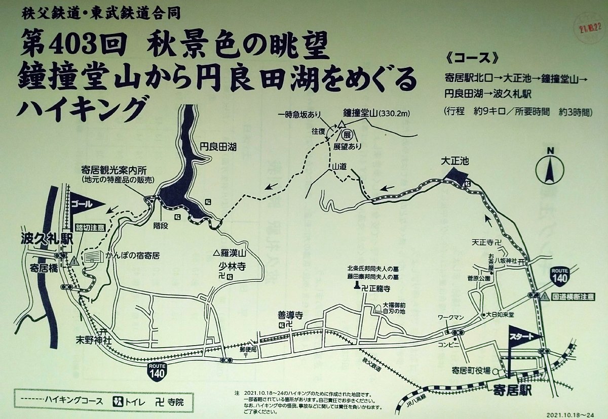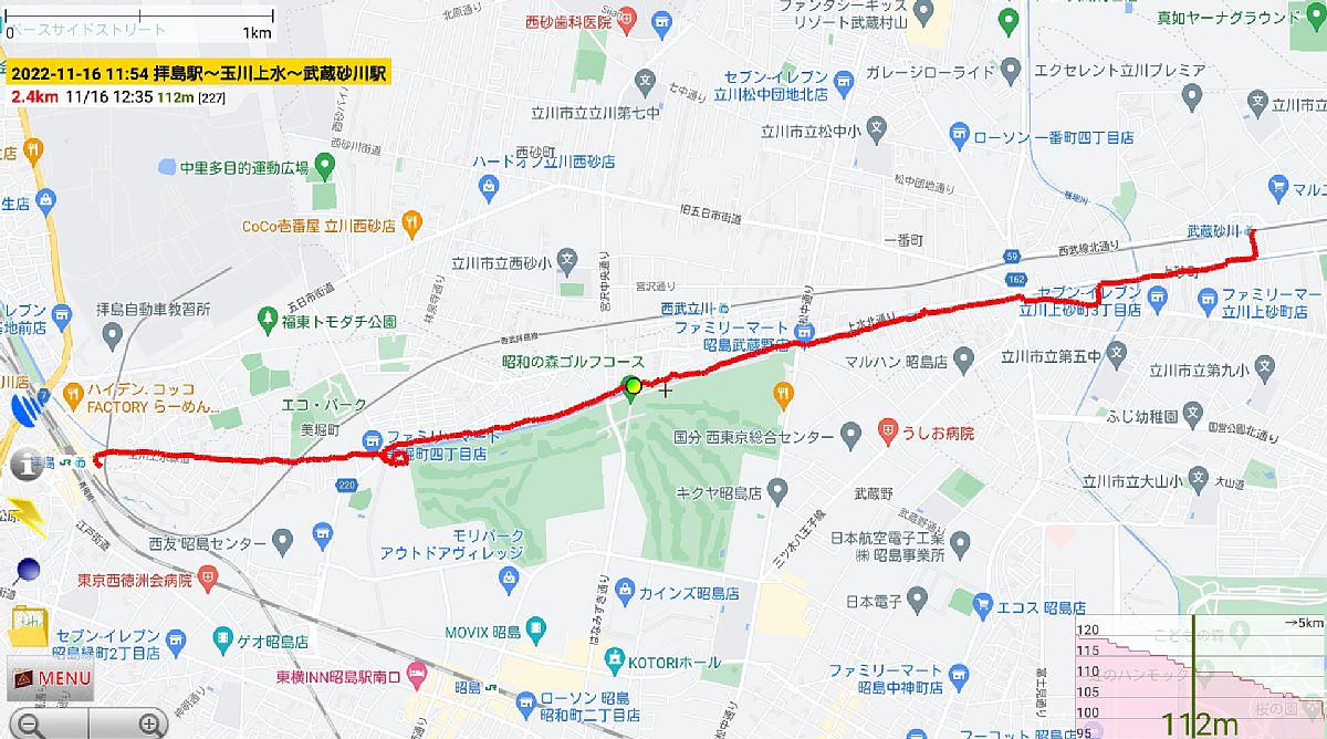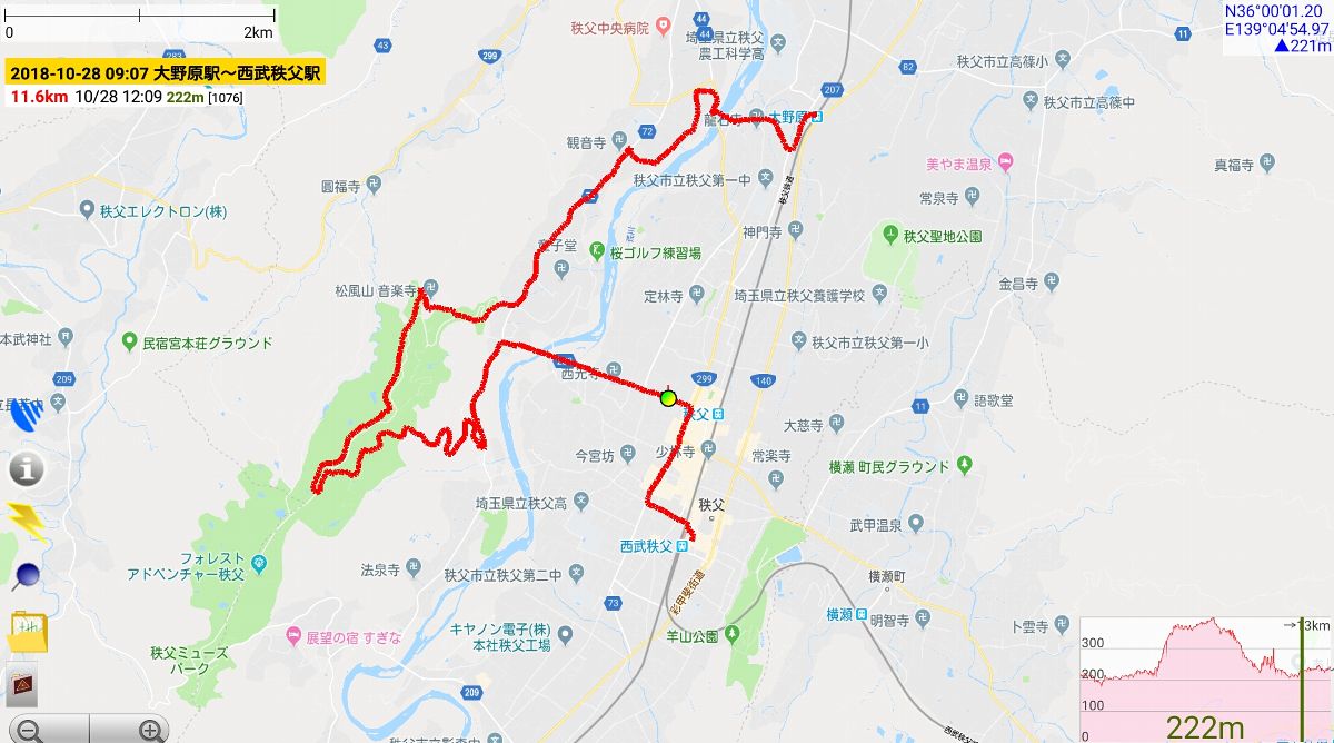 ★2021年12月04日(土) 晴れ、気温(青梅)14.6/1.6℃、秩父鉄道、師走の琴平丘陵を越えて秩父神社へ 秩父市の最低気温が氷点下であったが快晴でスタート時点では絶好のコンディションとなり、琴平丘陵の尾根を縦走。 羊山公園で昼食、ゴールは秩父神社でこの一年間の秩父地域のハイキング&ウォーキングの無事感謝のお礼参拝。 帰路はご褒美に西武秩父線の特急ラビューでゆったりと家路に就く。 ★2021年12月02日(木) 晴れ、気温(青梅)12.9/0.5℃、西武鉄道、狭山公園内の紅葉散策! 西武園駅から多摩湖、狭山公園へ、ゴールは武蔵大和駅。 狭山公園の紅葉はピークを過ぎたところだが充分観賞・堪能でき、多摩湖からは富士山が綺麗に眺望することができた。 ★2021年11月26日(金) 晴れ、気温(青梅)15.8/3.1℃、西武鉄道、紅葉の吾野・東郷公園を訪ねる! 吾野駅と東郷公園の往復のコース。東郷公園は紅葉の名所で秩父御嶽神社の神苑。 東郷公園には東郷元帥の銅像があり公園内に日露戦争の遺物や記念品が点在している。 秩父御嶽神社の参道石段は数百段の急階段で途中休み休みであった。 ★2021年11月17日(水) 晴れ、気温(青梅)16.3/7.0℃、西武鉄道、玉川上水緑道を歩く! 拝島駅から武蔵砂川駅の玉川上水緑道約5?のウォーキング、緑道の紅葉はこれからである。 歩行距離が短いのでハイペースの5km/H強で歩いた。 ★2021年11月14日(日) 晴れ、気温(青梅)17.3/5.9℃、秩父鉄道、熊倉城址を越えて弟富士山へ 白久駅から熊倉城址(城山)を経て武州日野駅にゴールするコース。熊倉城址(城山648m)までは急峻な階段道(煩悩坂)、尾根縦走で小ピークを幾つも階段道のアップダウンを繰り返しとてもハードなコースであった。下山はほとんどが林道で快適な後半だった。 ゴール手前の弟富士山には行かず、道の駅「あらかわ」で昼食、蒸気機関車SLパレオエクスプレスの動画撮影後に武州日野駅。 武州日野駅では今年9月に導入した保線専用車両(08-1X)の撮影に成功。 ★2021年11月07日(日)立冬 晴れ、気温(青梅)18.1/9.8℃、秩父鉄道、フリーハイキング 金ヶ嶽 歩くには好コンディションの低山登山(ハイキング)であった。 野上駅をスタート、高砂橋、春日神社(金ヶ嶽370m)、植平峠、仙元峠、塞神峠、金石水管橋、 ゴールはスタート同じ野上駅であったが、昼食の場所として長瀞岩畳にするためゴールは長瀞岩畳に変更した。 ★2021年10月31日(日) 曇り|雨、気温(青梅)15.2/9.7℃、西武鉄道、小平グリーンロードから田無アスタ専門店内でショッピング 時々小雨がパラツク日であったが、歩くには問題なく快適であった。 田無神社で参拝し、田無駅にゴール&昼食。 ★2021年10月29日(金) 晴れ、気温(青梅)19.6/8.5℃、秩父鉄道、秩父ミューズパークのイチョウ鑑賞ハイキング 今日も快晴でウォーキングに最適であった。 秩父ミューズパーク内の長いイチョウ並木の黄葉は見頃で青空に黄色に黄葉したイチョウを堪能することができ、 また武甲山の雄大な姿もすばらしかった。 ★2021年10月28日(木) 晴れ、気温(青梅)22.5/10.1℃、西武鉄道、川越総合卸売市場から入間川沿いを歩く! 快晴でウォーキング日和、入間川沿いを気持ちよく歩くことができた。 ★2021年10月22日(金) 曇り|雨、気温(青梅)12.1/9.0℃、秩父鉄道・東武鉄道、鐘撞堂山から円良田湖をめぐるハイキング 寄居家期から大正池経由で鐘撞堂山へ、下山は円良田湖経由で波久礼駅のルート。 今回は、金子駅(JR)→寄居駅→ハイキング⇒波久礼駅(父鉄)→御花畑駅(父鉄)、西武秩父駅(西武)→東飯能駅→金子駅(JR)と 鉄道を多く利用しての参加。天候は曇り時々小雨とまずまずで歩くのには良いコンディションであった。 ◆秩父鉄道秩父駅に入線するSLパレオエクスプレス(PaleoExpress) ◆秩父鉄道波久礼駅に向かう影森行き電車 ★2021年10月14日(木) 晴れ、気温(青梅)23.3/14.6℃、西武鉄道、日高市山脈公園から横手渓谷を歩く! 紅葉にはまだ早い横手渓谷である。見頃は来月半ばである。 横手渓谷は西武鉄道秩父線の武蔵横手駅付近の高麗川で遊歩道があり散策できる。 ★2021年10月09日(土) 曇り、気温(青梅)26.1/17.5℃、西武鉄道、加治丘陵から桜山展望台を訪ねて! 晴れていれば桜山展望台から富士山を眺めることができるのだが、生憎の曇り空。 元加治駅から入間川河川敷にある阿須運動公園を経て桜山展望台、そして仏子駅に至るハイキングコース。 ★2021年09月30日(木) 曇り、気温(青梅)26.8/17.1℃、西武鉄道、曼殊沙華咲く 入間川沿いを歩く! 台風16号が明日にも関東地方に近づき風雨が心配されれ蒸し暑い中での入間川沿いウォーキング。 市民運動場脇のヒガンバナは既に終わっていたが、入間川遊歩道のヒガンバナは鑑賞できる状況であった。 ★2021年09月25日(土) 雨/曇り、気温(青梅)22.0/18.5℃、秩父鉄道、そばの花咲く秩父あらかわの里山歩きと彼岸花観賞 霧雨で気温も20℃位と、前日が真夏日と思えないほどの肌寒い中であったが、ちちぶ花見の里では満開のそばの花、深山の花園ではピークを過ぎていたがガンバナ観賞、ま