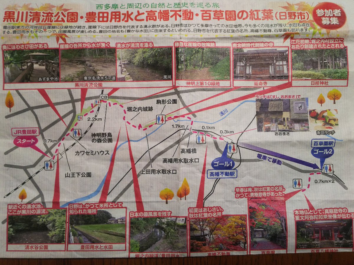 品川ベイエリアの橋や運河などを楽しめるコースで最後はレインボーブリッジを歩きお台場にゴール。 天候もよく気持ちの良いウォーキングで久しぶりにレインボーブリッジの上から都心の高層ビル・東京タワー・スカイツリーなどを見渡せた。 ★2018年11月23日(金)、プライベート、黒川清流公園・豊田用水と高幡不動・百草園の紅葉 街プレ倶楽部が企画したウォーキングのコースを歩いてみた。 小春日和で快適なコンディションの中、黒川清流公園・豊田用水の散策と高幡不動・百草園の紅葉を鑑賞した。 途中、駒形公園の浅川土手から富士山が。 ------------------------------------------------------------------------------------------------------------