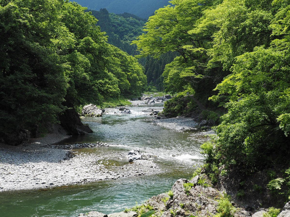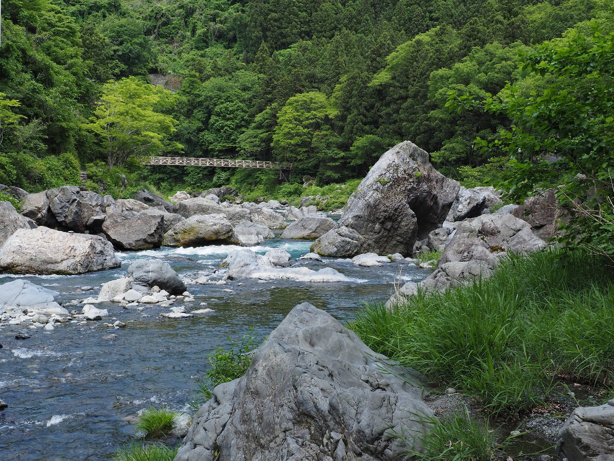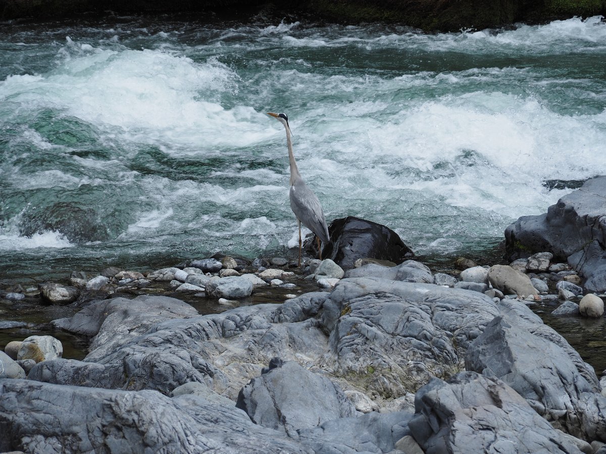 深緑、爽やかで気持ちいい初夏の御岳渓谷を散策。平日で散策する観光客が少なくのんびりと散策できた。 御岳渓谷で定番のカヌー、ラフティング、ボルダリングを楽しむ人たちもちらほら、色づき始めたアジサイ、綺麗な色のホタルブクロなど楽しめた。 アオサギの魚捕獲するところを撮影できた。