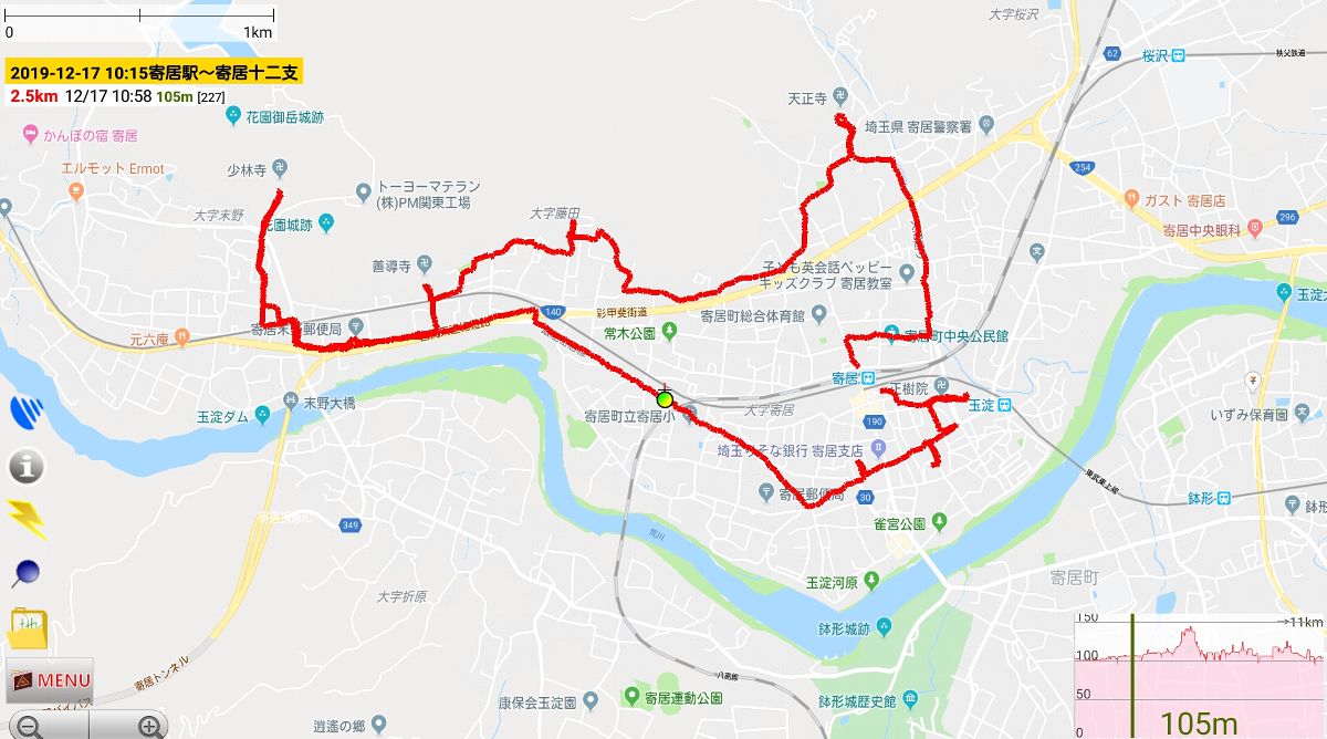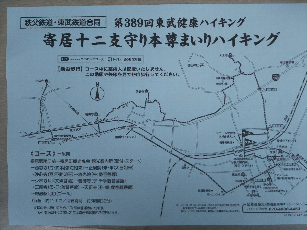 ★2019年12月17日(火)、気温(青梅)9.3/5.8℃、秩父鉄道、東武鉄道、寄居十二支守り本尊まいりハイキング