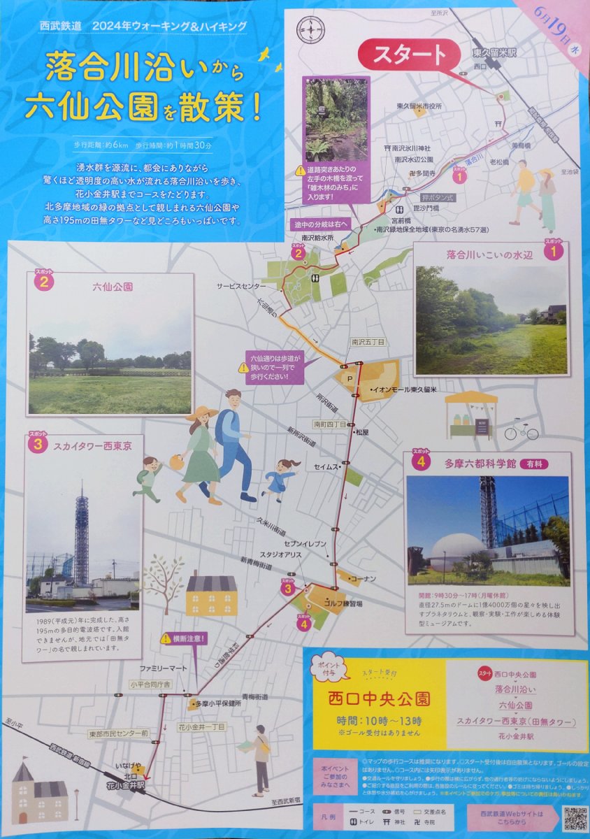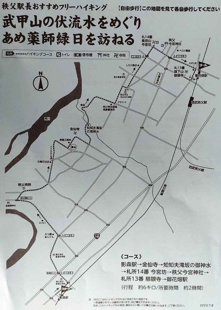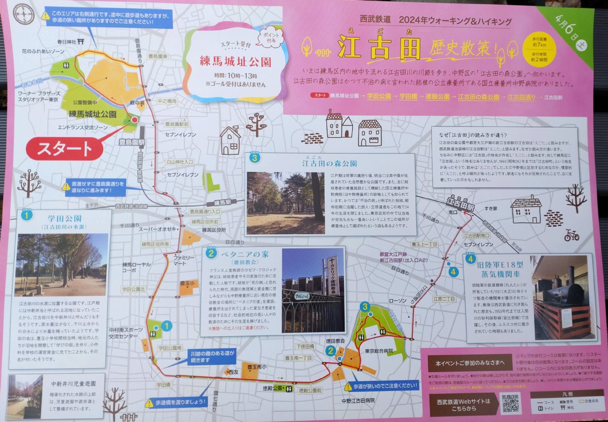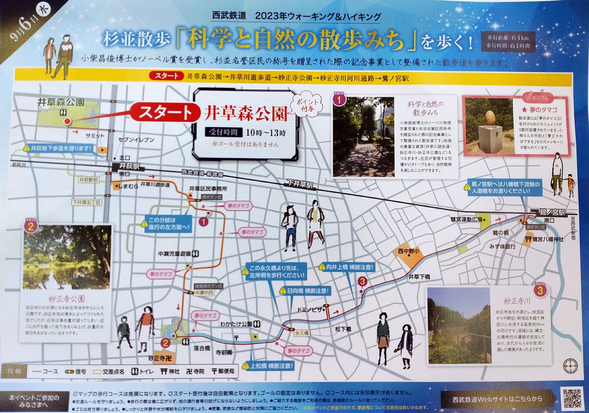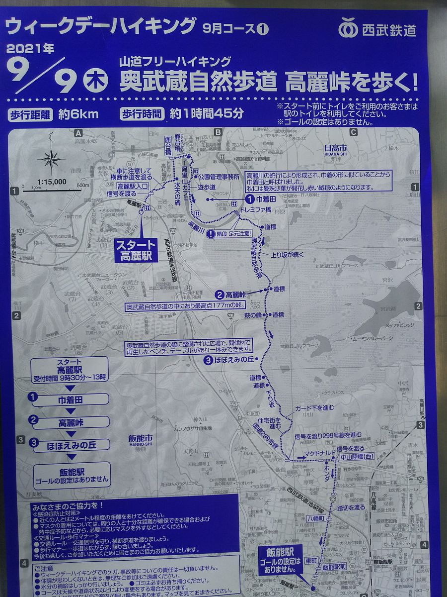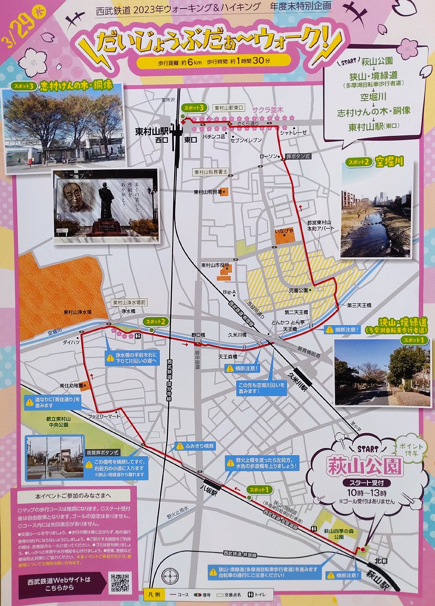 ★2025年09月17日(水) 晴れ、気温(青梅)35.2/23.0℃、西武鉄道、「千川上水を踏破!」武蔵野の屋敷林をめぐる! 猛暑日となった、とてもつらいウォーキングであった。 蒸し暑く汗だくで途中道を間違えるなどして、集中力が散漫ながら歩き切った。 ★2025年09月10日(水) 晴れ/曇り、気温(青梅)32.9/24.2℃、西武鉄道、八国山緑道から荒幡富士へ 佐山丘陵を歩く! 午後から曇りで時々雨、蒸し暑い中でのウォーキング。 ●八国山緑道:狭山丘陵の東端にある八国山のコナラやクヌギの雑木林。 ●荒幡富士:明治32年完成した歴史ある富士塚で、関東では最も大きな富士塚と言われている ★2025年09月03日(水) 晴れ、気温(青梅)36.2/23.9℃、西武鉄道、多摩川沿いの福生南公園、水鳥公園から五鉄通りを歩く! 9月になっても猛暑日が続いている、久しぶり(2ヶ月ぶり)のウォーキング参加。 一番暑い時間帯に歩いたので汗びっしょり、日傘をさしてではあったがこの暑さ(青梅36℃越え)には参った。 ★2025年07月02日(水) 晴れ、気温(青梅)33.2/22.3℃、西武鉄道、「千川上水を踏破!」取水口をめぐる! 今日も夏日2Wほど続いている。6月の平均気温が過去最高を記録、今月も夏日が続いて梅雨明け間近か? 新小金井駅から玉川上水緑道を歩き境水衛所跡(千川上水の取水口)から千川上水(緑道)を歩き東伏見駅がゴール。 ●千川上水:元々は5代将軍綱吉の立ち寄り先である小石川御殿、湯島聖堂、寛永寺、」浅草寺等への給水を目的として作られた ★2025年06月25日(水) 雨/曇り、気温(青梅)29.1/23.1℃、西武鉄道・JR東日本、夏の訪れを感じながら御岳溪谷遊歩道を歩く! 歩き始める直前まで強い雨であったが、御嶽駅を雨上がりで蒸し暑い中スタート。 雨でぬれた遊歩道は歩きにくかったが御岳溪谷を楽しめた。 ★2025年06月18日(水) 晴れ、気温(青梅)34.7/24.4℃、西武鉄道、玉川上水緑道を歩く! 昨日は猛暑日、今日は猛暑日一歩手前の炎天下でのウォーキング、 しかし玉川上水緑道では木陰が多く涼しい風が吹く中でのウォーキングだった。 ★2025年06月11日(水) 雨、気温(青梅)21.5/19.2℃、西武鉄道、智光山公園の花菖蒲鑑賞ピクニックへ! 昨日梅雨入りした、昨年より11日早く平年より3日遅い。 今日は雨の中を智光山公園の花菖蒲鑑賞のウォーキング、智光山公園に着くころから本格的な雨となり 足元がずぶ濡れにながらの花菖蒲鑑賞であった。花菖蒲園には約2,600株もの花が咲きここっていた。 ★2025年05月21日(水)小満 晴れ、気温(青梅)30.5/18.0℃、西武鉄道、玉川上水緑道を歩く! 昨日は真夏日、今日も真夏日で蒸し暑い。 玉川上水緑道は木陰で涼しい風があり比較的歩きやすいウォーキングであった。 ★2025年04月05日(土) 晴れ、気温(青梅)16.2/1.1℃、西武鉄道、西新宿 代々木を散策! 神田川のサクラの花見ウォーキング、北風があり肌寒かったが絶好の花見日和である。 神田川沿いのサクラは満開でおお花見の人出で川沿いの遊歩道は混雑が激しかった。 が、約3?程の満開の神田川沿いのサクラを楽しむことができた。 ★2025年03月18日(火) 晴れ|曇り、気温(青梅)11.7/2.7℃、JR東日本、町田三天神と梅、桜をめぐるコース 町田三天神(町田天満宮、南大谷天神、菅原神社)と梅・桜をめぐるコースであったが、 梅はすでに終わり桜は早咲きがチラホラで時期が悪かった。(コース期間は3/1〜3/31) 恩田川沿いに早咲きのサクラとカワセミ、まちだのデコイチ(D51862)は楽しめた。 ★2025年03月07日(金) 晴れ、気温(青梅)10.6/0.6℃、JR東日本、目黒川がつなぐ歴史・ぶんかの街を歩く 北風が強く吹く中のウォーキングであった。 目黒川沿いのサクラはまだ咲く気配がない、 寒かったので足早に回ったが、旧朝倉家住宅とめぐろ歴史資料館を見学した。 ★2025年01月11日(土) 晴れ、気温(青梅)10.6/-4.2℃、秩父鉄道、新春開運祈願!秩父街なか歩きと自社巡り 今年初めてのウォーキングイベントに参加、秩父鉄道主催の秩父街なか歩きと自社巡りである。 最低気温青梅ー4.2、秩父-6.6℃と1月に入ってからの最低気温の中ではあったが日中は日差しがあり暖かく感じた。 秩父神社の初参拝をスタートに8か所をめぐり、ゴールでは秩父市のマスコットキャラクタの「ポテくまくん」に遭遇。