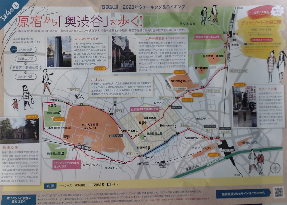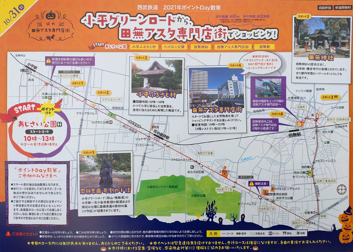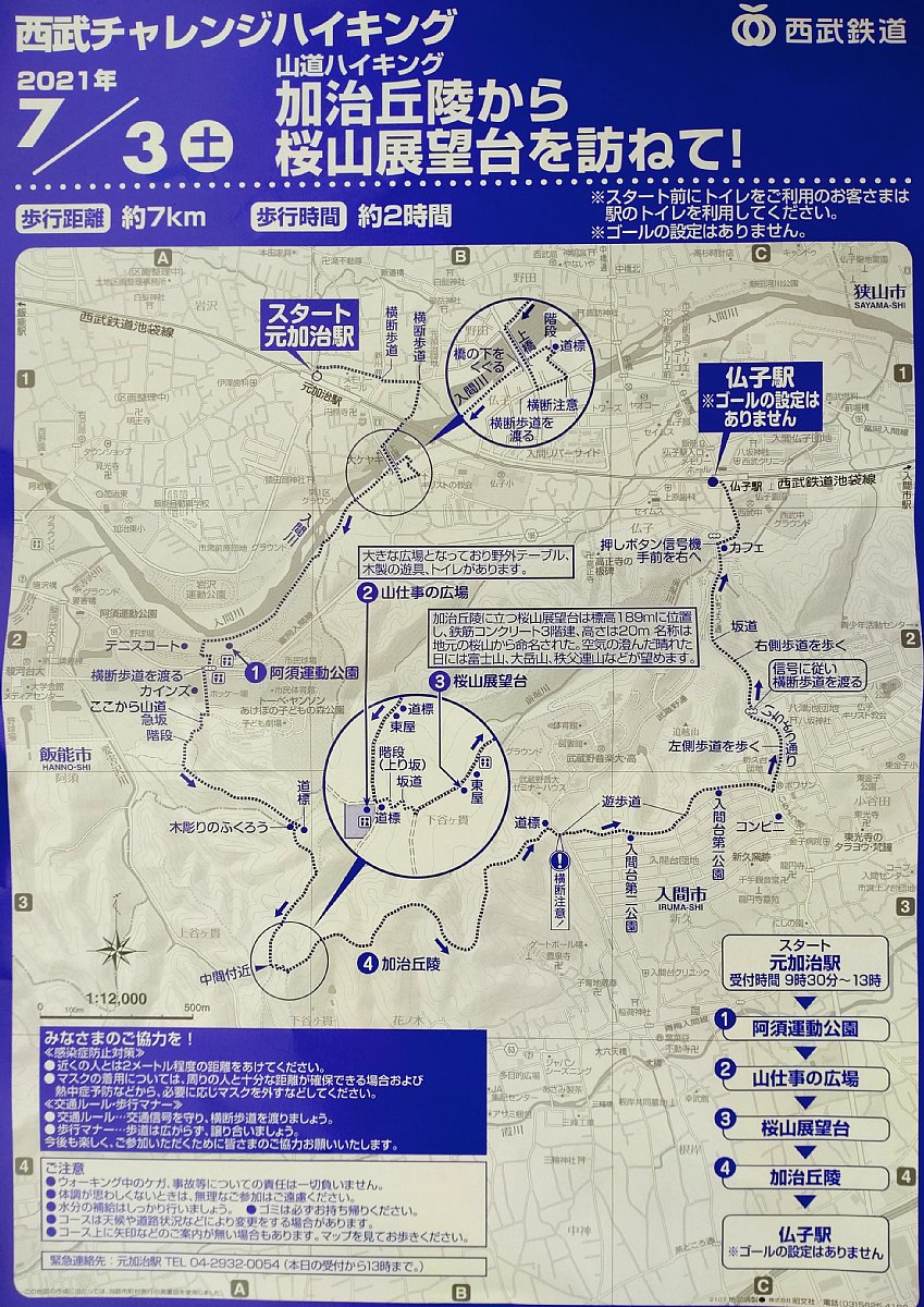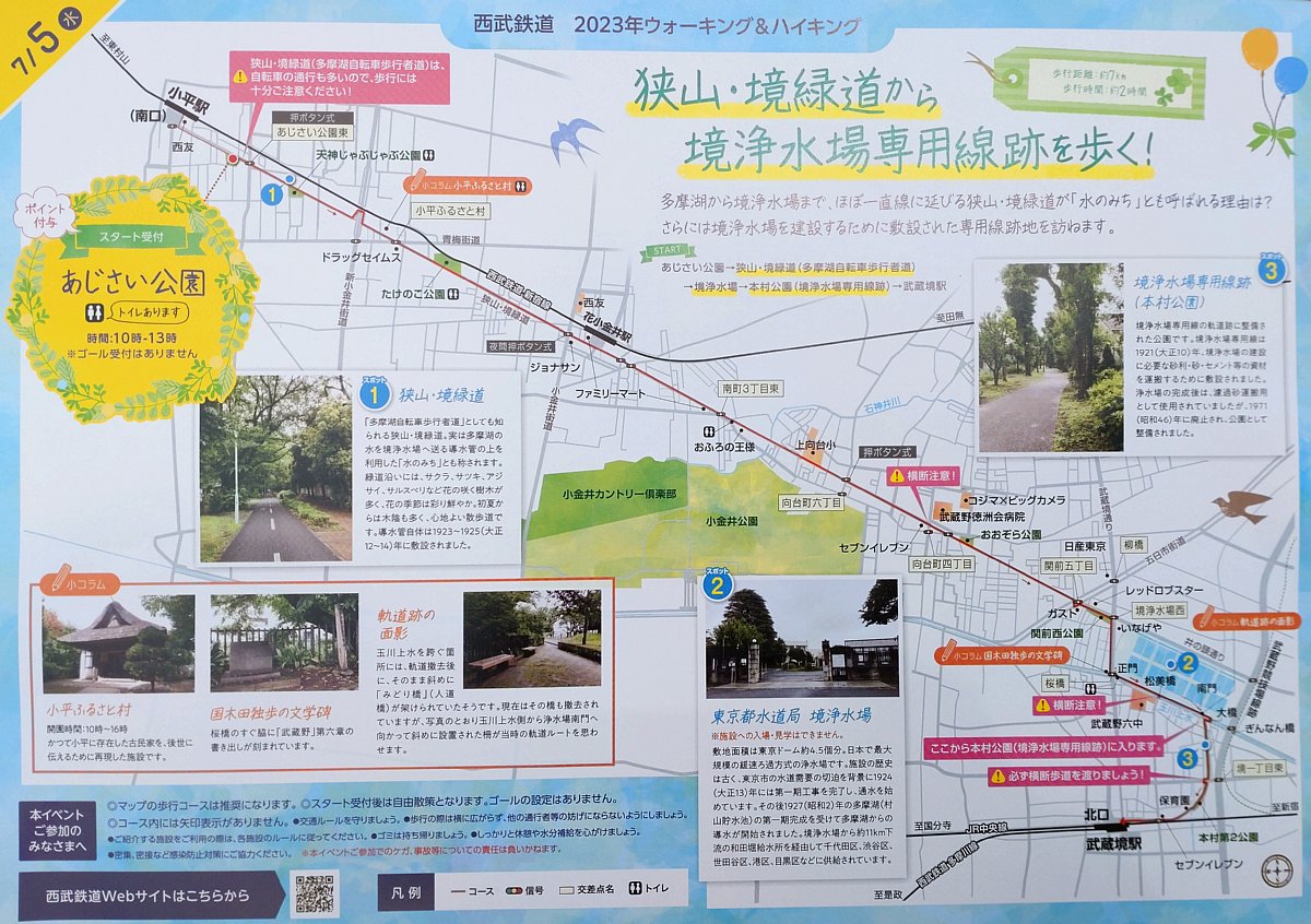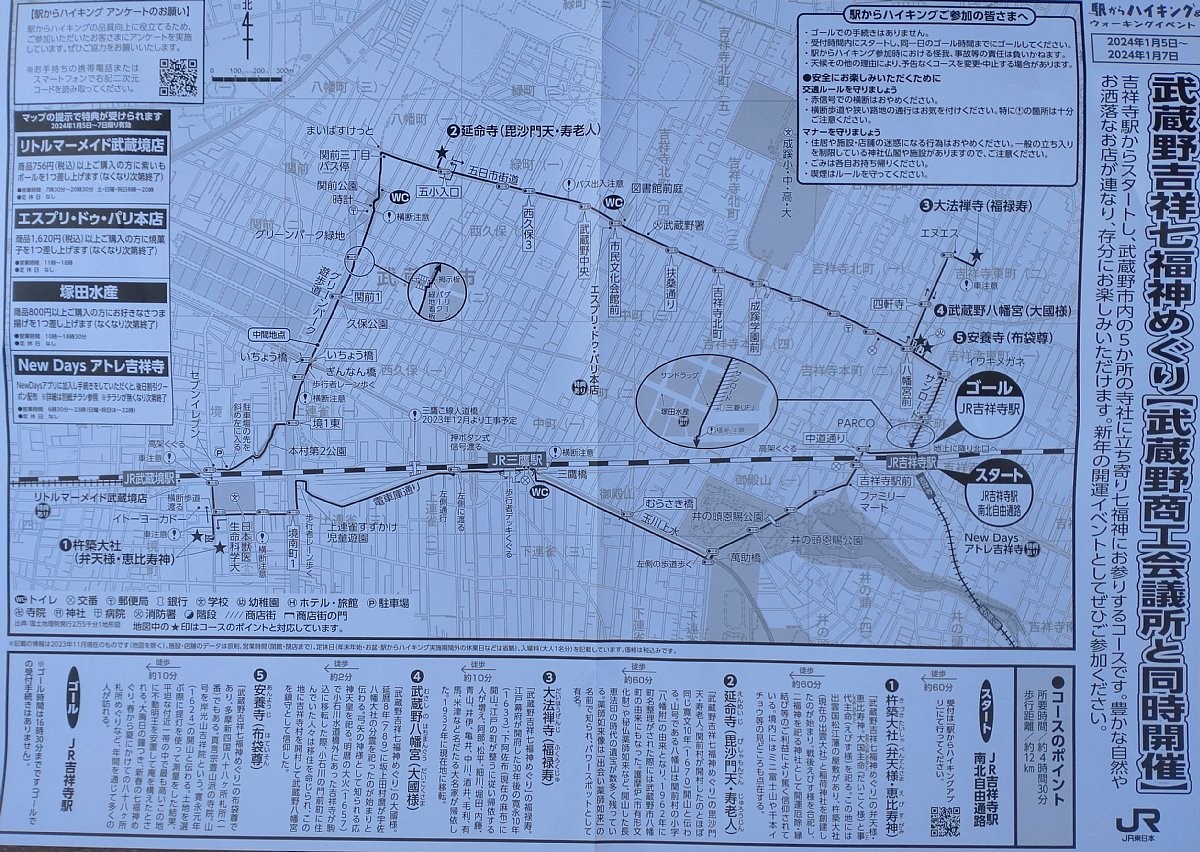 ★2025年09月17日(水) 晴れ、気温(青梅)35.2/23.0℃、西武鉄道、「千川上水を踏破!」武蔵野の屋敷林をめぐる! 猛暑日となった、とてもつらいウォーキングであった。 蒸し暑く汗だくで途中道を間違えるなどして、集中力が散漫ながら歩き切った。 ★2025年09月10日(水) 晴れ/曇り、気温(青梅)32.9/24.2℃、西武鉄道、八国山緑道から荒幡富士へ 佐山丘陵を歩く! 午後から曇りで時々雨、蒸し暑い中でのウォーキング。 ●八国山緑道:狭山丘陵の東端にある八国山のコナラやクヌギの雑木林。 ●荒幡富士:明治32年完成した歴史ある富士塚で、関東では最も大きな富士塚と言われている ★2025年09月03日(水) 晴れ、気温(青梅)36.2/23.9℃、西武鉄道、多摩川沿いの福生南公園、水鳥公園から五鉄通りを歩く! 9月になっても猛暑日が続いている、久しぶり(2ヶ月ぶり)のウォーキング参加。 一番暑い時間帯に歩いたので汗びっしょり、日傘をさしてではあったがこの暑さ(青梅36℃越え)には参った。 ★2025年07月02日(水) 晴れ、気温(青梅)33.2/22.3℃、西武鉄道、「千川上水を踏破!」取水口をめぐる! 今日も夏日2Wほど続いている。6月の平均気温が過去最高を記録、今月も夏日が続いて梅雨明け間近か? 新小金井駅から玉川上水緑道を歩き境水衛所跡(千川上水の取水口)から千川上水(緑道)を歩き東伏見駅がゴール。 ●千川上水:元々は5代将軍綱吉の立ち寄り先である小石川御殿、湯島聖堂、寛永寺、」浅草寺等への給水を目的として作られた ★2025年06月25日(水) 雨/曇り、気温(青梅)29.1/23.1℃、西武鉄道・JR東日本、夏の訪れを感じながら御岳溪谷遊歩道を歩く! 歩き始める直前まで強い雨であったが、御嶽駅を雨上がりで蒸し暑い中スタート。 雨でぬれた遊歩道は歩きにくかったが御岳溪谷を楽しめた。 ★2025年06月18日(水) 晴れ、気温(青梅)34.7/24.4℃、西武鉄道、玉川上水緑道を歩く! 昨日は猛暑日、今日は猛暑日一歩手前の炎天下でのウォーキング、 しかし玉川上水緑道では木陰が多く涼しい風が吹く中でのウォーキングだった。 ★2025年06月11日(水) 雨、気温(青梅)21.5/19.2℃、西武鉄道、智光山公園の花菖蒲鑑賞ピクニックへ! 昨日梅雨入りした、昨年より11日早く平年より3日遅い。 今日は雨の中を智光山公園の花菖蒲鑑賞のウォーキング、智光山公園に着くころから本格的な雨となり 足元がずぶ濡れにながらの花菖蒲鑑賞であった。花菖蒲園には約2,600株もの花が咲きここっていた。 ★2025年05月21日(水)小満 晴れ、気温(青梅)30.5/18.0℃、西武鉄道、玉川上水緑道を歩く! 昨日は真夏日、今日も真夏日で蒸し暑い。 玉川上水緑道は木陰で涼しい風があり比較的歩きやすいウォーキングであった。 ★2025年04月05日(土) 晴れ、気温(青梅)16.2/1.1℃、西武鉄道、西新宿 代々木を散策! 神田川のサクラの花見ウォーキング、北風があり肌寒かったが絶好の花見日和である。 神田川沿いのサクラは満開でおお花見の人出で川沿いの遊歩道は混雑が激しかった。 が、約3?程の満開の神田川沿いのサクラを楽しむことができた。 ★2025年03月18日(火) 晴れ|曇り、気温(青梅)11.7/2.7℃、JR東日本、町田三天神と梅、桜をめぐるコース 町田三天神(町田天満宮、南大谷天神、菅原神社)と梅・桜をめぐるコースであったが、 梅はすでに終わり桜は早咲きがチラホラで時期が悪かった。(コース期間は3/1〜3/31) 恩田川沿いに早咲きのサクラとカワセミ、まちだのデコイチ(D51862)は楽しめた。 ★2025年03月07日(金) 晴れ、気温(青梅)10.6/0.6℃、JR東日本、目黒川がつなぐ歴史・ぶんかの街を歩く 北風が強く吹く中のウォーキングであった。 目黒川沿いのサクラはまだ咲く気配がない、 寒かったので足早に回ったが、旧朝倉家住宅とめぐろ歴史資料館を見学した。 ★2025年01月11日(土) 晴れ、気温(青梅)10.6/-4.2℃、秩父鉄道、新春開運祈願!秩父街なか歩きと自社巡り 今年初めてのウォーキングイベントに参加、秩父鉄道主催の秩父街なか歩きと自社巡りである。 最低気温青梅ー4.2、秩父-6.6℃と1月に入ってからの最低気温の中ではあったが日中は日差しがあり暖かく感じた。 秩父神社の初参拝をスタートに8か所をめぐり、ゴールでは秩父市のマスコットキャラクタの「ポテくまくん」に遭遇。