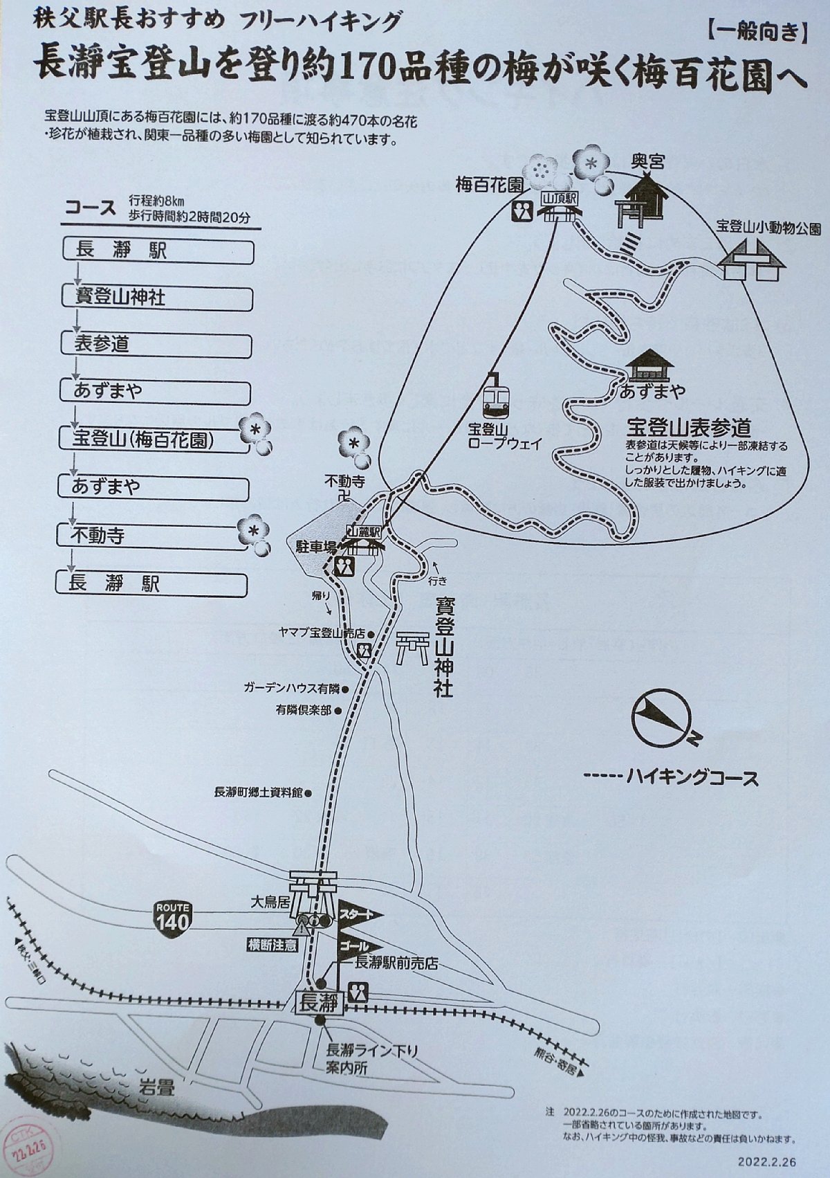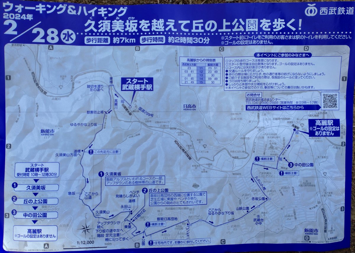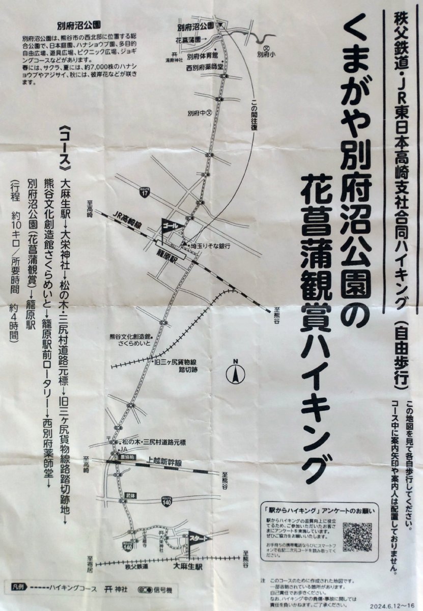 ★2024年12月13日(金) 曇り、気温(青梅)7.7/-2.8℃、JR東日本、浮世絵に描かれた江戸を感じる奥浅草散策 今冬一番の寒さの中でのウォーキング、上野駅からかっぱ橋道具街、隅田川テラスを経て南千住駅ゴール コース途中では7つの神社の参拝、隅田川テラスからはスカイツリーを眺めながらのウォーキング。 ★2024年12月08日(日) 、気温(青梅)12.5/0.7℃、西武鉄道、イベントを楽しむ!狭山茶の里ウォーキング ようやく平年並みの陽気になり、朝晩の寒さは答える。 北風が強い中を入間川沿いのウォーキング、コース途中に模擬店などの職やイベントが設けられた 西武鉄道と狭山市などが合同したウォーキングで参加者がとても多く賑やかな出会った。 ★2024年11月28日(木) 晴れ、気温(青梅)17.4/5.3℃、西武鉄道、東久留米から野火止用水満喫ウォーク! コース途中の平林寺、紅葉で知られく古刹である。 広いヘリ虹の山林の中にある境内にはたくさんのもみじが見ごろの紅葉であった。 ★2024年11月17日(日) 晴れ、気温(青梅)24.1/13.7℃、JR東日本、青梅の歴史と自然とアートに触れられるコース 今日は暑い、夏日手前でこの時期としては異常。 青梅駅から青梅丘陵ハイキングコースから釜の渕公園、郷土博物館をめぐる。 ★2024年11月03日(日) 、気温(青梅)22.7/10.2℃、秩父鉄道、寄居・風布みかんの里へ 紅葉にはまだまだ、今月末ころだろう。 以前11月末に訪れた時、日本(やまと)の里のもみじの紅葉はとてもきれいであったが、今回は深緑であった。 風布へは釜伏川沿いに「風の道」というコースがあり夏は川風があり気持ちいい散策路だと思う。 ★2024年11月01日(金) 晴れ/曇り、気温(青梅)20.4/9.3℃、JR東日本、文化と自然があふれる東京のおへそ こくぶんじで秋散歩 何回か訪れたことがあるお鷹の道、真姿の池湧水群、武蔵国分寺などを歩くコース。 ★2024年10月11日(金) 晴れ、気温(青梅)24.4/12.1℃、秩父鉄道、秩父札所と武甲山の伏流水をめぐる 絶好のウォーキング日和、少し汗ばむほどの陽気だが、久しぶりの秩父である。 平日のためか秩父市内は閑散としていたが、12月2・3日には日本3大曳山祭りの一つである「秩父夜祭」が行われ 多くの観光客で賑わう。一度は見てみたいものだ。 ★2024年09月28日(土) 曇り、気温(青梅)27.1/20.1℃、西武鉄道・JR東日本、絶景の曼殊沙華 〜日高市の自然と歴史を満喫〜 曇りで蒸し暑い中を高麗川駅から高麗神社を経て巾着田の曼殊沙華を鑑賞するウォーキング。 今年は猛暑が続いたため例年より開花が遅れており、ちょうど見ごろであった。いつもは彼岸の頃である。 ★2024年08月28日(水) 晴れ、気温(青梅)31.3/23.1℃、西武鉄道、東久留米の清流 遊歩道を散策! 台風10号の影響で不安定な天気で心配したが、一日降らずに持ちこたえた中でのウォーキング。 落合川、くろめがわの遊歩道は何回か歩いたことがあるが、炎天下でのウォーキングは今回が初めて。 やはり炎天下でのウォーキング辛い、特に今年は猛暑が連続しており夏バテ気味で体力の消耗が激しかった。 ★2024年07月03日(水) 曇り/晴れ、気温(青梅)33.0/22.9℃、西武鉄道、立川飛行場「中神引込線」廃線跡を歩く! 蒸し暑く真夏日となった、武蔵砂川駅から五日市街道、残堀川沿いを経て旧日本軍の立川飛行場「中神引込線」廃線跡をたどり、 ゴールが青梅線中神駅のウォーキング。残堀川の両岸は桜並木が続いておりサクラが咲くころにお花見で歩いてみたいところである。 ★2024年06月26日(水) 晴れ、気温(青梅)31.6/23.8℃、西武鉄道、吾野の清流 高麗川沿いの山道をあるく! 吾野駅から高麗川沿いの東郷公園前を経てアップダウンがある山道をひたすら歩き「休暇村奥武蔵」に出て、 最後は299号を歩きゴールの西吾野駅。コース途中で特にこれはという見るべきものはなかった。 ★2024年06月19日(水) 晴れ、気温(青梅)30.2/15.0℃、西武鉄道、落合川沿いから六仙公園を散策! 快晴で真夏日の中を東久留米駅から清流の落合川沿い、六仙公園、スカイタワー西東京を経てゴールが花小金井駅。 前半は木陰もありよかったが後半は大通りを歩くため木陰が少なく汗だくのウォーキングであった。 ★2024年06月15日(土) 晴れ、気温(青梅)30.7/18.7℃、秩父鉄道・JR東日本、くまがや別府沼公園の花菖蒲鑑賞ハイキング 日本一暑い場所で有名な熊谷市での駅からハイキング、 真夏日で街路樹がなく日影の少ない炎天下のコースで、途中立ち寄って休憩するような場所もなかった。 別府沼公園の花菖蒲園は期待外れのハナショウブの少なさであった。 ★2024年06月04日(火) 晴れ/曇り、気温(青梅)23.3/13.4℃、JR東日本、東京で自然・歴史を感じるハイキング 恵比寿駅から有栖川宮記念公園、気象科学館、NHK放送博物館、東京タワー、増上寺、芝大神宮などを辿りゴールが浜松町駅。 途中、気象科学とNHK放送博物館の見学と東京タワーのメインデッキ(高さ150m)から都内を一望、富士山は雲で眺望できず。 ★2024年05月09日(木) 晴れ、気温(青梅)19.4/8.2℃、西武鉄道、野火止用水沿い