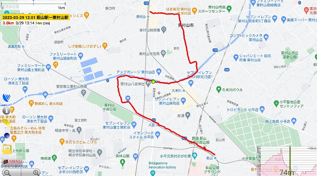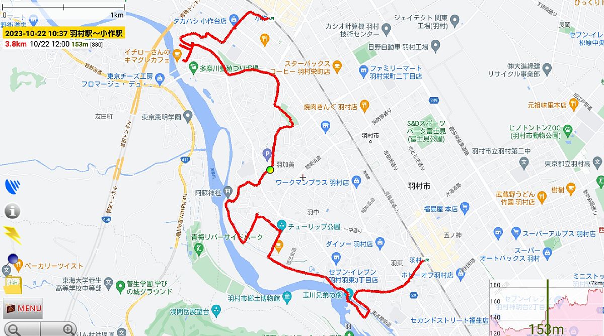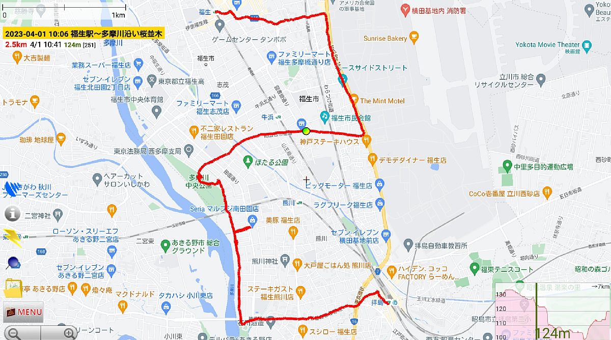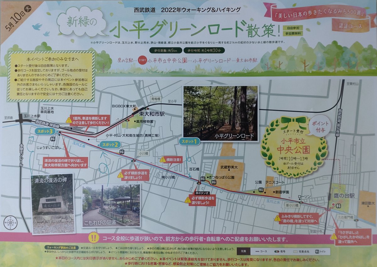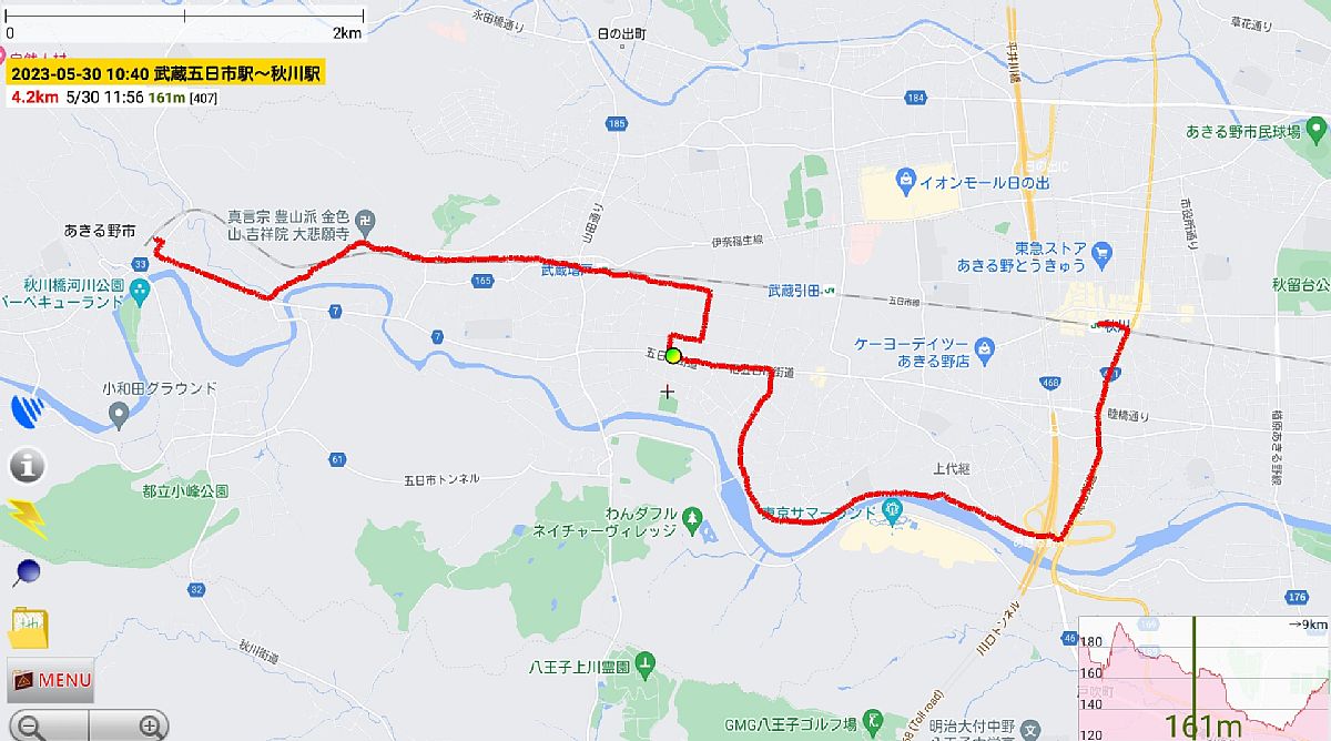 昨日は真夏日で暑かったが今日は清々しい陽気でウォーキング日和。 秋川駅スタートで秋川遊歩道、東秋留橋、二宮神社、都立秋留台公園、ゴールはスタートの秋川駅の周回コース ---------------------------------------------------------------------------------------------------------