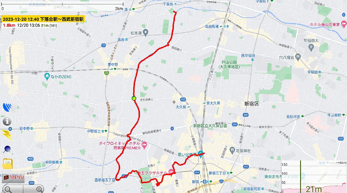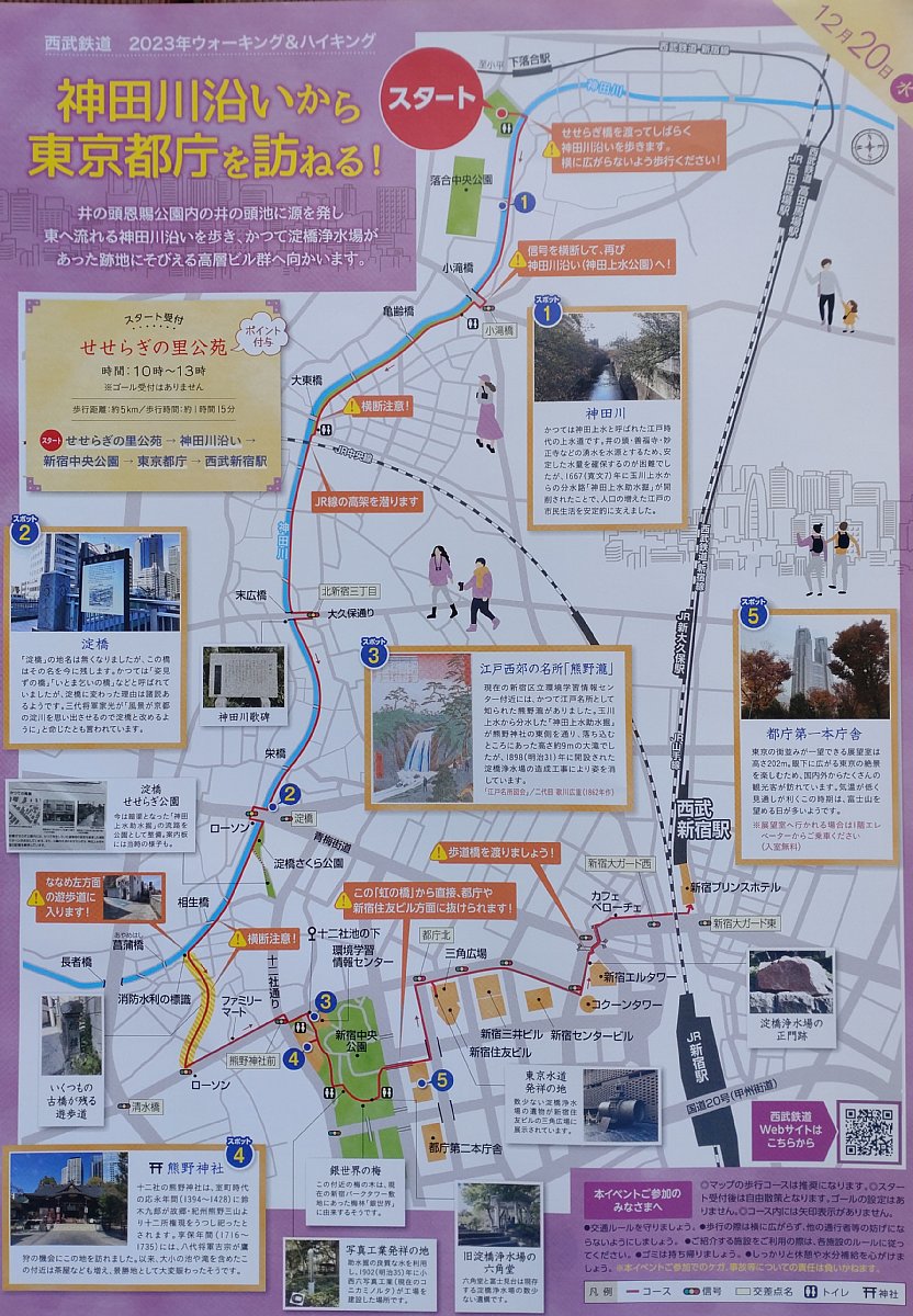 ★2023年12月20日(水) 晴れ、気温(青梅)13.5/1.4℃、西武鉄道、神田川沿いから東京都庁を訪ねる!