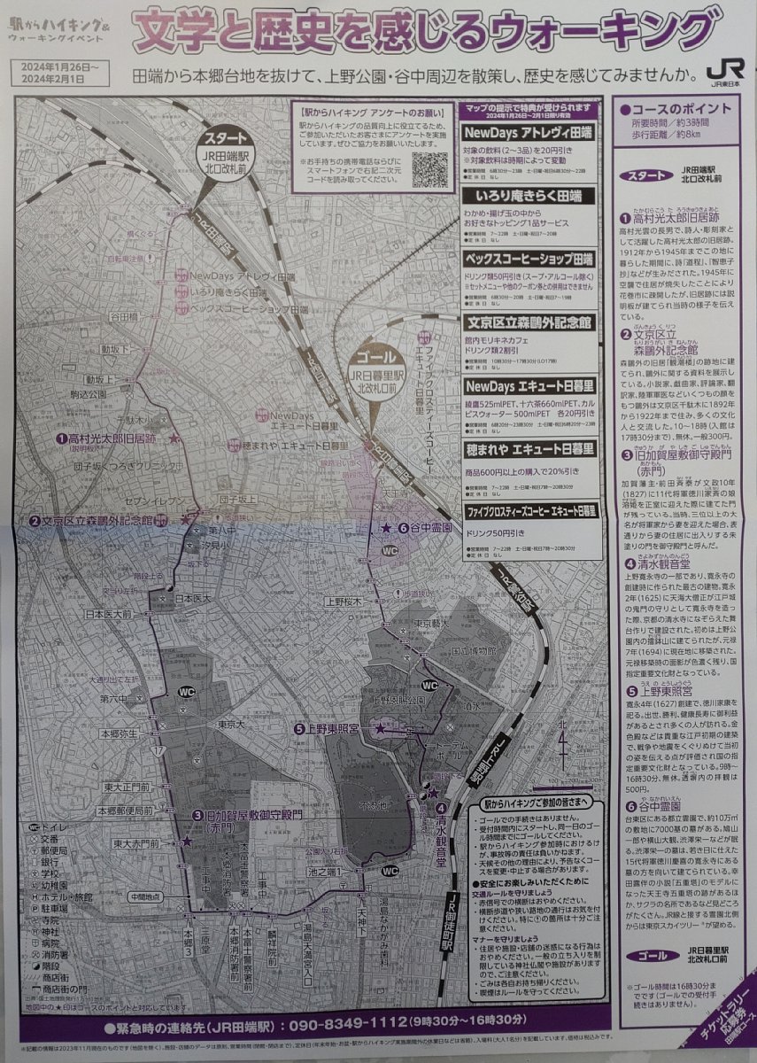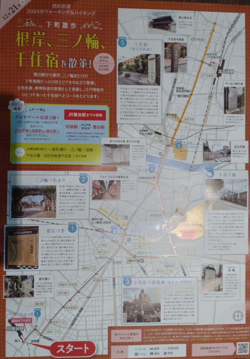 何故か、西武鉄道が主催なのにJR東の鶯谷駅から北千住駅間の根岸、三ノ輪、千住宿を歩くコース。 途中で都電荒川線の三ノ輪橋停留所で電車を堪能及び三ノ輪商店街をぶらぶら散策。 ---------------------------------------------------------------------------------------------------------
