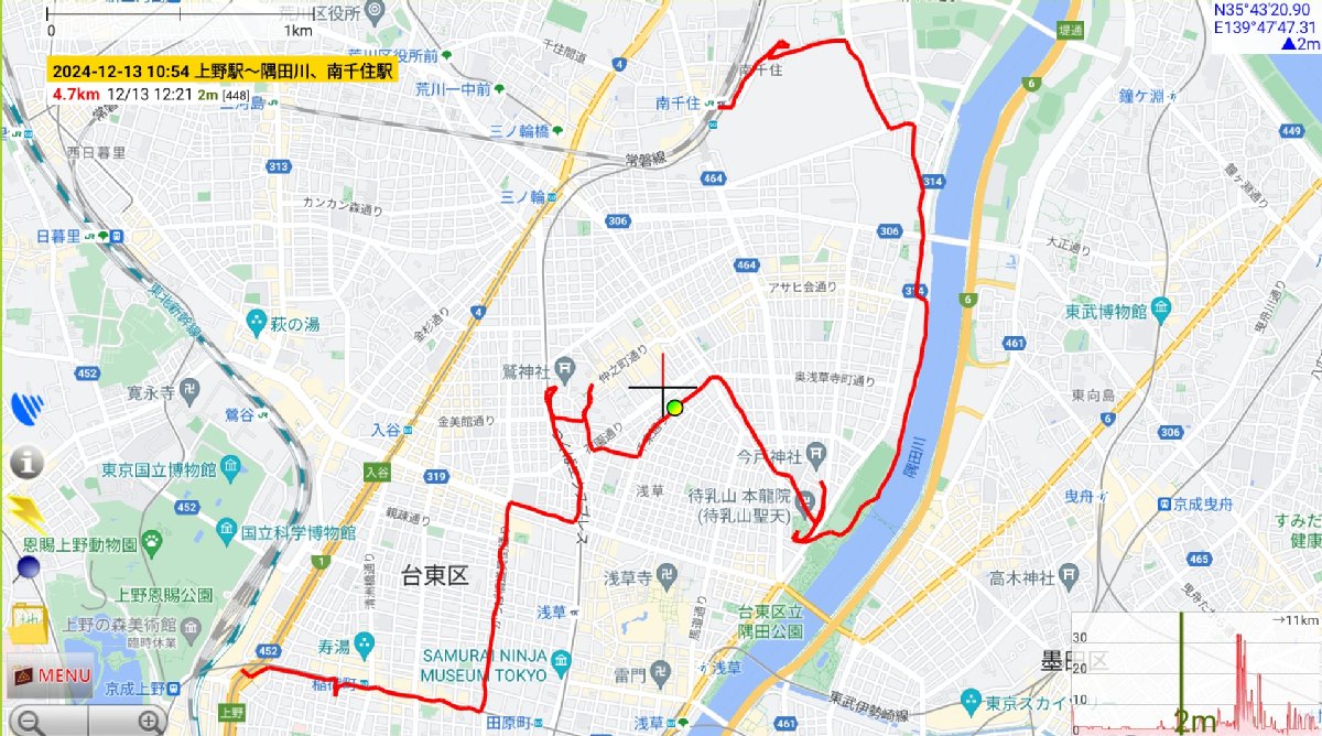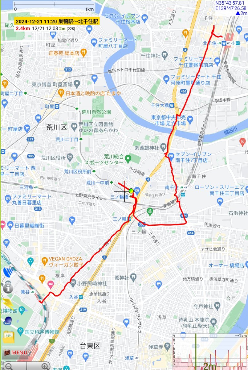 ★2024年12月21日(土)冬至 晴れ、気温(青梅)15.9/-1.3℃、西武鉄道、根岸、三ノ輪、千住宿を散歩!