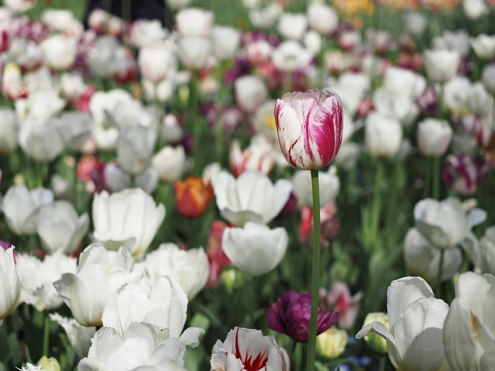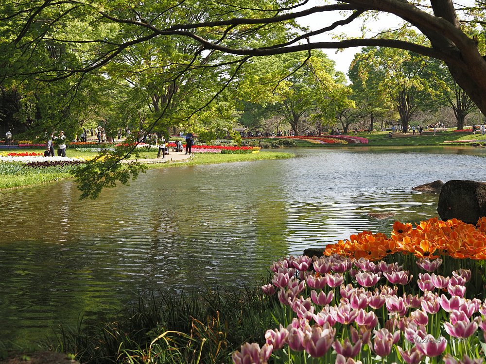 25℃を超える暑い夏日となった、昭和記念公園のネモフィラとチューリップが見頃とのことで観賞&散策した。 平日にもかかわらず多くの観賞客でチューリップガーデンが賑わっていた。