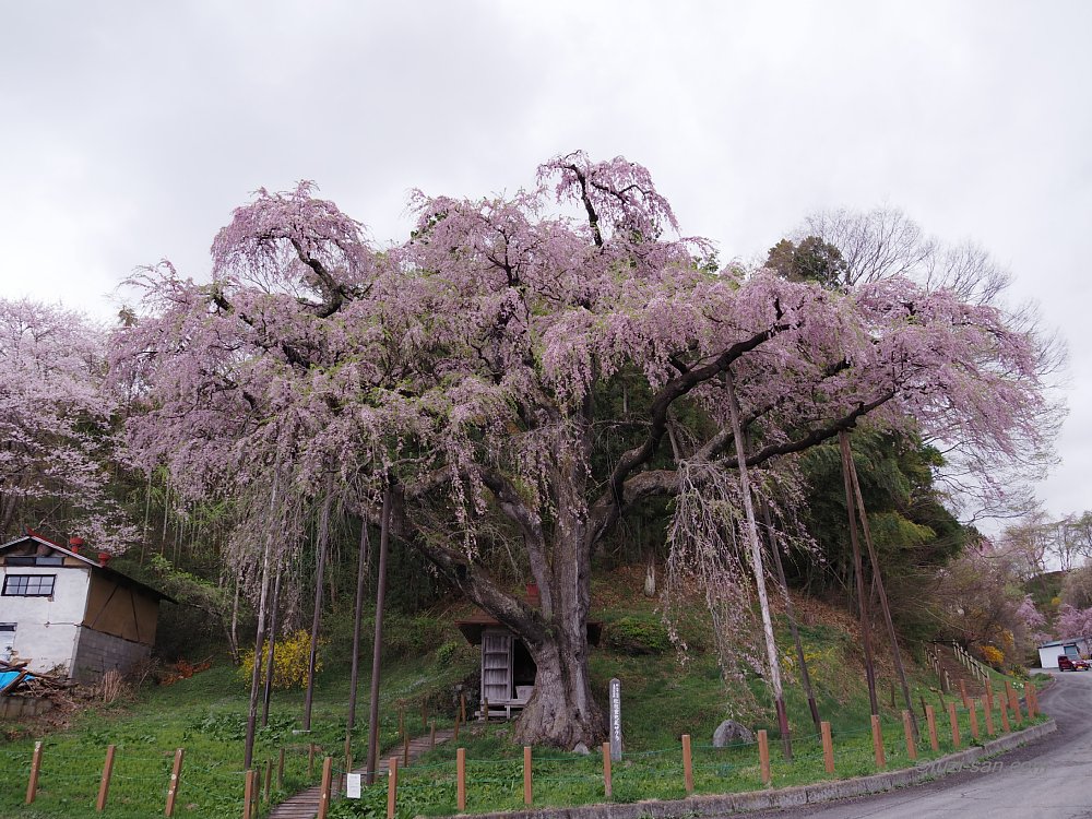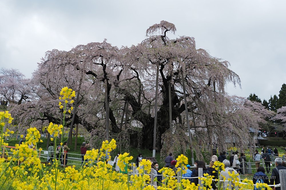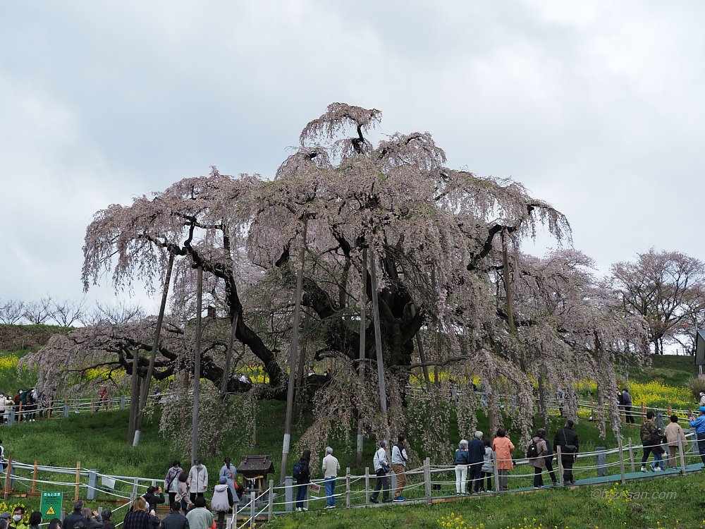 ★2022年4月16日(土)、曇り|小雨、三春の滝桜(樹齢約1000年)、福島県三春町