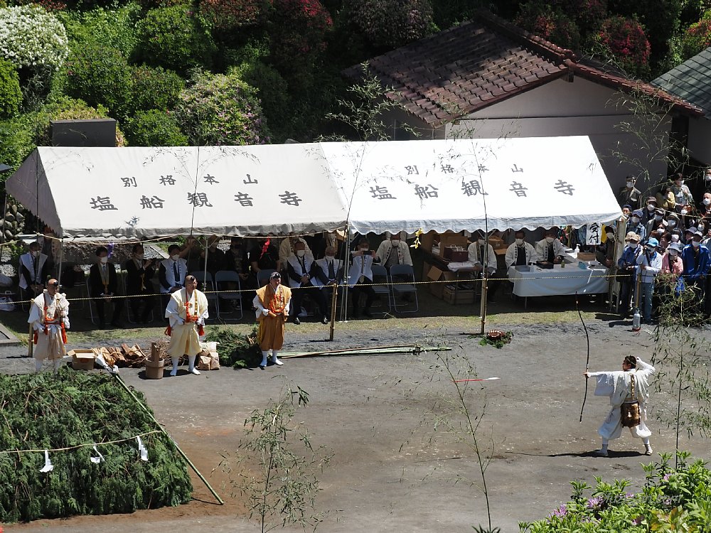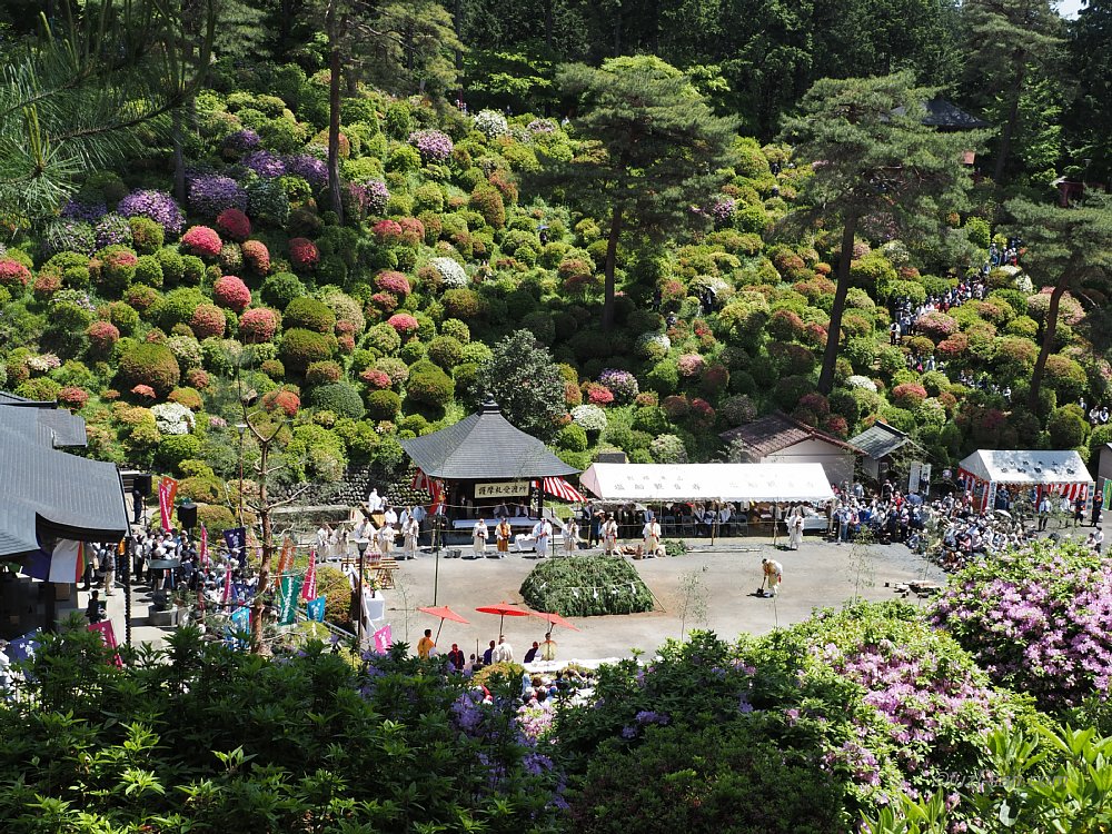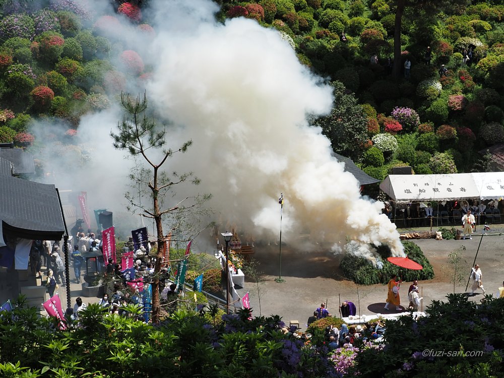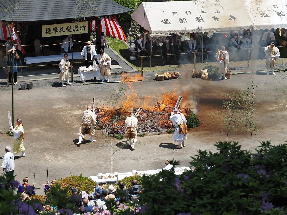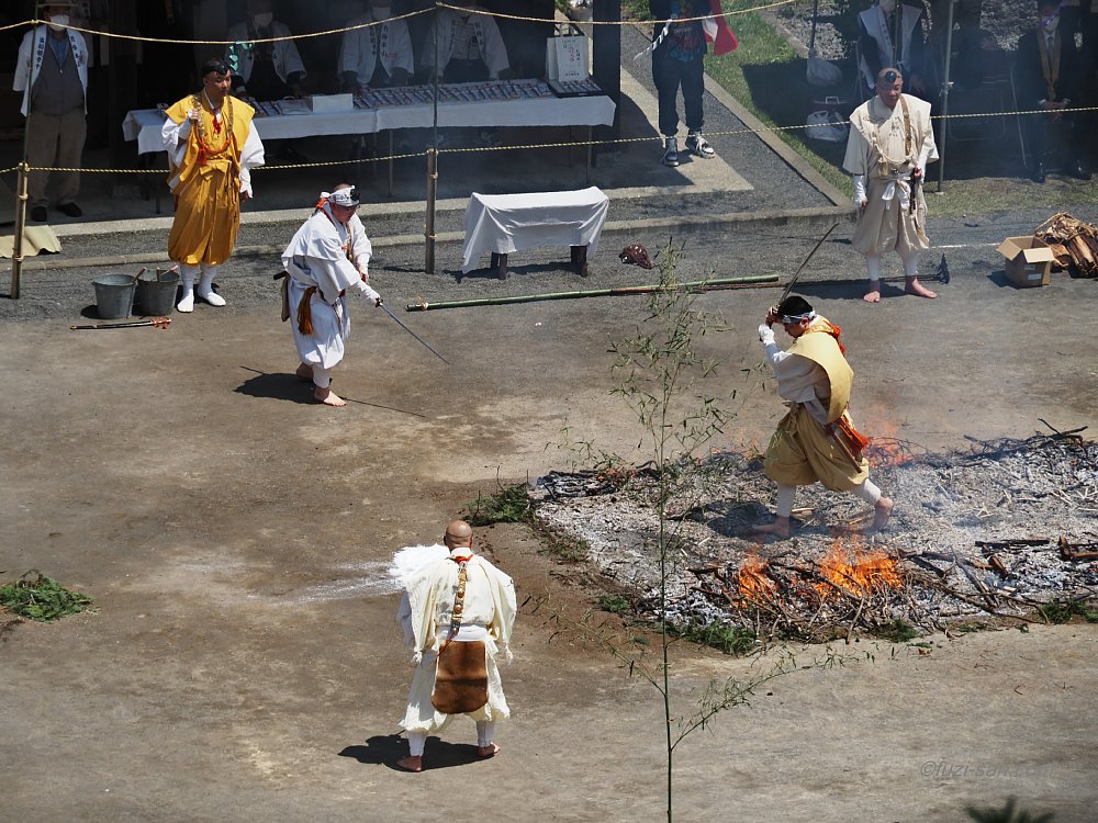 5月3日憲法記念日、塩船観音寺でつつじ祭りと例大祭火渡り荒行が行われたので見物に、ツツジはピークを過ぎていた。 火渡りは修験者のほか一般の方が約500名が参加していた。 ◆修験者が火渡りしている様子 ◆火渡り行事の一連の流れの様子
