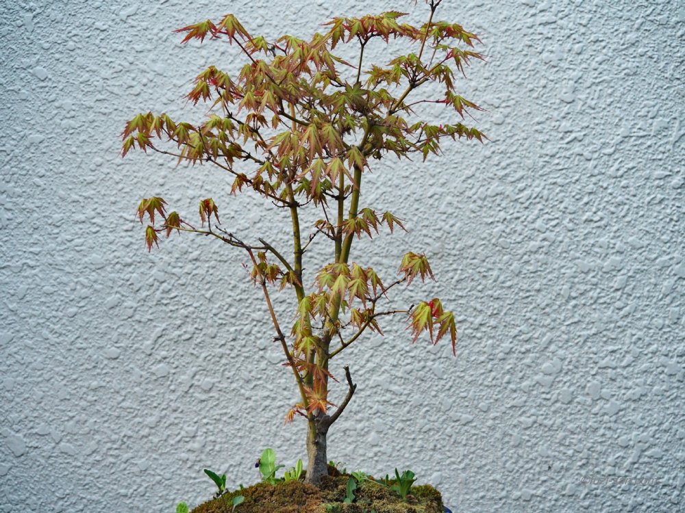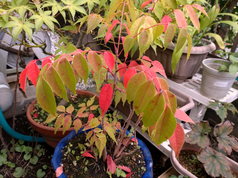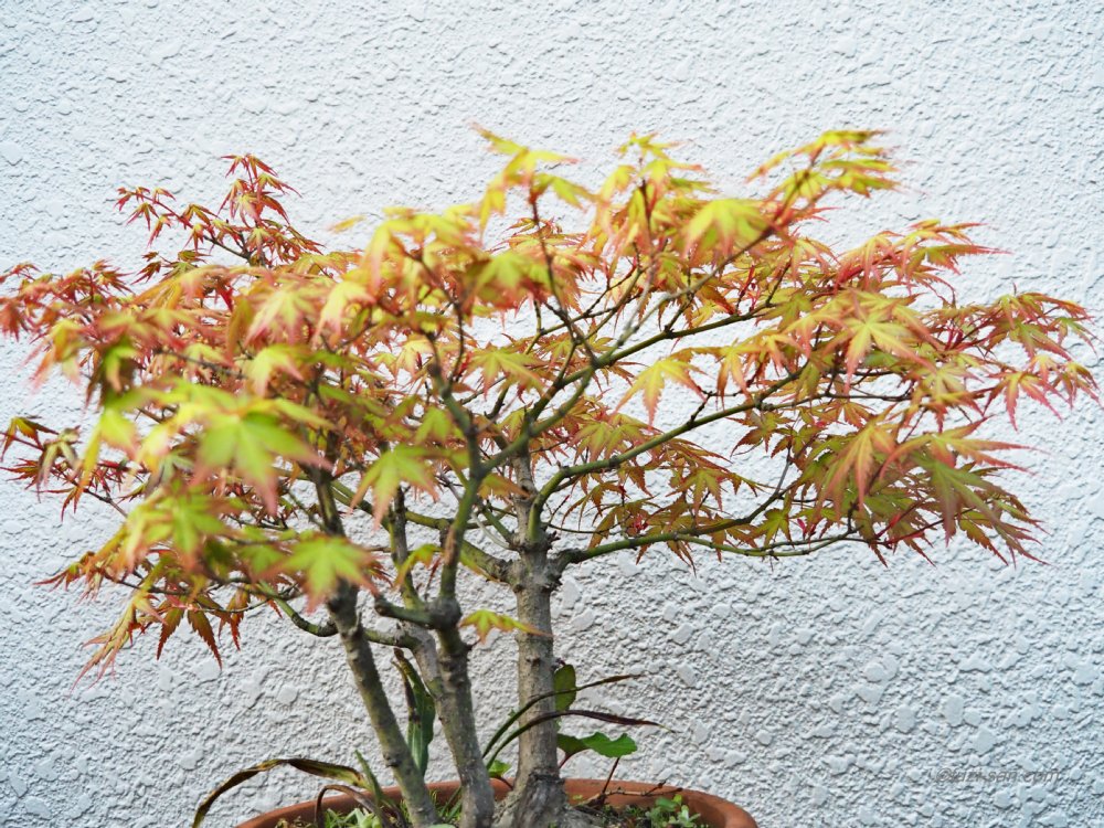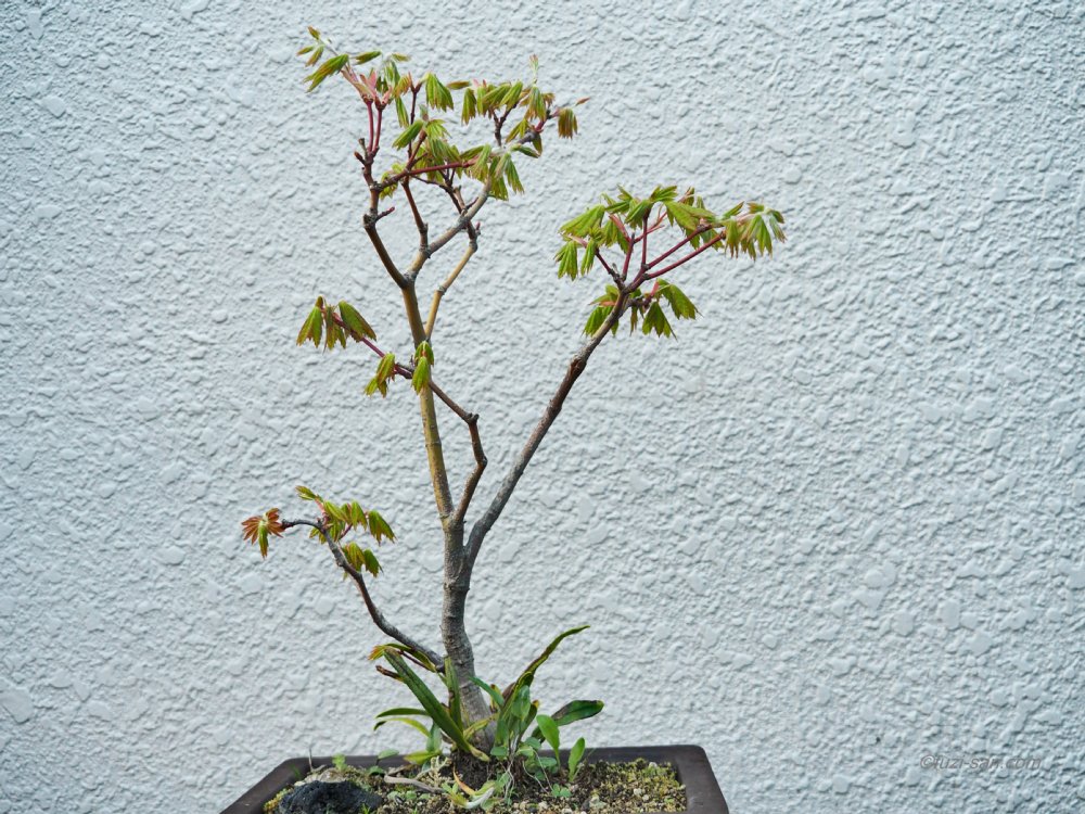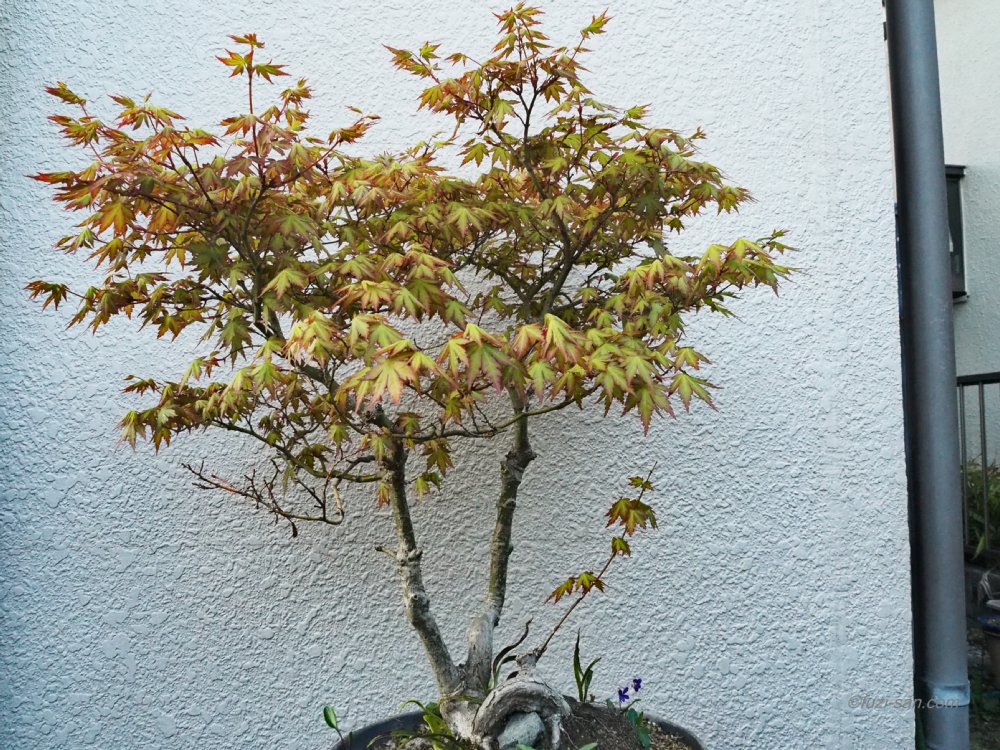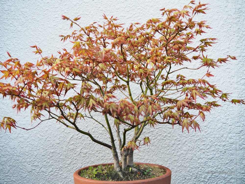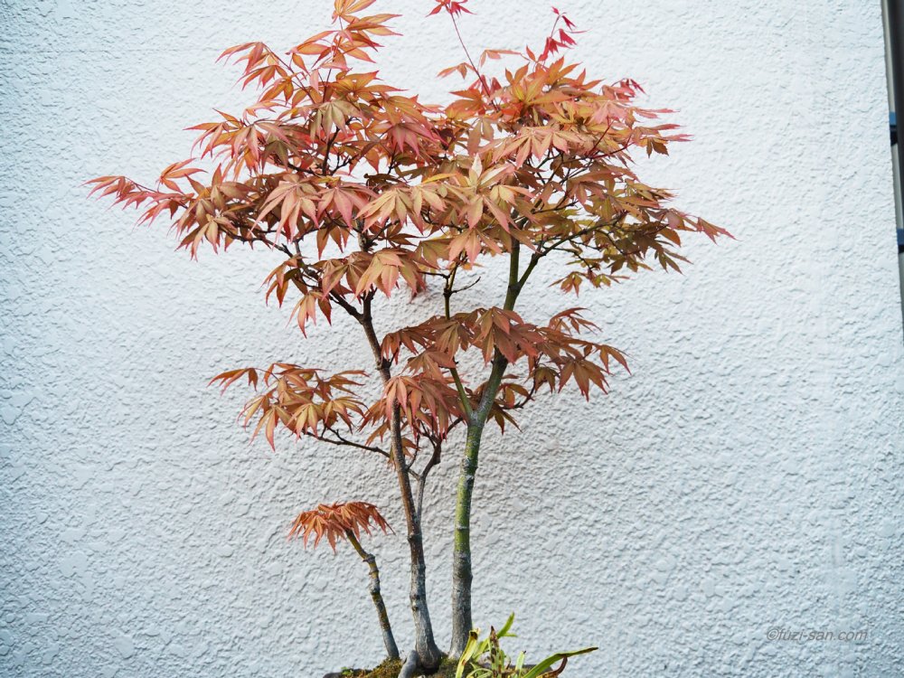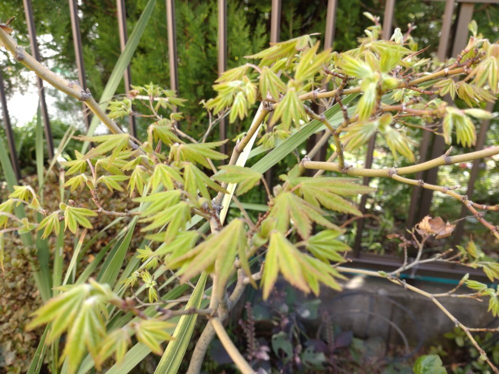 ほぼ夏日の気温で暑い、鉢植えのモミジの新芽が綺麗だ。 ●春モミジ 春モミジ(春紅葉)とは、春にモミジが新芽を出す際に、葉が赤色や黄色の色素を帯びて、まるで紅葉のように見える現象