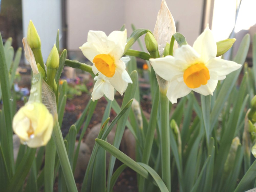 昨日は大寒、一年で最も寒い時期であるが暖かい。 スイセン(日本水仙)とスノードロップが咲いた。