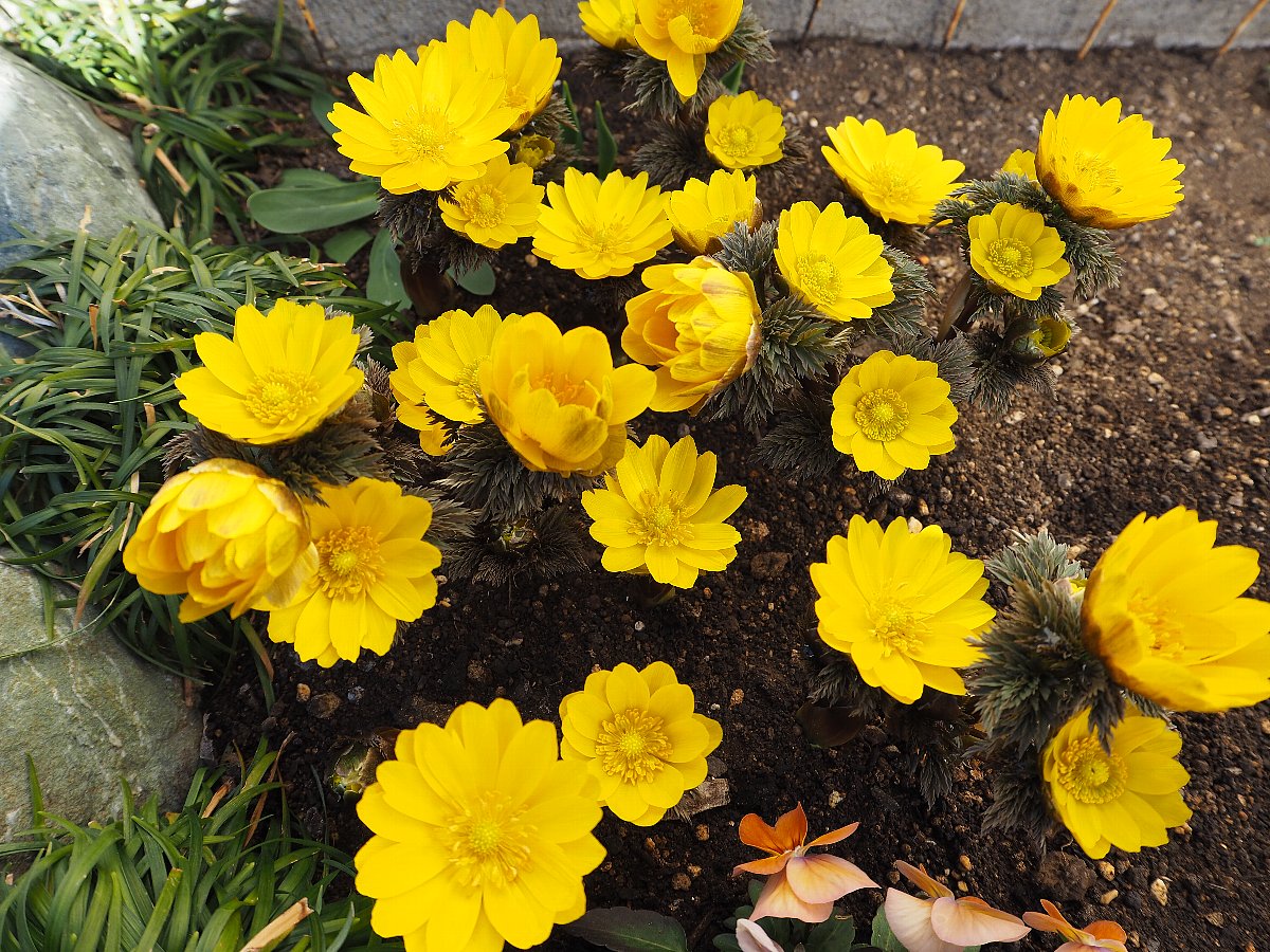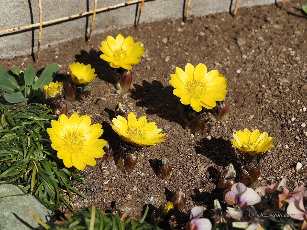 今日は快晴で日差しは強いが、北風があり真冬並みの寒さである。 庭の福寿草が満開になった。 2021年2月3日(水)、晴れ、気温(青梅)10.6/-2.6℃ 昨日は節分で最高気温が16.6℃と4月の陽気であったが、 今日2月3日は立春で快晴ながら最高気温10.6℃の平年並みで気温の変化が激しい、 季節の変わり目である。明日は春一番が吹くのではとの予報も。 我が家の庭ではいつも立春前後に福寿草が綺麗に咲いてくれる。