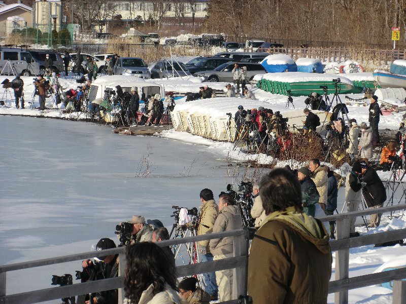 この時期でダイヤモンド富士が見られる絶好なスポットとして有名な山中湖交流プラザ「きらら」に妻と出かけた。15時少し前に到着したが13,14日の大雪で辺り一面30~40センチの積雪にもかかわらず既に数百名が撮影ポイントを確保してスタンバイ、その後も続々と集まりきららの関係者の話では700百名位とのことでバスツアー団体も来ていた、平日なのに.....。太陽が富士山頂にかかりダイヤモンド富士が見られたのが16:35から2分位で撮影しながらではじっくりと眺めることができなかったが、初めてダイヤモンド富士を目の前にし感動!感激!。この次は秋のダイヤモンド富士を是非見たい。標高900mだが快晴に近い晴れで日没前はそれほど寒くはなかったが日没後は急激に気温が下がり現地を離れる17時過ぎには2度、やはり富士山裾野はまだまだ冬である。 写真下段左がスタンバイしているカメラマン、中央が日没前の富士山、右が日没後の富士山。