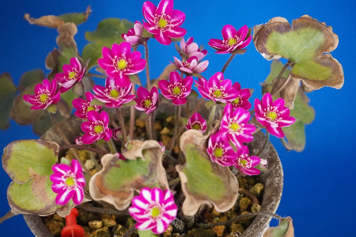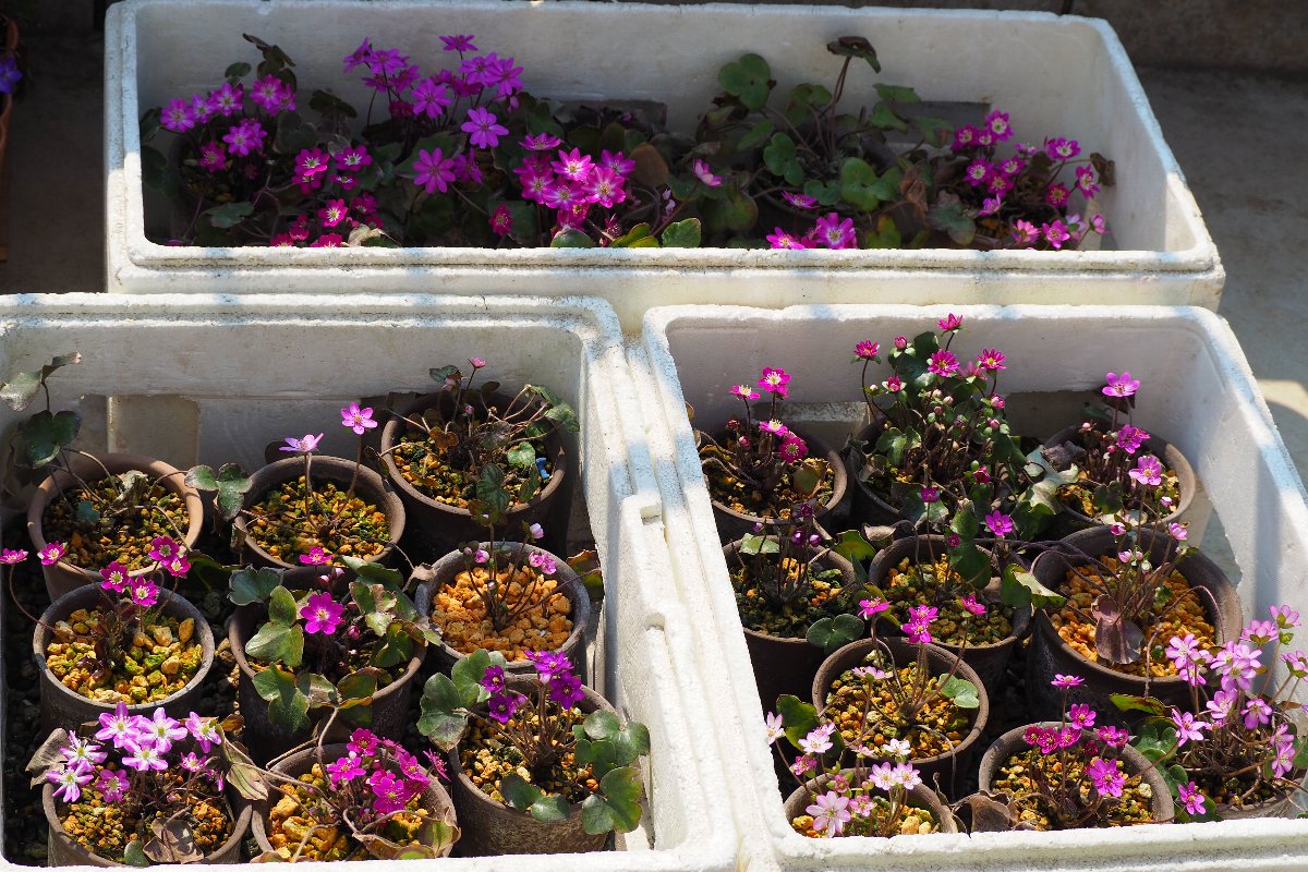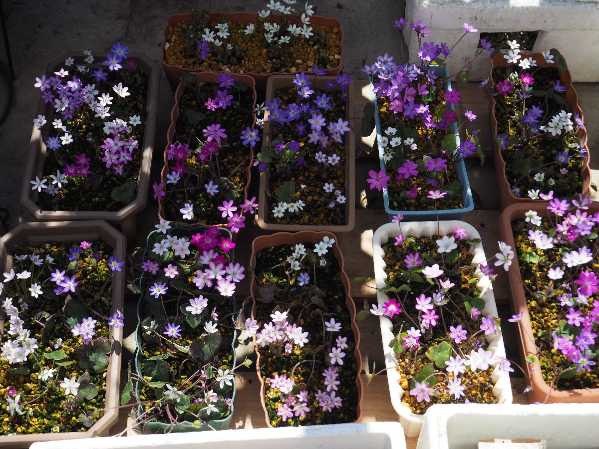 雪割草は種を蒔いてから大体3・4年目で花が咲く。 早い場合は2年でも咲くことがある。 毎年種を採取し育てている。