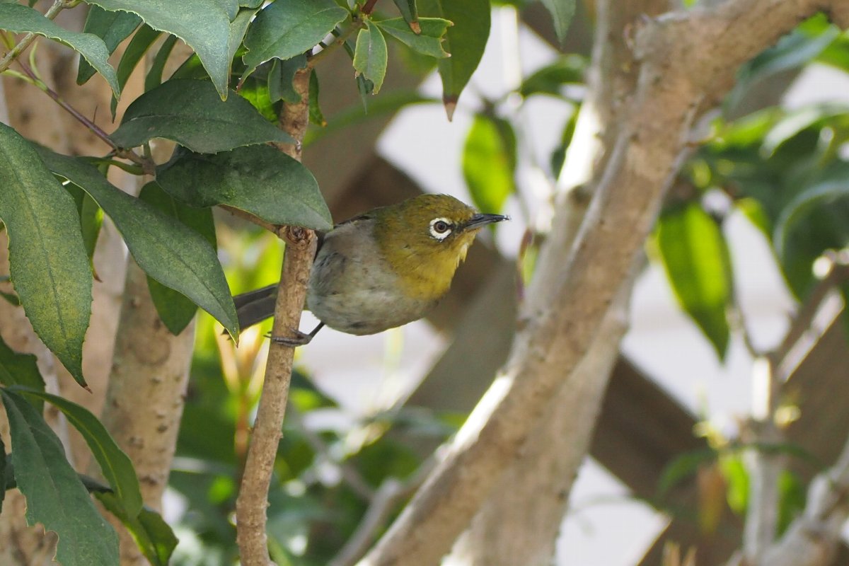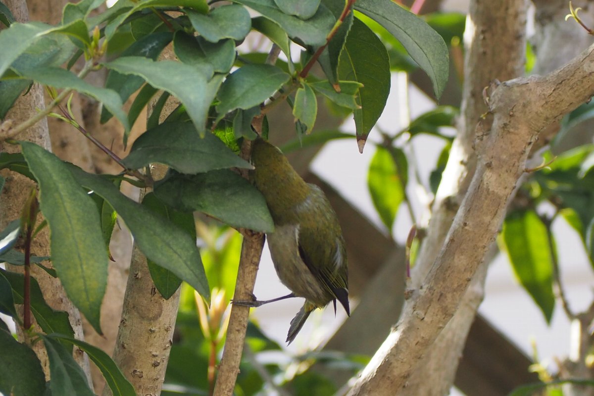 昨日に続き気温20度を超えて暑い、そして南風が強く下り坂である。 今日咲いているスミレ、2点です。 ★メジロが金木犀の木で虫を?