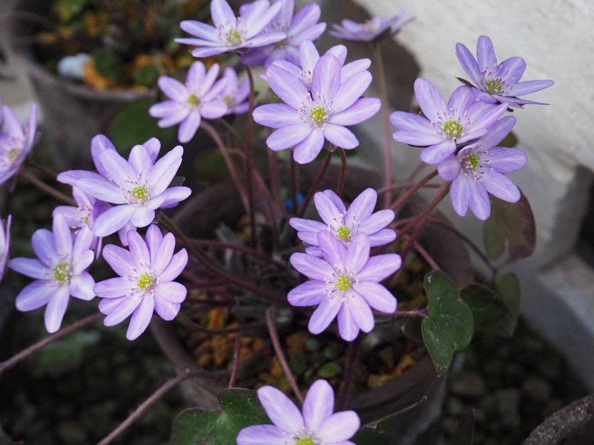 今日も晴天で陽気は5月である。またスギ花粉の飛散が非常に多い。 雪割草が一気に咲き誇り綺麗である。