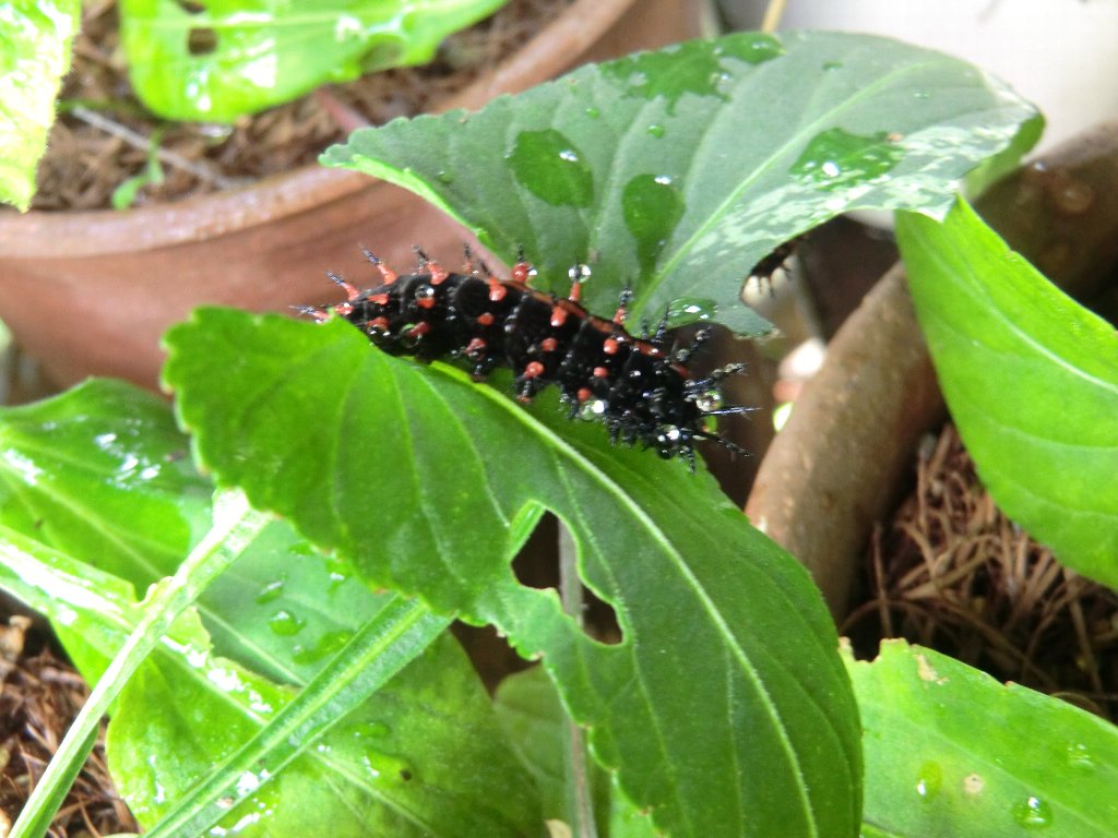 久しぶりにスミレの様子を見たらツマグロヒョウモンの幼虫に葉を食べられていた。 8月の後半から9月上旬にかけて立て続けの台風の影響と天候不順で雨と低温等が続きスミレの手入れを怠っていた。この間にツマグロヒョウモンの幼虫が大量に発生し、多くのスミレの葉を食べつくされてしまった。10数匹を捕殺処理した。 この時期、毎年ツマグロヒョウモンの幼虫が大量発生するので注意せねば。