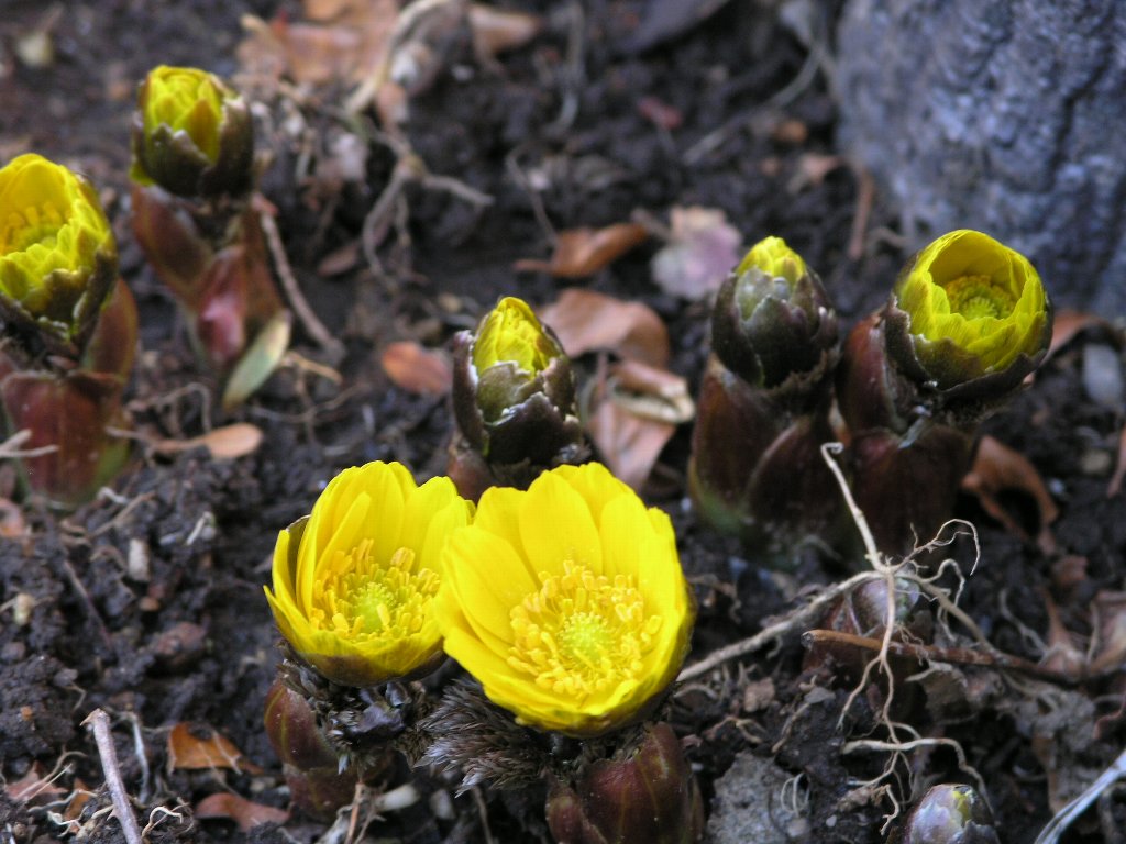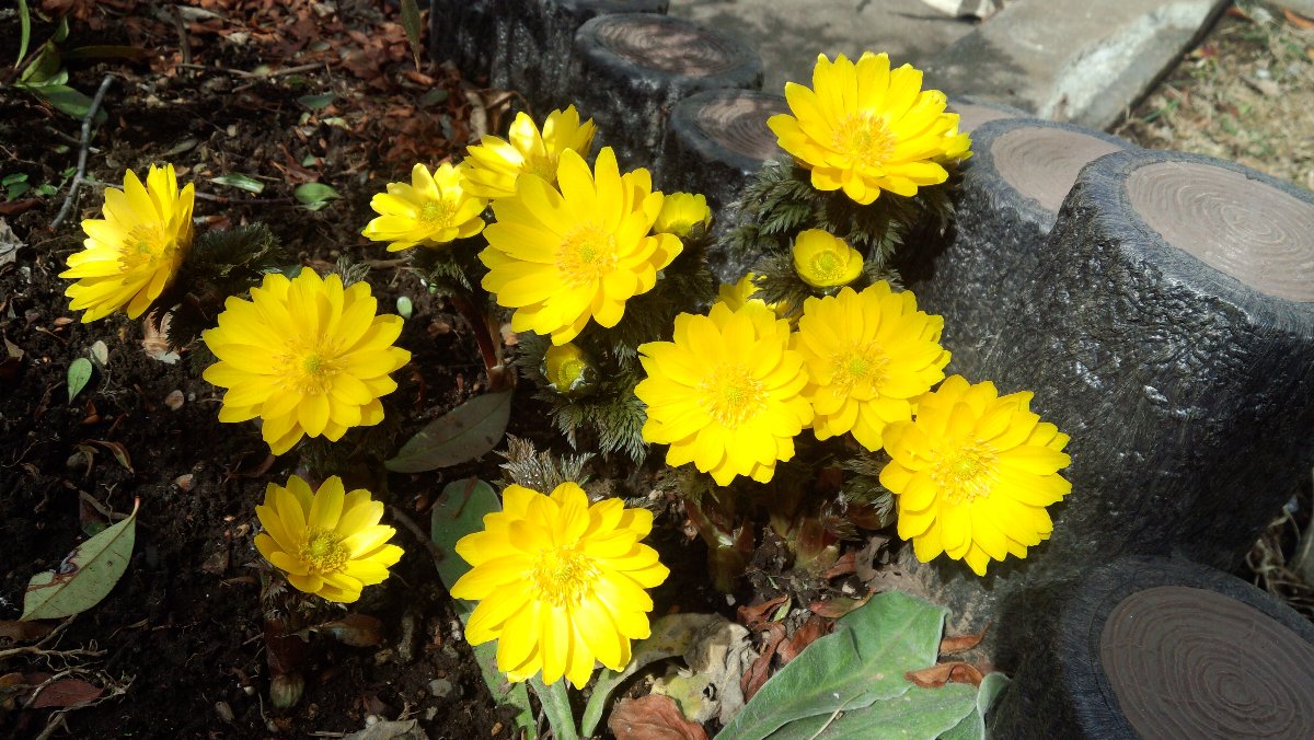 ![]() 今日の気温は17℃を超え4月後半の陽気である。明日からまた平年並みになるとか。今年のスギ花粉の量は昨年より少ないが今日は特別多い。 先日の大雪も融け何時もの場所の福寿草が満開となった。何時もより2Wくらい遅い。今冬の厳しい寒さと、今月2回もの大雪が影響しているかも。 毎年咲く花の数が増え続けている(下の2年前、3年前と比較するとよくわかる)。 -------------------------------------------------------------------------------------------- 今晩は小雪がちらつくのではないかとの予報。午前中は日差しの強い晴れであったが午後はどんよりした雲に覆われてしまった。 今年もいつもの日当たりのよい場所の福寿草が咲いた。 昨年より1週間くらい遅い。一昨年より20日ほど遅い。 この時期、庭に咲く花がないので黄色の福寿草は目立ち、春も近いと思わせてくれる。 -------------------------------------------------------------------------------------------- 昨日の雪で寒かったのがうそのような今日の天気で日差しが強く暖かい。 この日差しで日当たりのよい場所で福寿草(写真左)が咲いた。1メートルくらい離れた日陰の福寿草(写真右)はまだ咲くまでにはだいぶかかりそうである。昨年は1月末には咲いていたので、今年の寒さがうかがえる。