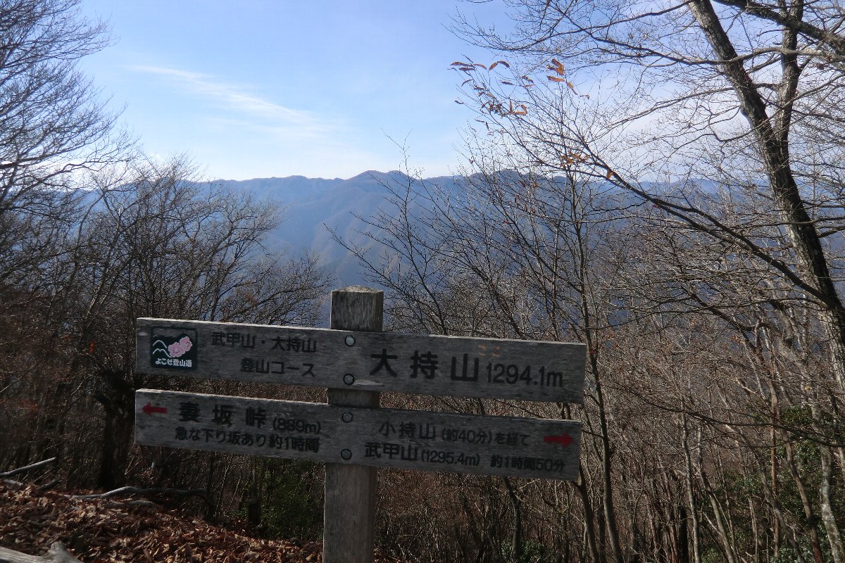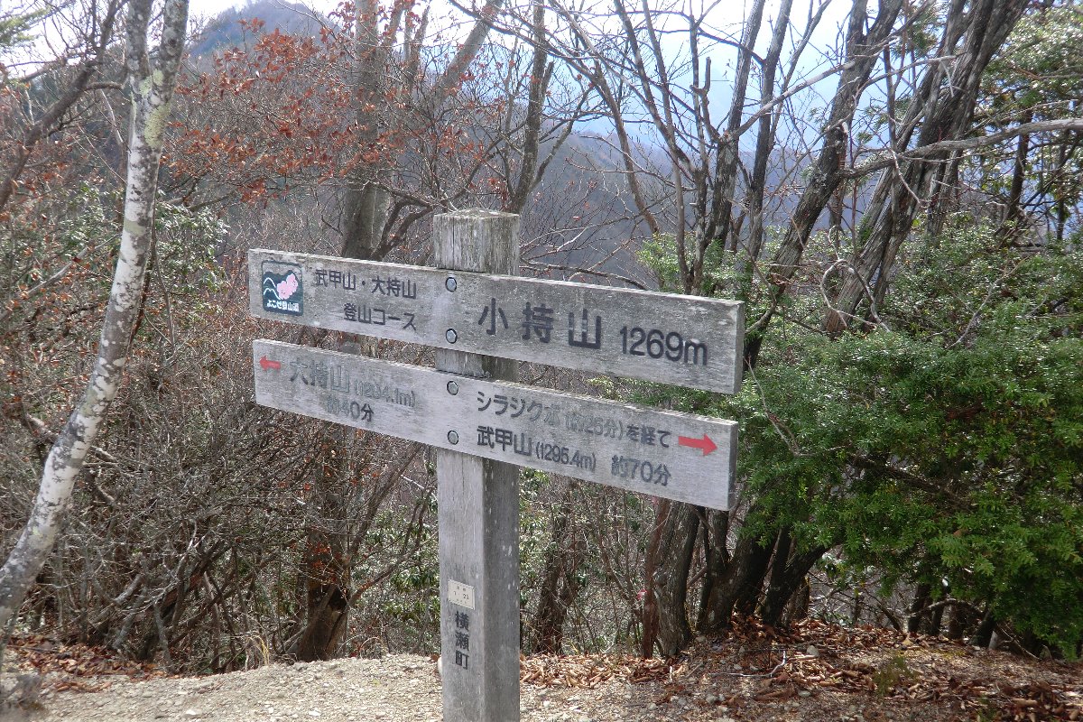 武甲山 から南に延びる稜線上にある大持山・小持山に出かけた。 登山口は武甲山と同じ生川である。 大持山、小持山とも頂上からの眺望はすばらしく、特に小持山からは遠く北アルプスを望むことができた。 生川登山口(09:13)~妻坂峠(09:48)~大持山(11:00)~小持山(11:42)~シラジクボ(12:21)~登山口(13:08) 行程約3.9時間、8.4km、大持山・子持山のトラックログ
