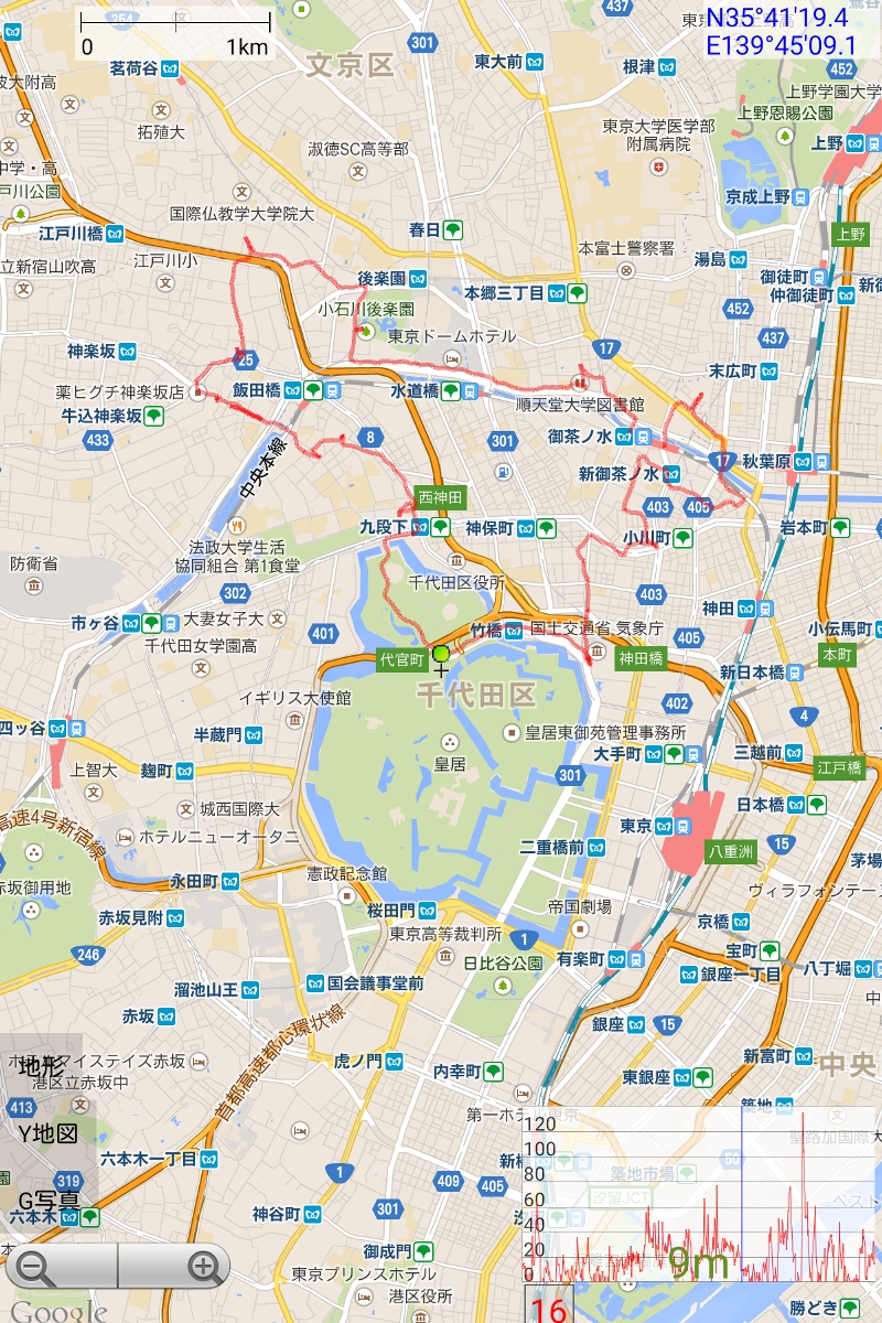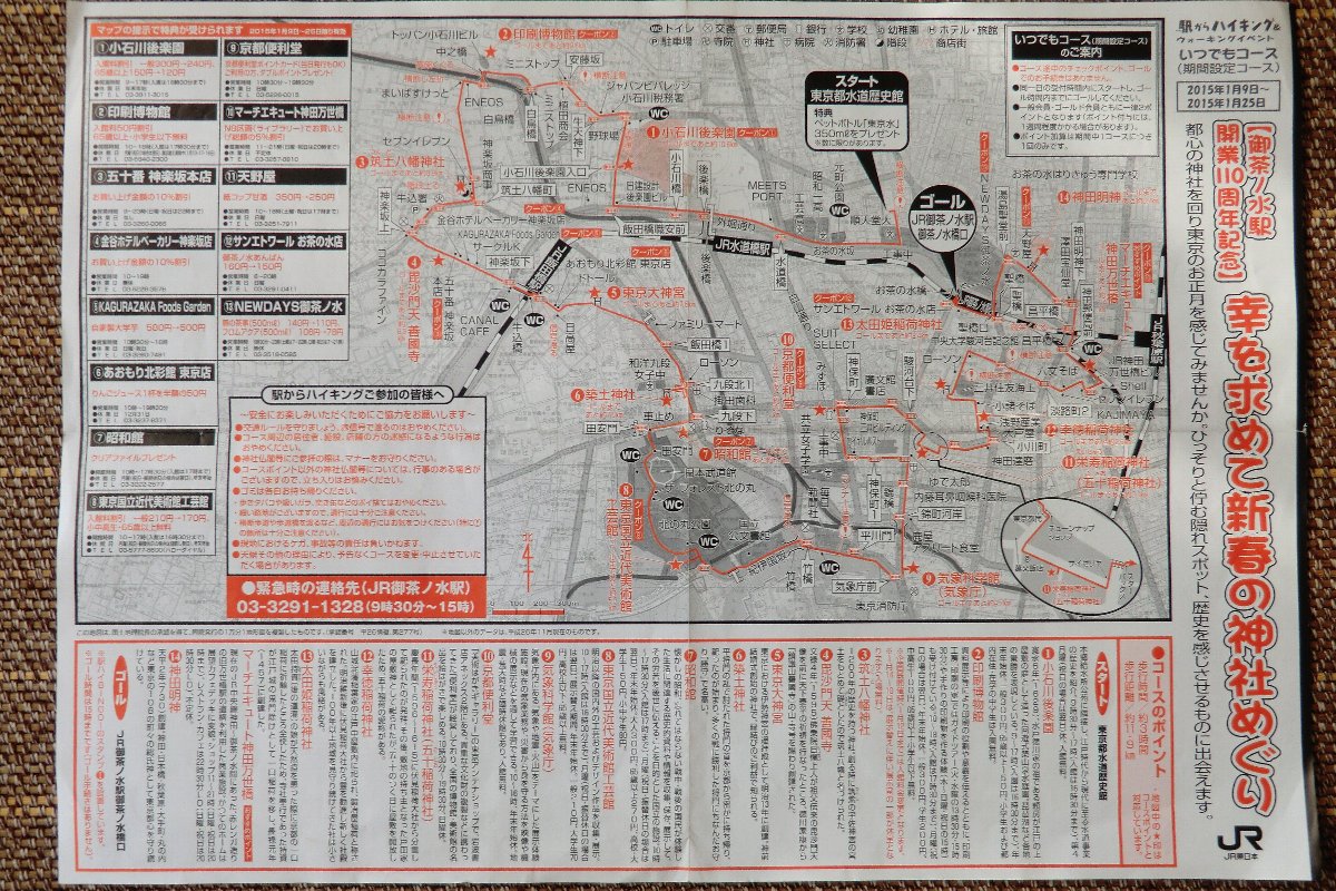 御茶ノ水駅→東京都水道歴史館→筑土八幡神社→善國寺→東京大神宮→築土神社→気象科学館→幸徳稲荷神社→大田姫稲荷神社→神田明神→御茶ノ水駅、
