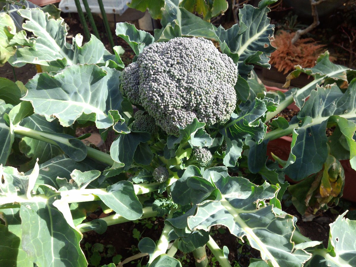 昨年秋に4株購入し露地植え2株とプランター植え2株を栽培したブロッコリーの露地植えの2株を収穫した。 プランター栽培のものはまだであるが2月に入って気温が10℃以上の日が多く、大きくなる前に花が咲きそうである。