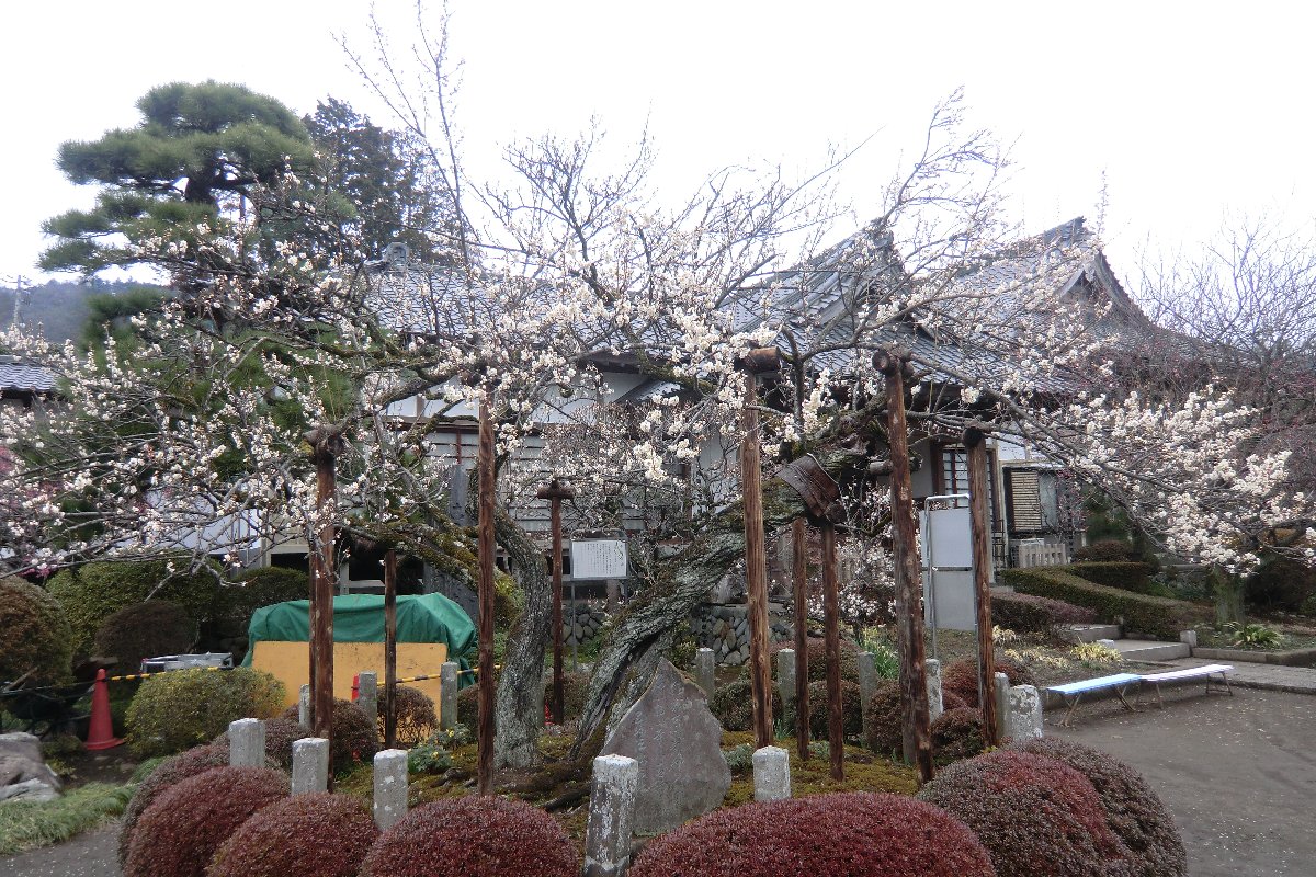 伐採後3~5年は再植樹できないとの事で元のようになるには10年以上かかるだろう。代わりにいろんな花を植えて「梅まつり」を「花まつり」でしのいでいるが客足が遠のいている感がある。帰路、青梅市の名称の元となった金剛寺の「青梅(あおうめ)」を観賞。