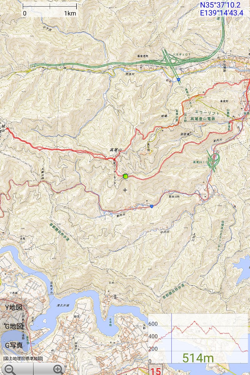 高尾山までは稲荷山コースを辿り、高尾山と小仏城山をピストン、高尾山からの下りは4号路、1号路経由金比羅台から高尾山駅に向かうルートで20号に出た。