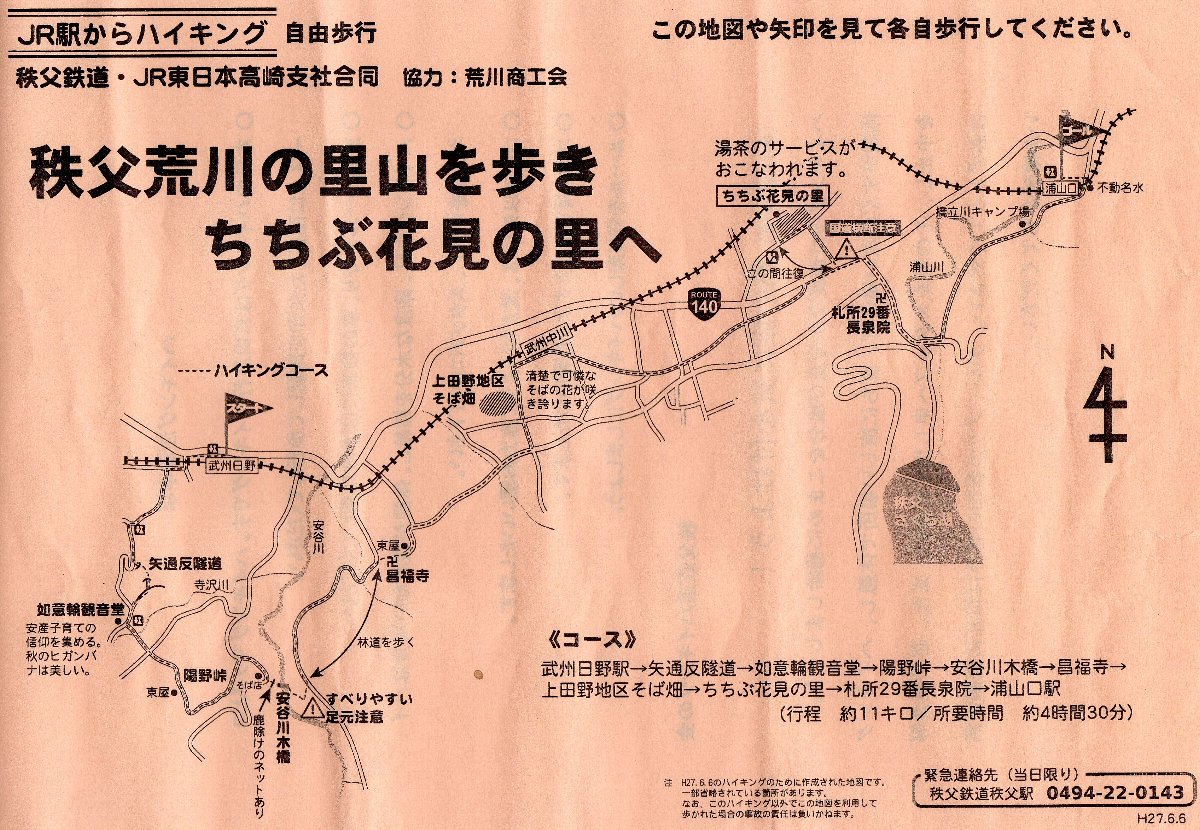 武州日野駅→陽野峠→昌福寺→上田野地区そば畑→ちちぶ花見の里→札所29番長泉院→浦山口駅、