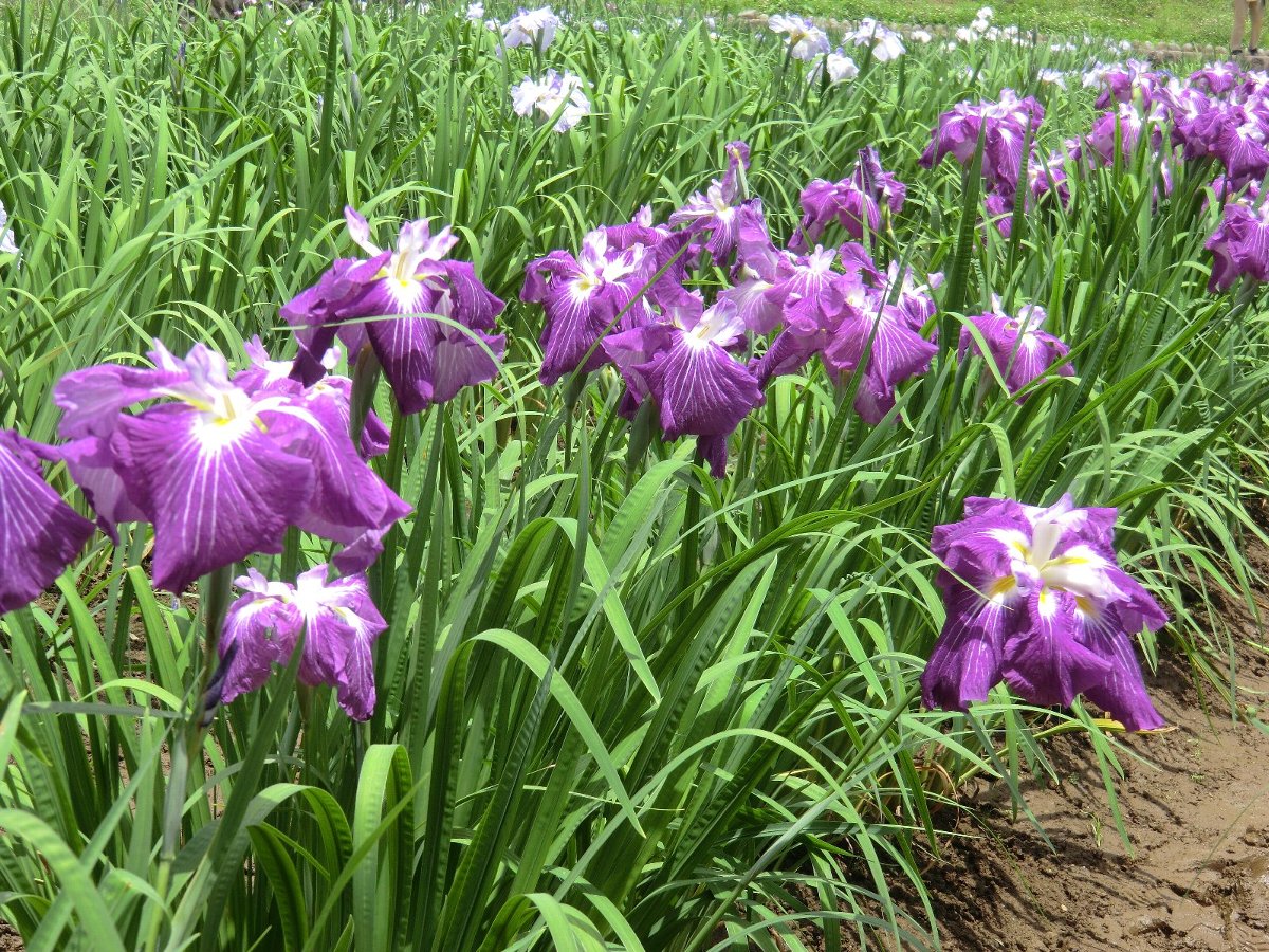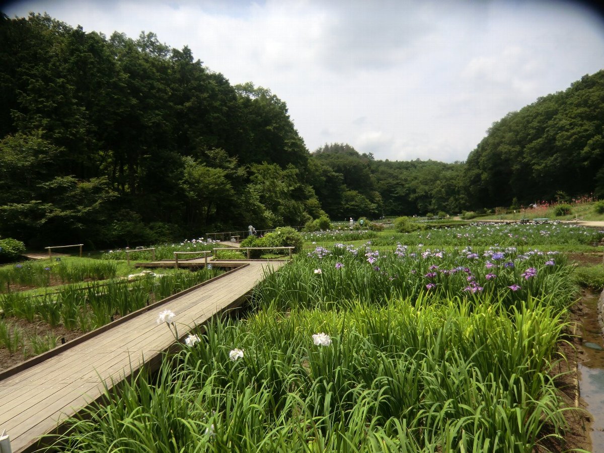 青梅市「吹上花しょうぶまつり」が今月末まで開催されているので観賞に出かけた。 1週間前が見頃のピークとのこと、しかし綺麗に咲いているものが沢山ありました。 梅雨の一休みで時々日差しがあり、とても蒸し暑い日である。