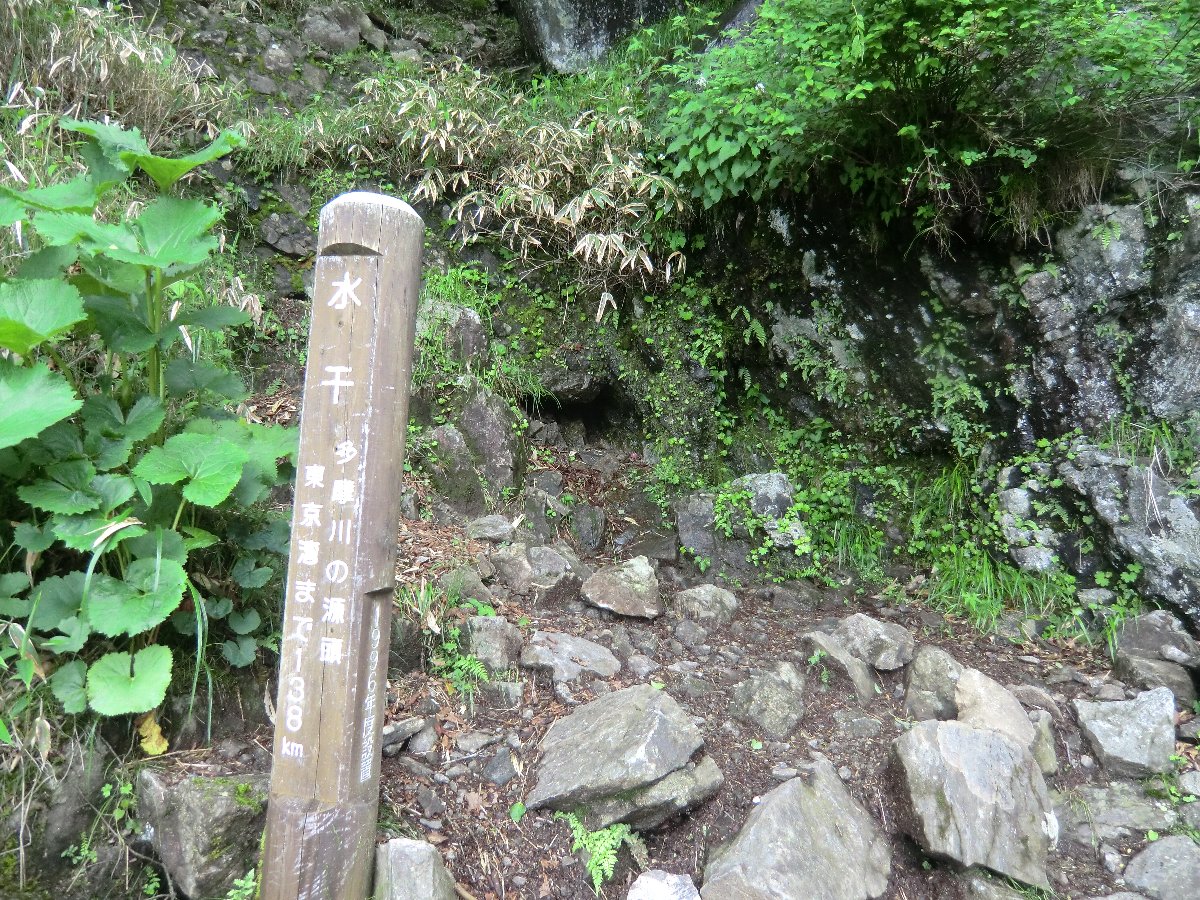 笠取小屋の少し先に「ちいさな分水嶺」と名づけられた小ピークは多摩川、富士川、荒川の3河川の分水嶺がある。また、笠取山直下には水干(沢の行き止まり)があり、多摩川の最初の一滴が染み出している場所である。