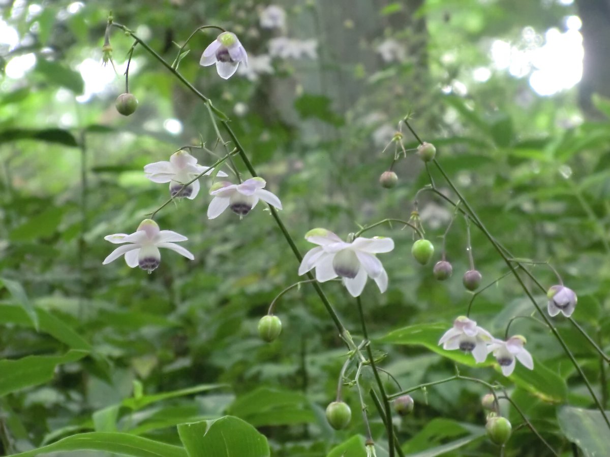 御岳山のレンゲショウマが見頃を迎えているので御岳渓谷の散策を兼ねて観賞に出かけた。立秋を過ぎて暦は秋を迎えているが、まだまだ気温は真夏日の日が続き今日は32℃であった。 御岳山では毎年レンゲショウマまつり(今年は7月18日~9月23日まで)を行っており、見頃としては8月中旬である。御岳山のレンゲショウマは日本一の群生地として知られており、この時期は夏休み、お盆休みも重なり沢山の観賞客が訪れる。群生はケーブルカーの御岳山駅を降りた富士峰園地北斜面と武蔵御嶽神社周辺にある。 名前の由来は、花が蓮に、葉がサラシナショウマ(晒菜升麻)に似ていることからレンゲショウマ(蓮華升麻)と名付けられ、淡い薄紫の可憐な花が咲く。 また、御岳渓谷ではカヌーを楽しむ人、ラフティングを楽しむ人、釣りをしている人、バーベキューや川遊びなどをする人たちで賑わっていた。前日の雨で水量が多くカヌーやラフティングは急流を下る様子はスリル満点であった。