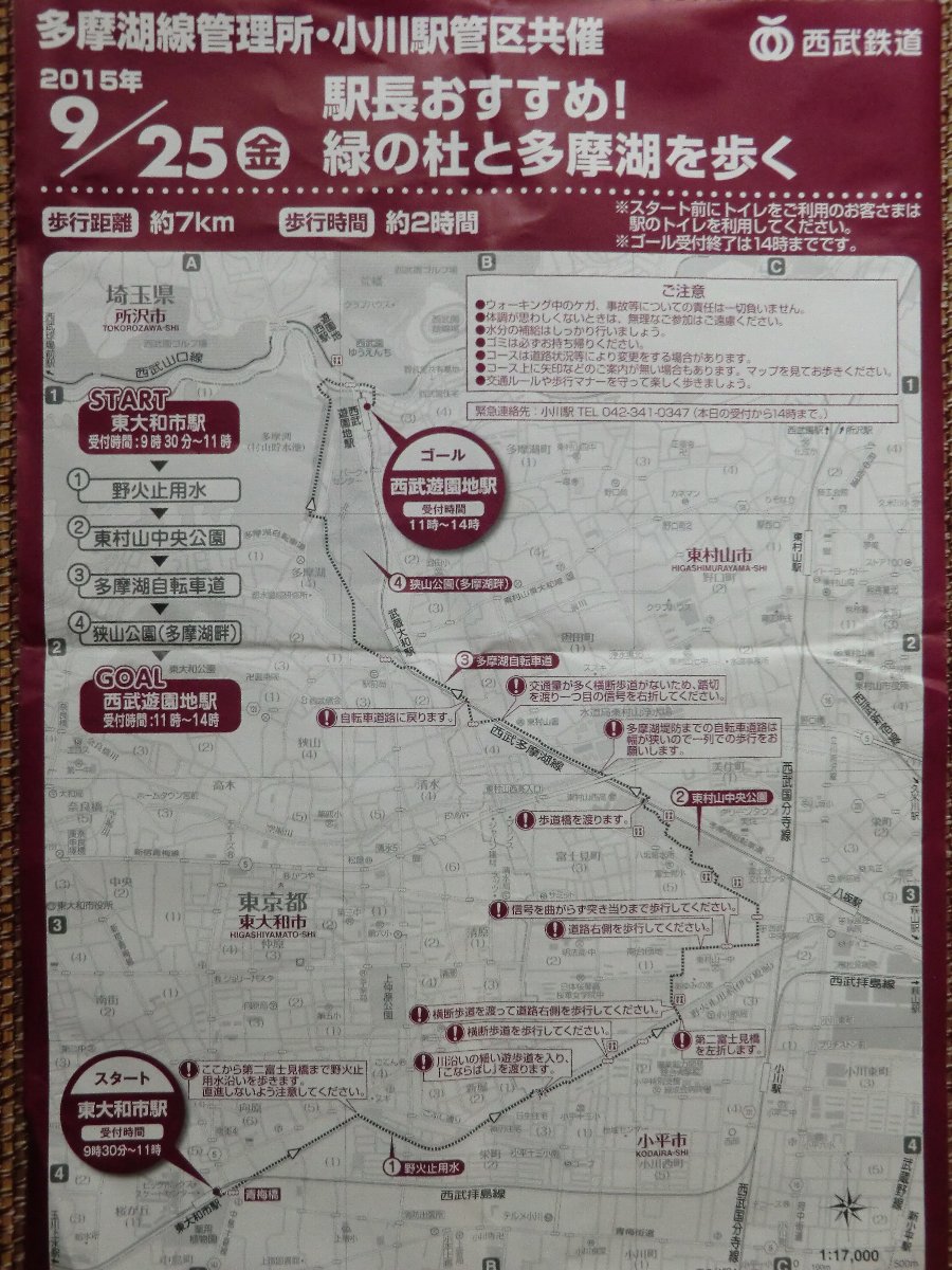 東大和市駅→野火止用水→東村山中央公園→多摩湖自転車道→狭山公園(多摩湖畔)→西武遊園地駅
