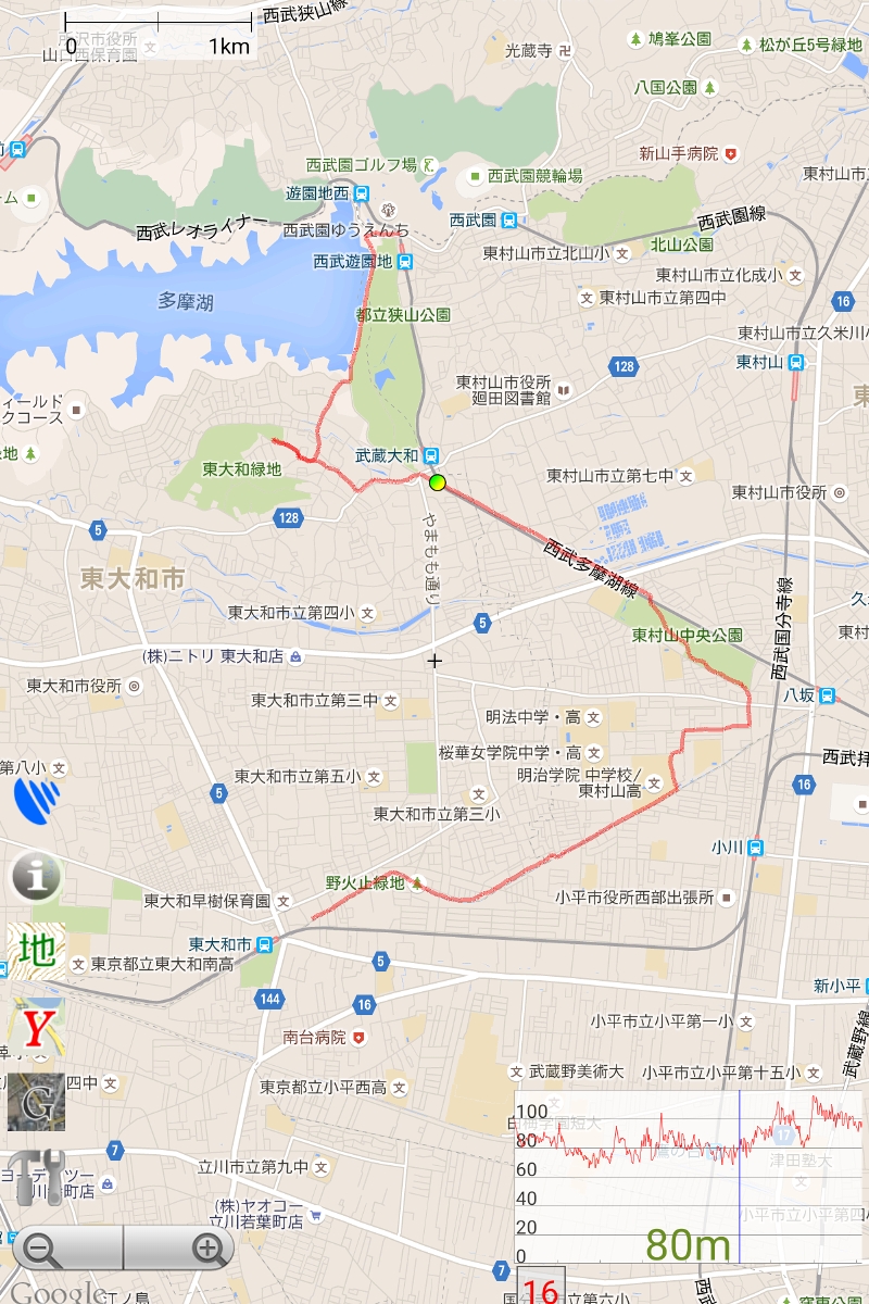 東大和市駅~多摩湖トラックログ