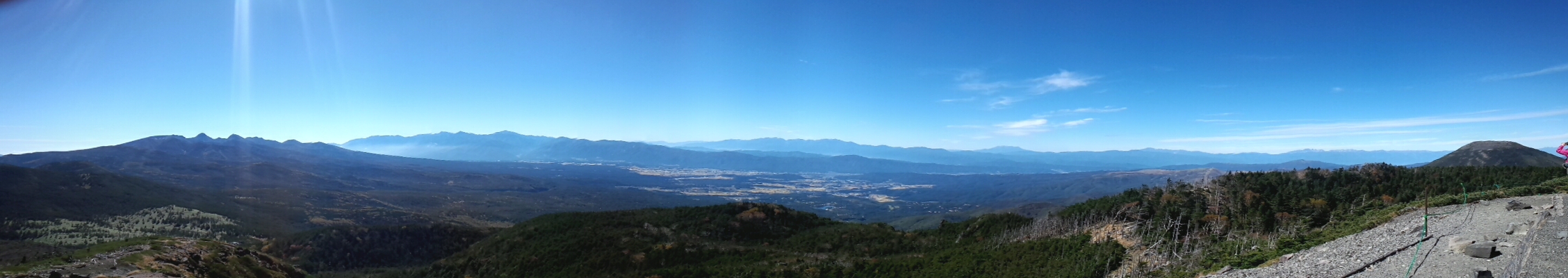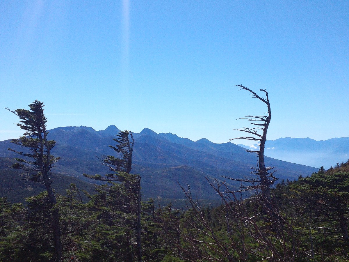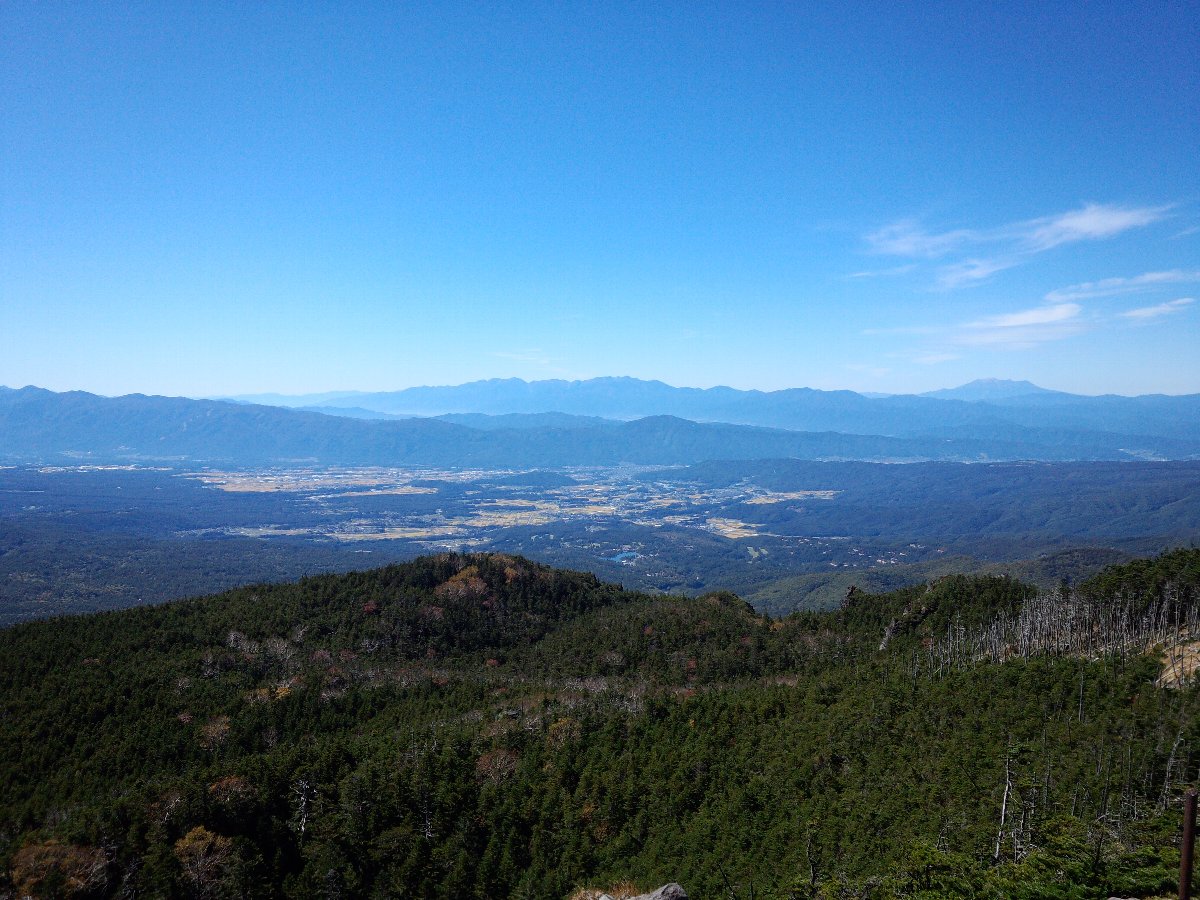 台風21号が低気圧に変わり、10月1日から2日にかけた爆弾低気圧通過直後で気持ち良い秋晴れの天気、山頂からの展望は快晴で360度の展望が素晴らしく、南八ヶ岳、南アルプス、中央アルプス、北アルプスと見晴らすことができた。しかし山頂は強風のため長時間滞在ができなかった。