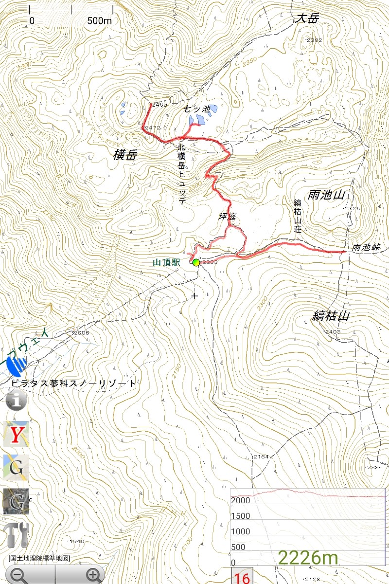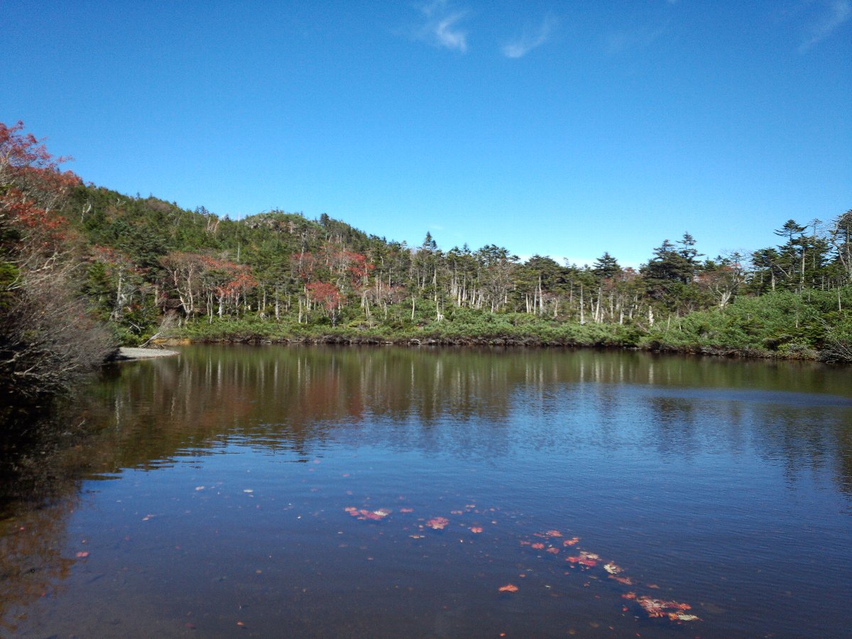 北八ヶ岳ロープウェー山頂駅(09:15)→北横岳登山口(9:28)→北横岳ヒュッテ(10:07)→北横岳(南峰)(10:34)→北横岳(北峰)(10:52)→七ツ池(11:41)→坪庭(12:32)→八丁平縞枯山荘(12:45)→雨池峠(12:54)→北八ヶ岳ロープウェー山頂駅(13:17)