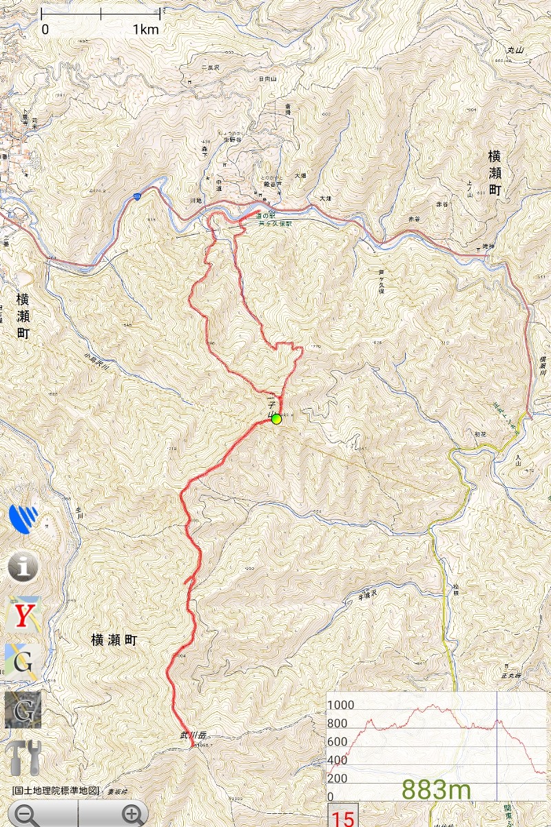標高1052m 歩行13.1km、 6時間52分(休憩・食事時間含む)