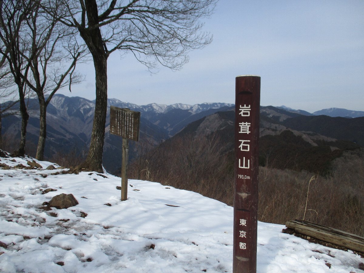 軍畑駅(8:45)→高水山(10:19,1130)→岩茸石山(10:56,11:20)→惣岳山(11:51,12:00)→御岳駅(12:55)→寒山寺駐車場(13:23)