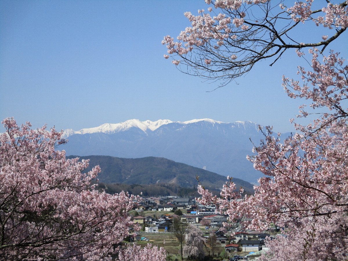 高遠城址公園の桜の花見に行きました。 雲一つ無い快晴に恵まれて満開の桜の花を堪能できました。 高遠城址公園の桜はタカトオコヒガンザクラ(高遠小彼岸桜)でソメイヨシノよりやや小ぶりで赤みを帯びている。 公園からは快晴ということもあって、桜とともに中央アルプス、南アルプス(仙丈ケ岳)を望むことができた。