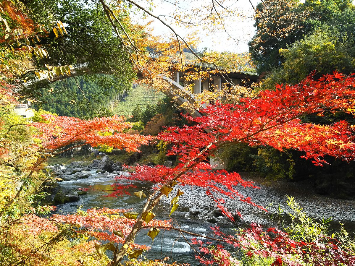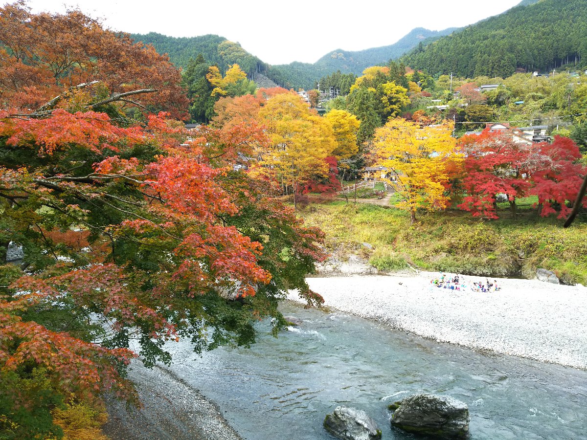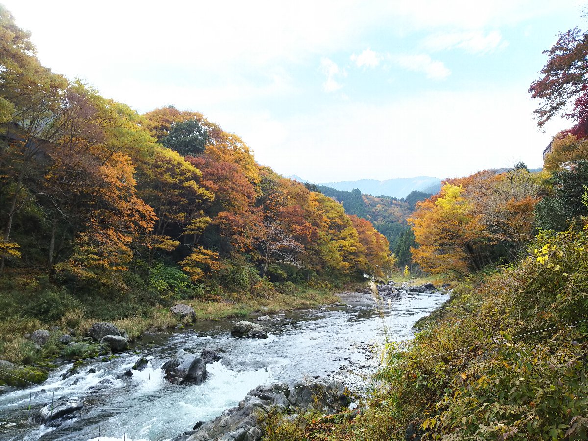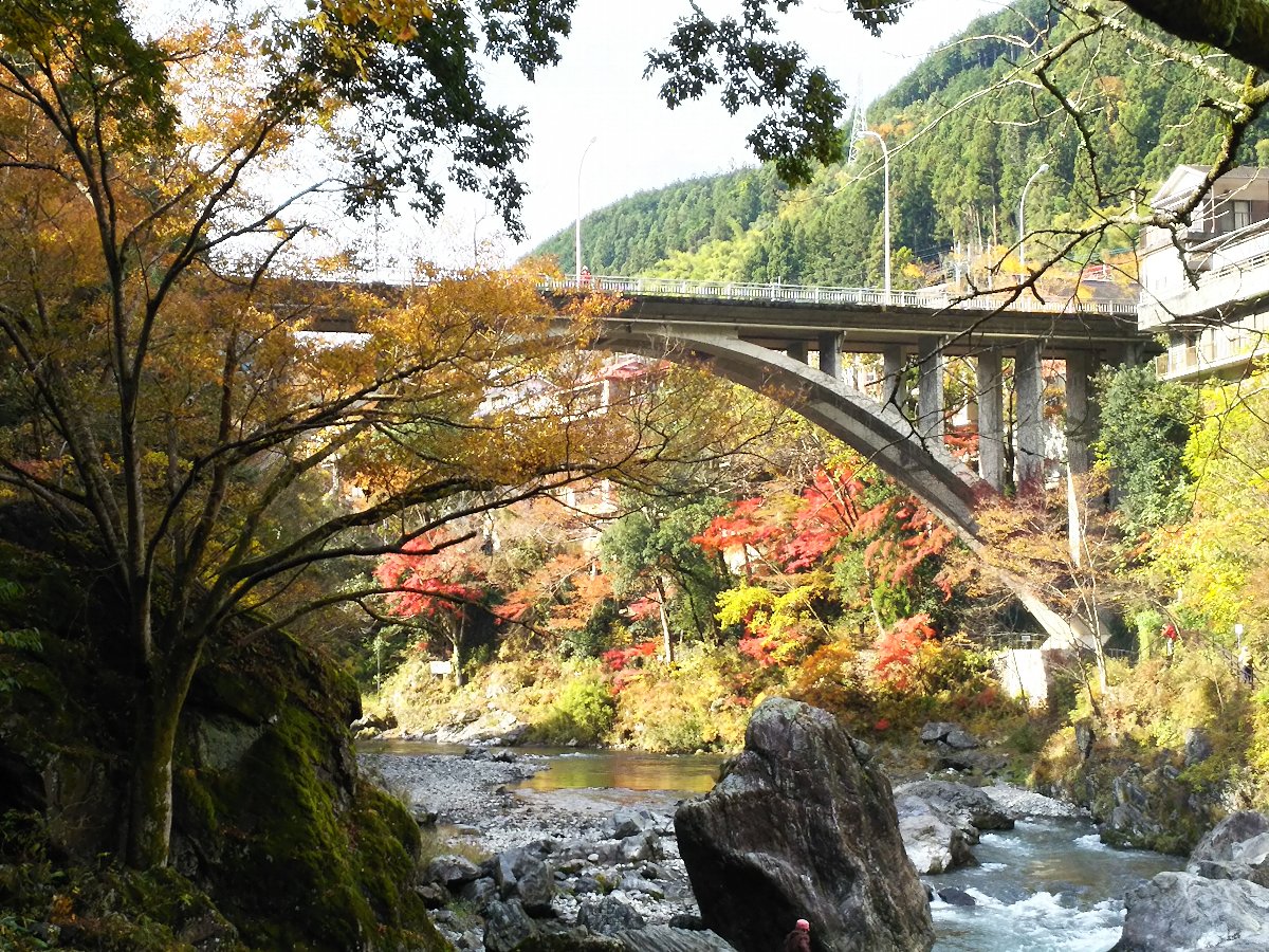 今日は暖かい小春日和である。 天気の回復が早く朝から晴れになったので、紅葉の見頃となっている御岳渓谷にモミジ狩りに出かけた。 渓谷の遊歩道は昨夜から未明の雨と落ち葉で滑りやすく歩きにくかったが渓谷の紅葉を堪能できた。