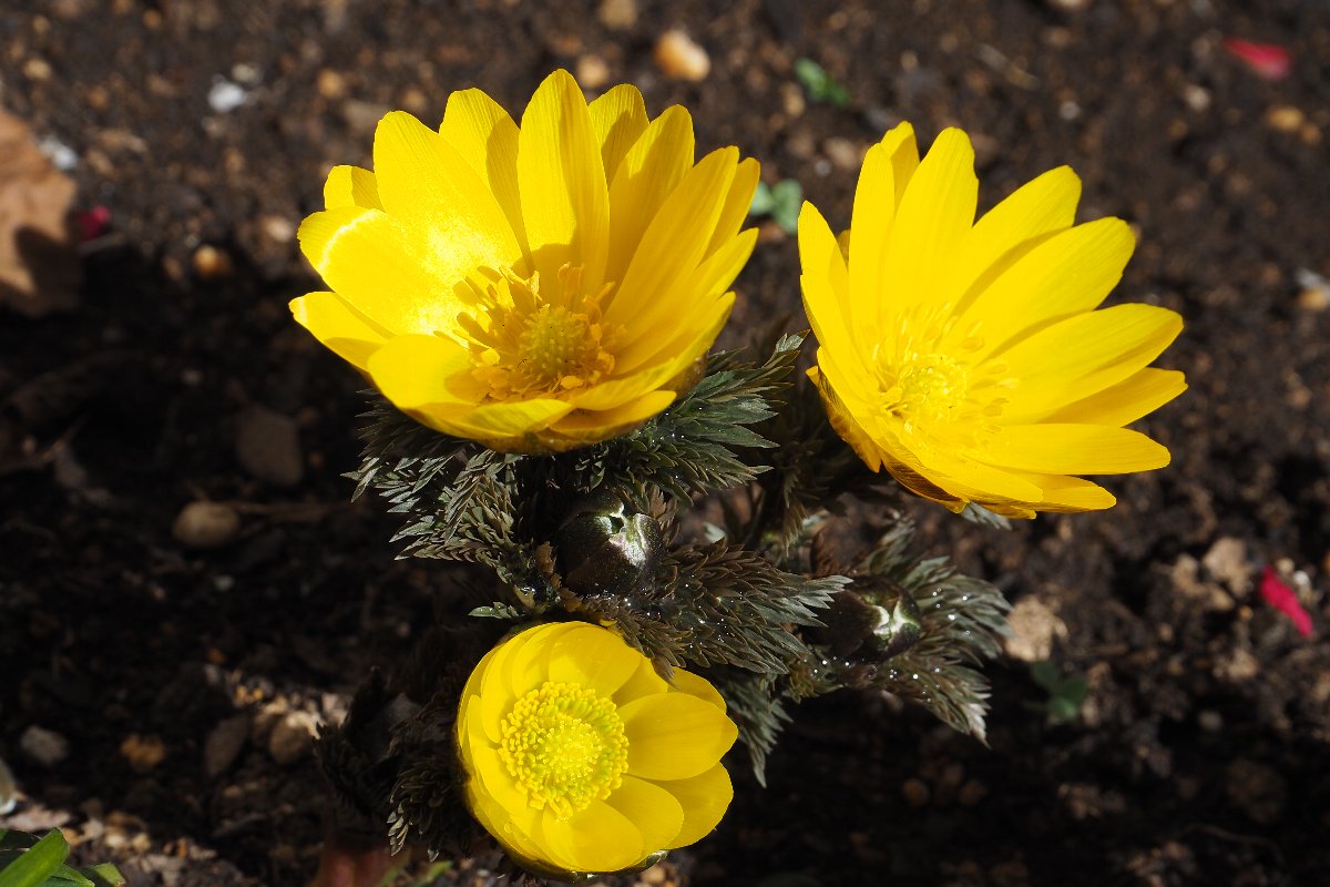 強い日差しを受けて福寿草が満開となった。毎年ほぼ2月中旬には満開となる。 最低気温が昨日は-6℃、今日は-5℃と厳しい寒さが続いているが、日差しは春が近いと思われる強さである。 そして、そろそろスギ花粉の飛散が始まる。昨年は飛散が少なかったが今年は昨年の4倍以上といわれている。 花粉症にとっては辛い季節となる。
