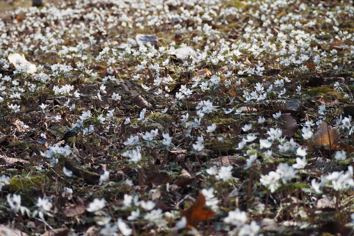 小鹿野町両神「節分草園」の節分草が見頃だというので、観賞に出かけた。 この節分草園の節分草自生地は日本有数の規模といわれ、2年前に訪れたときより多くの花が咲いており、年々規模・花数が拡大している感じがする。観賞後、8km奥にある日本の滝百選に選ばれている「丸神の滝」を観瀑。 ★節分草 キンポウゲ科セツブンソウ属の多年草。名前の由来は節分の頃に咲く花から。 地下部は棒状の球根で、地面から10cmほど伸びた茎の先に白色五弁のがくを付ける。