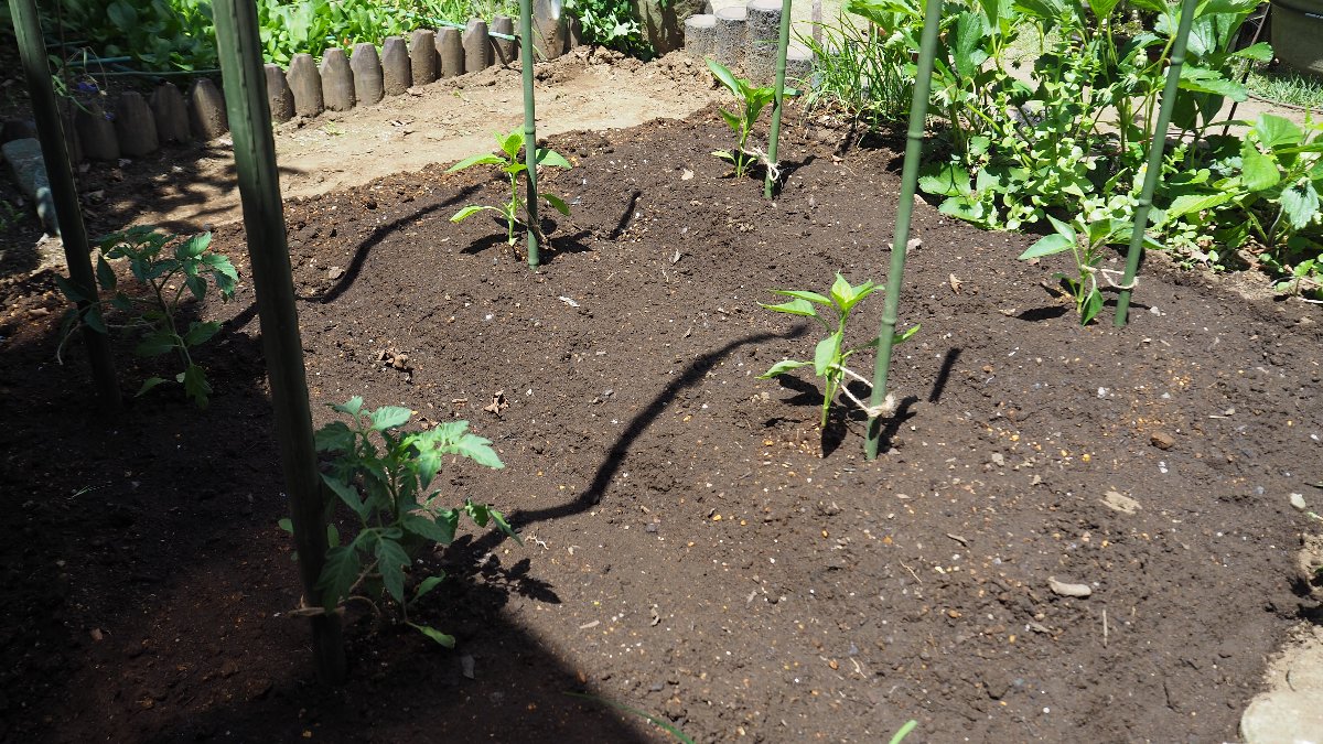 今年も庭の一坪農地に野菜を植え付けた。ミニトマト2本、ピーマン2本、シシトウ2本の合計6本。 ミニトマトの1本は今回初めて黄色のイエローアイコにした。 今月末頃には、毎年やっているグリーンカーテンにするゴーヤとフウセンカズラを予定している。