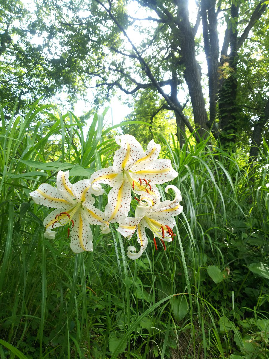 景信山から高尾山の縦走路ではヤマユリ、オオバギボウシ、オカトラノオなどが沢山咲いており、蒸し暑い中ながら楽しむことができた。