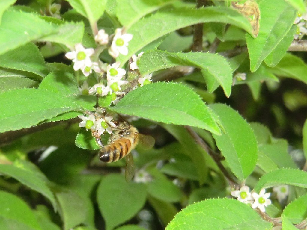 花の蜜を求めて訪れたハチ、2種です。